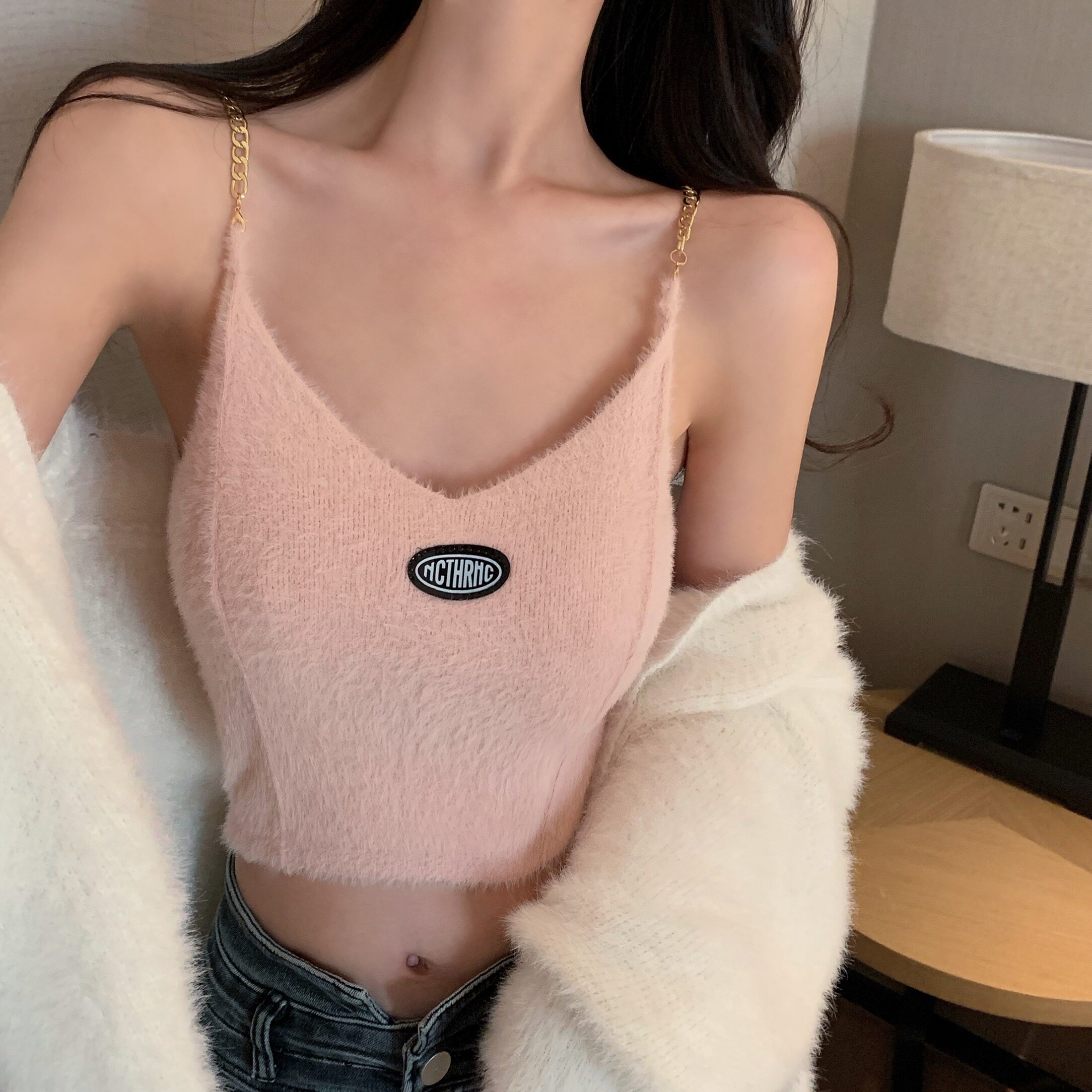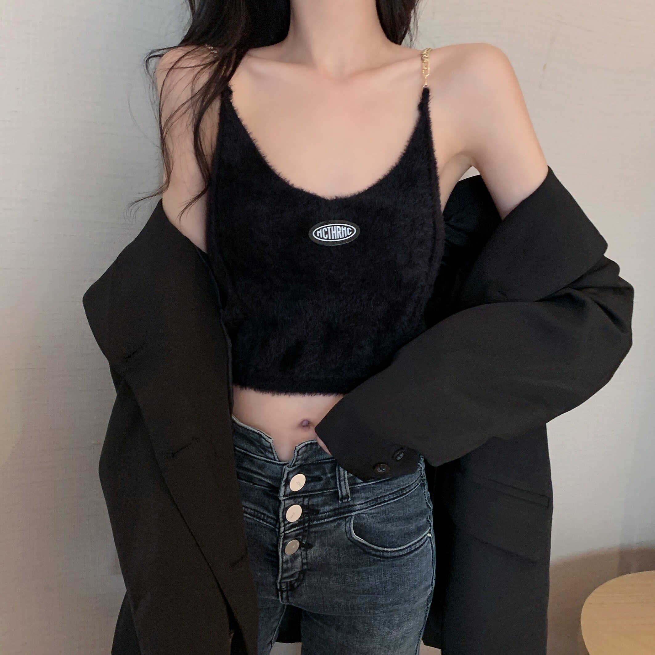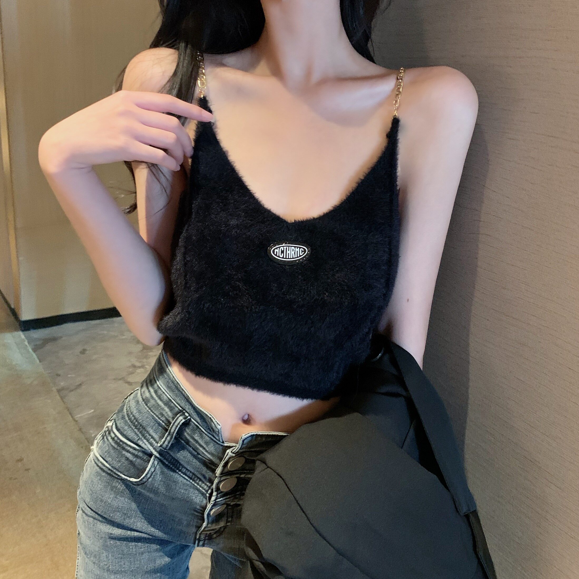 实拍实价 链条吊带背心设计感小众美背网红上衣无袖内搭