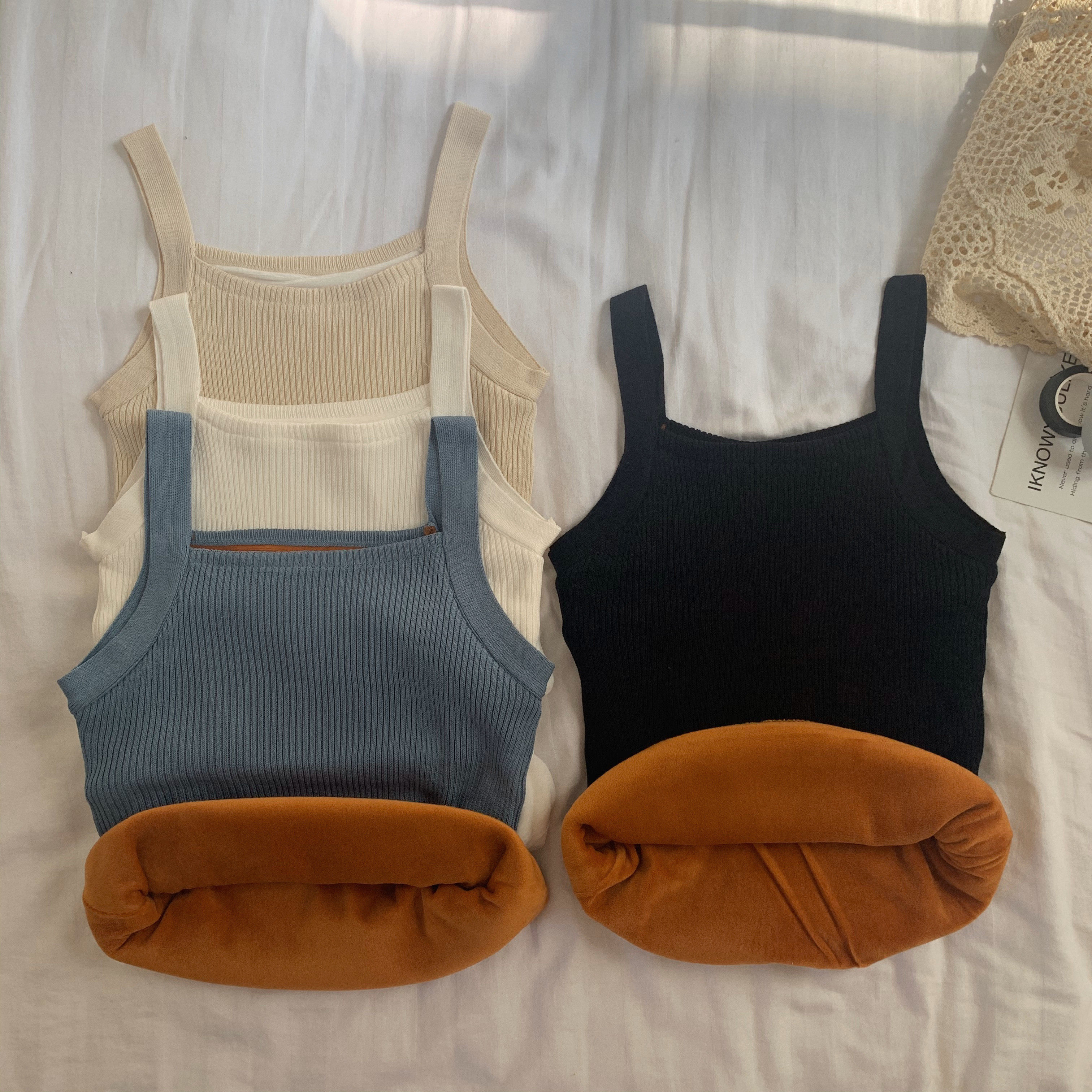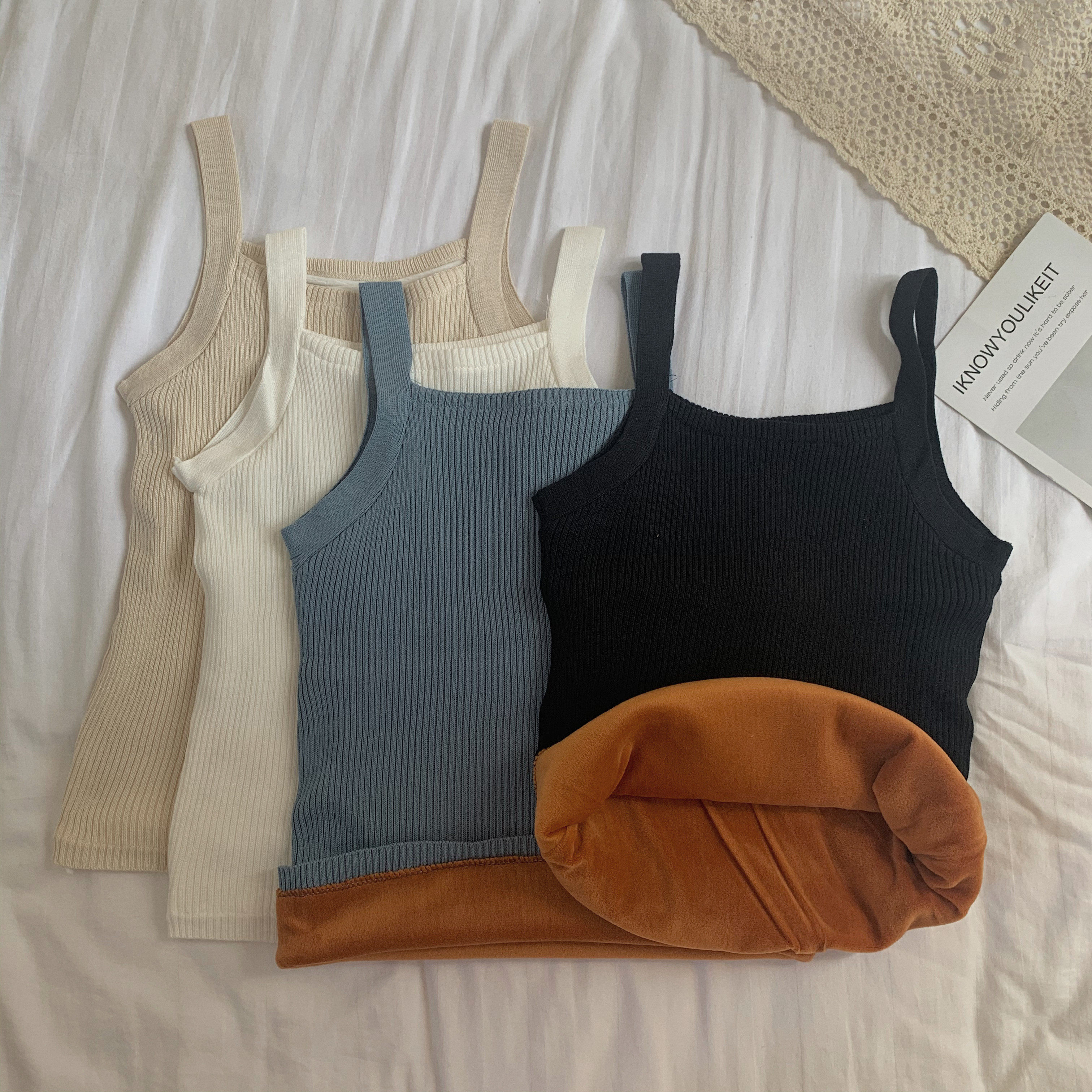 控3实价实拍 秋冬韩版修身显瘦内搭加绒加厚打底小吊带背心女