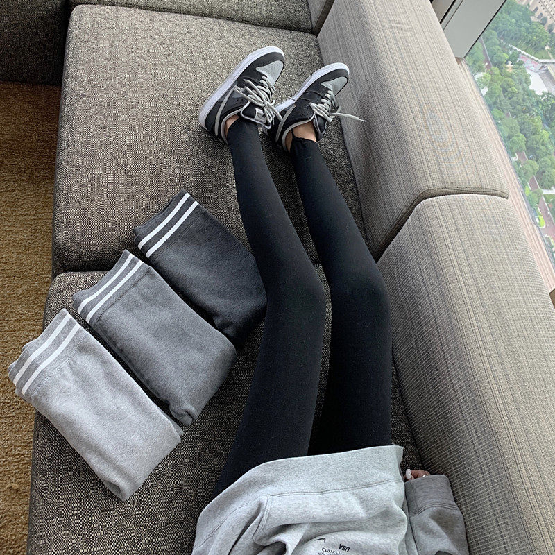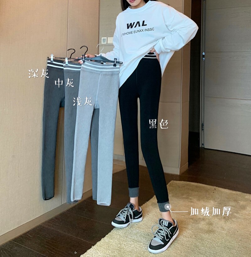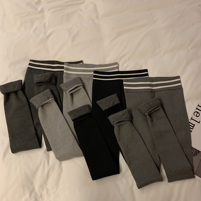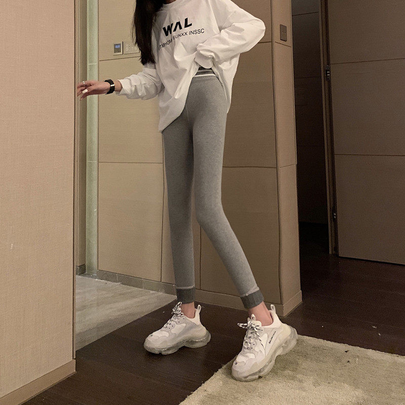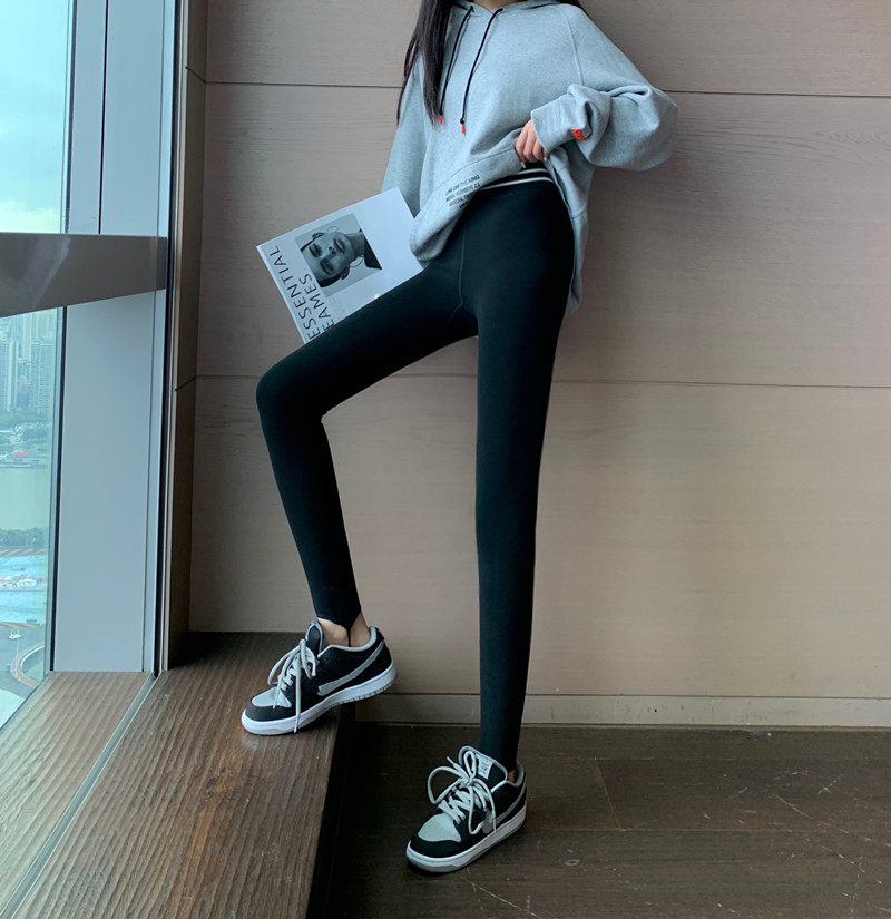 现货实拍实价 秋冬紧身高腰加绒打底裤外穿踩脚健身裤