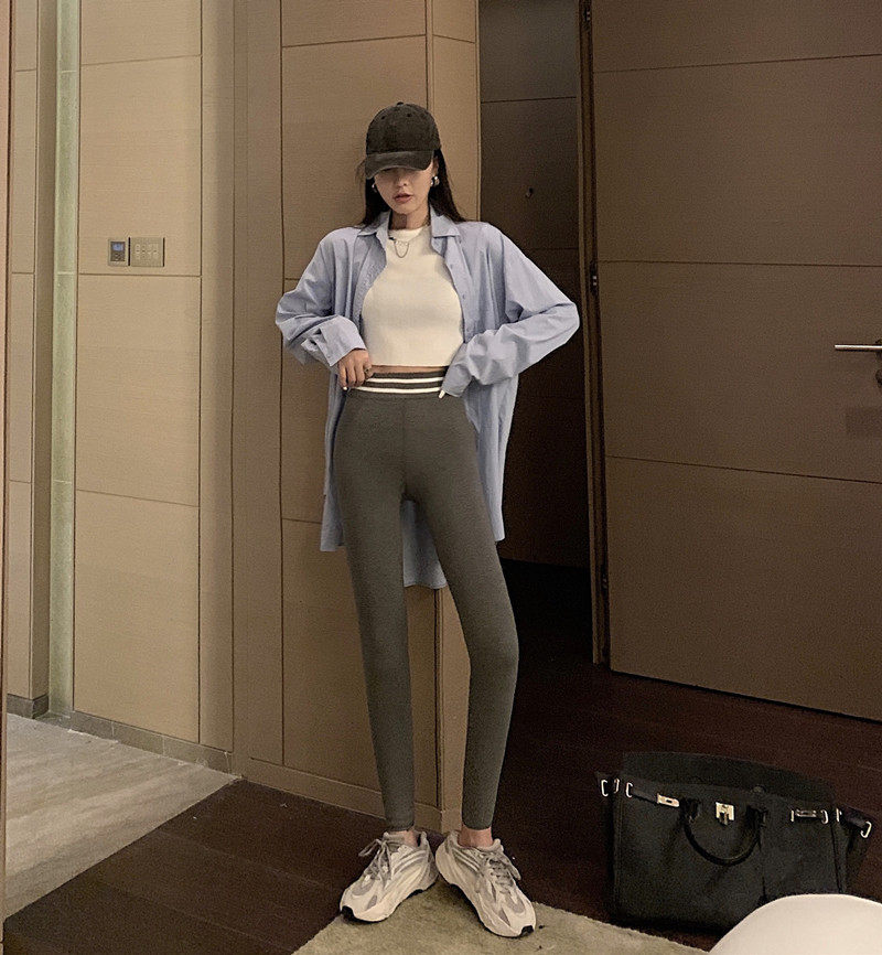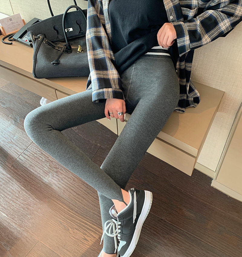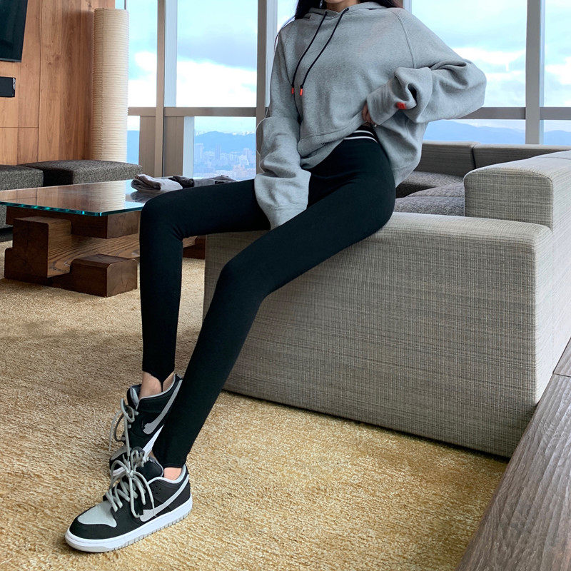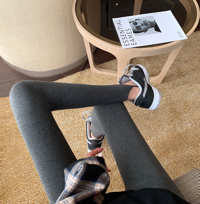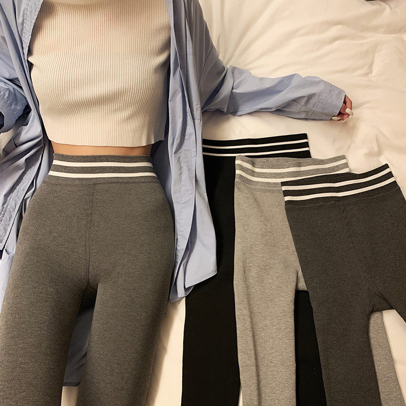 现货实拍实价 秋冬紧身高腰加绒打底裤外穿踩脚健身裤