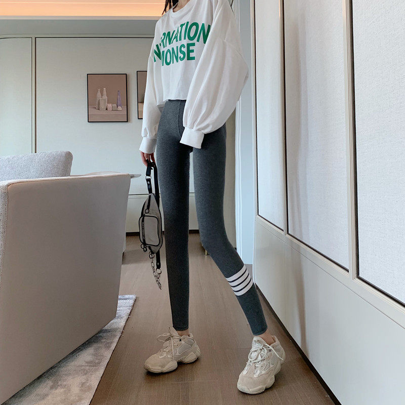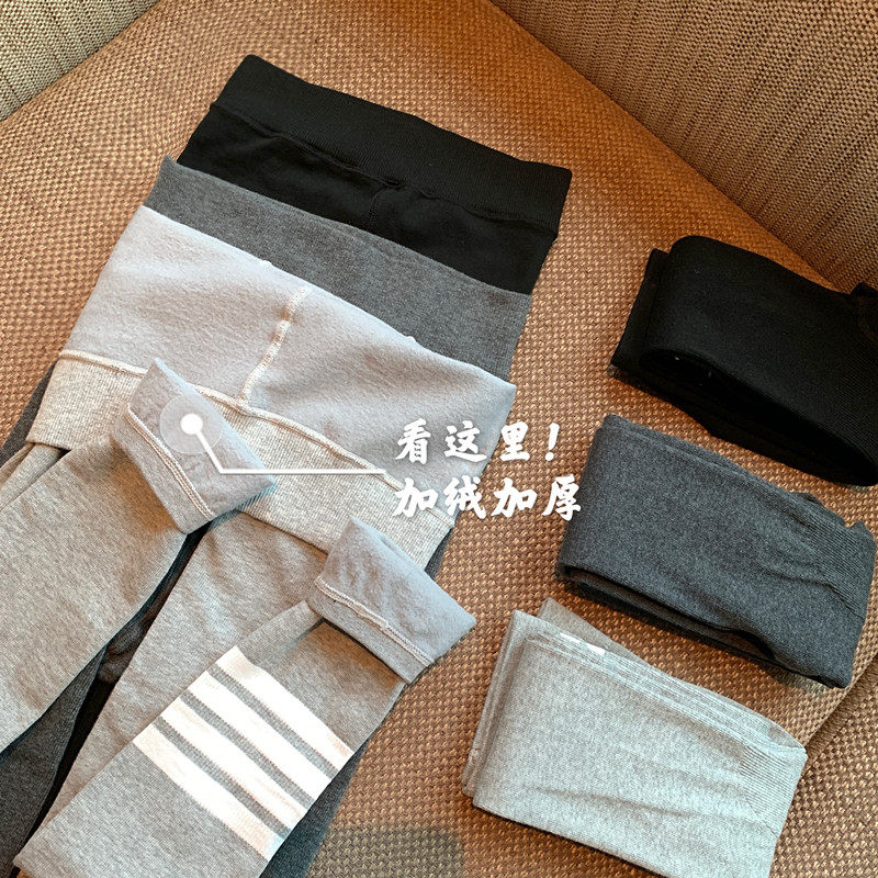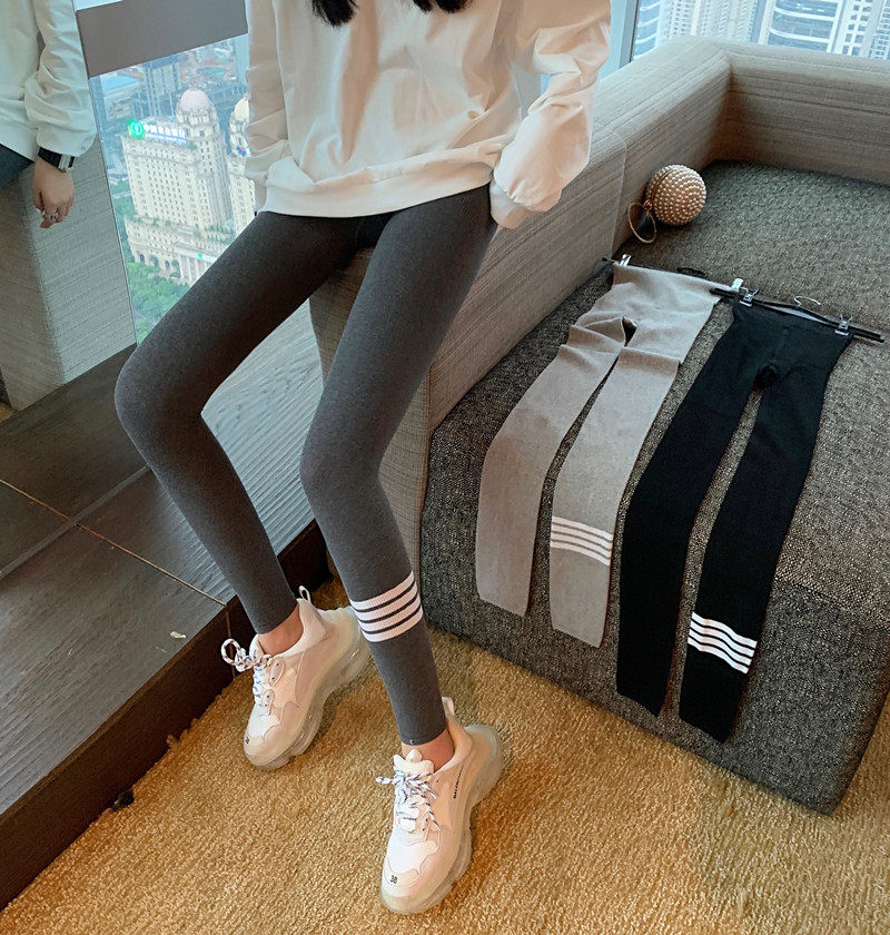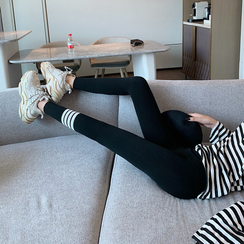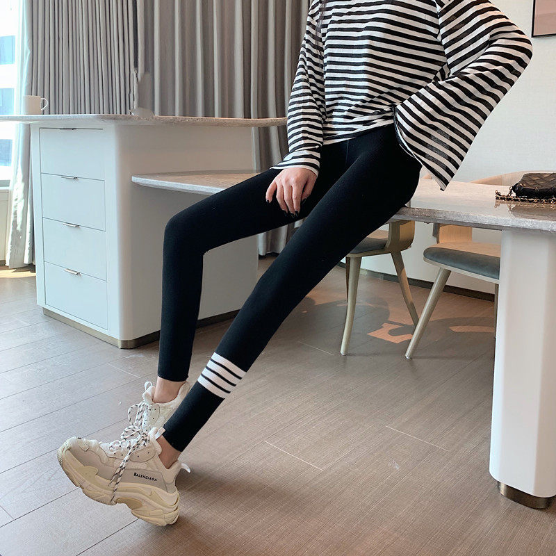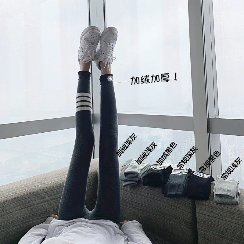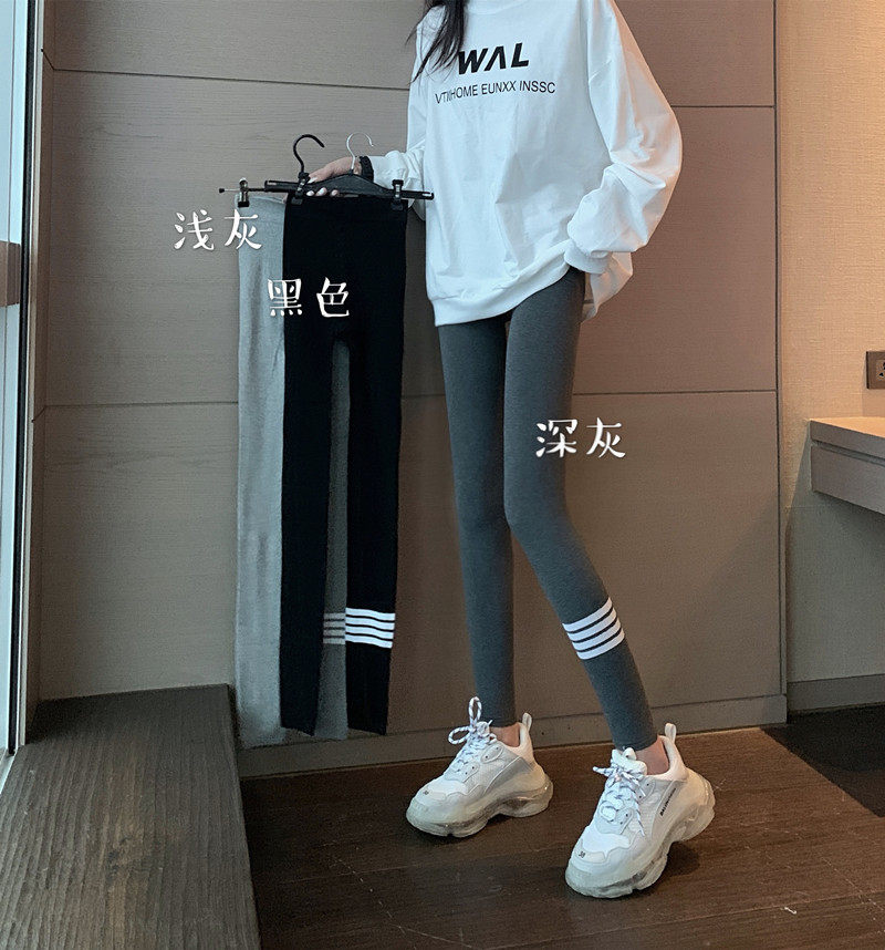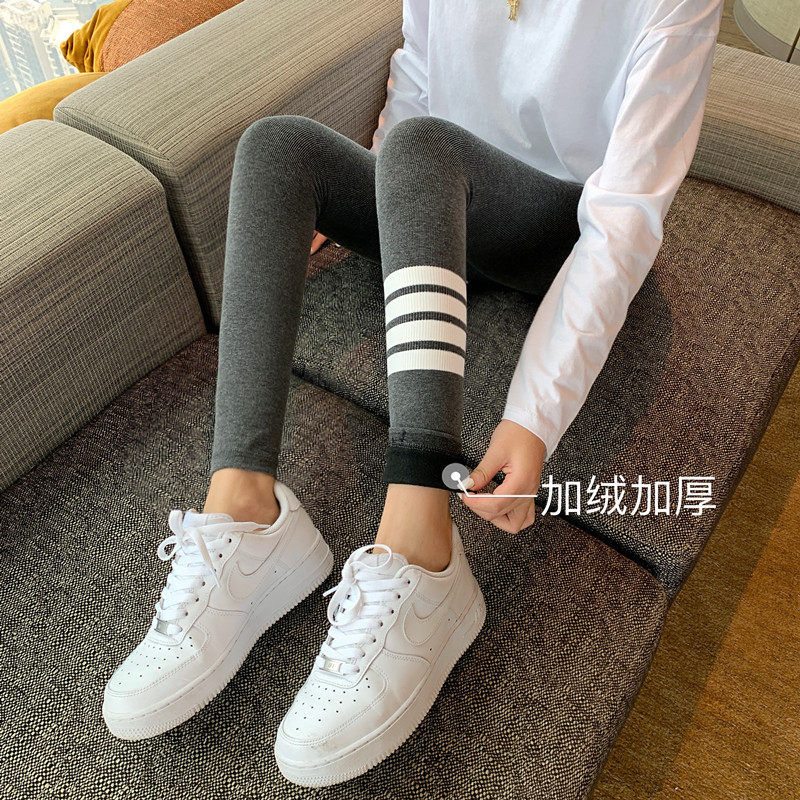 控3实拍实价打底裤女外穿加绒竖条螺纹九分裤四条杠运动夜光裤女