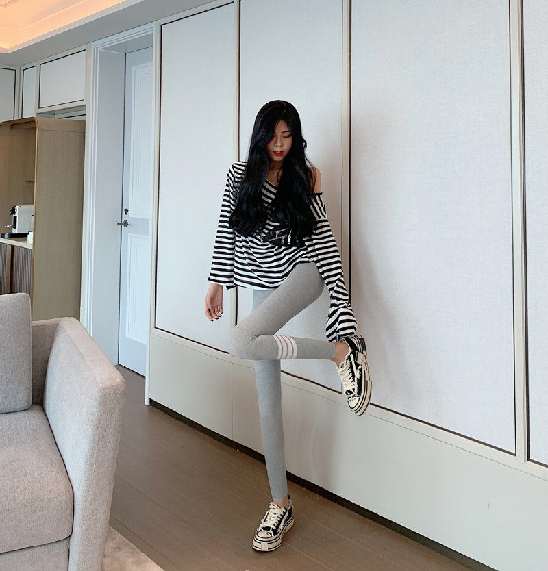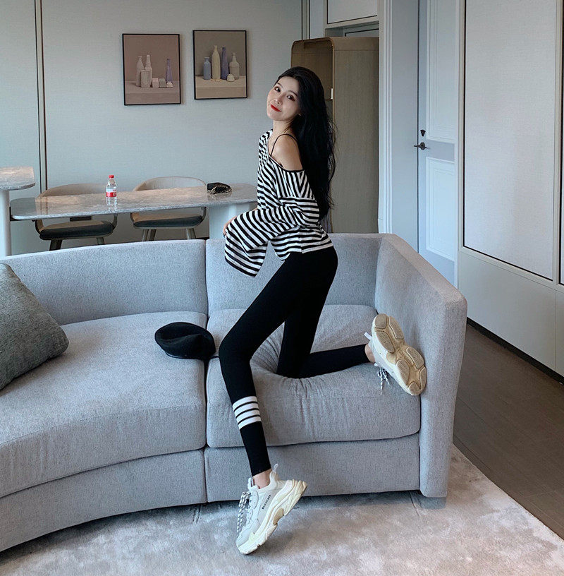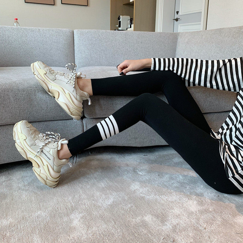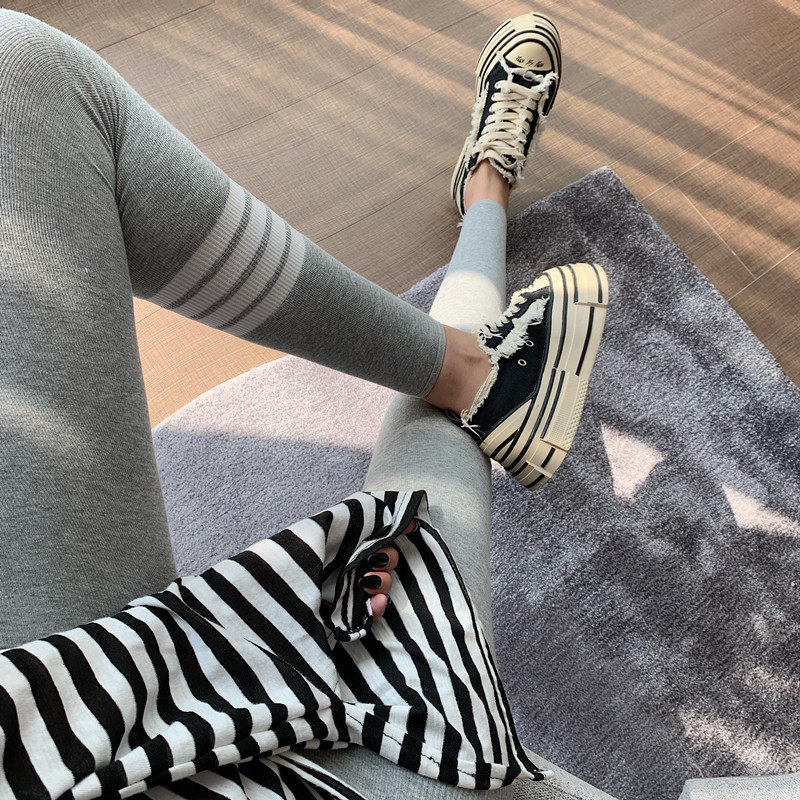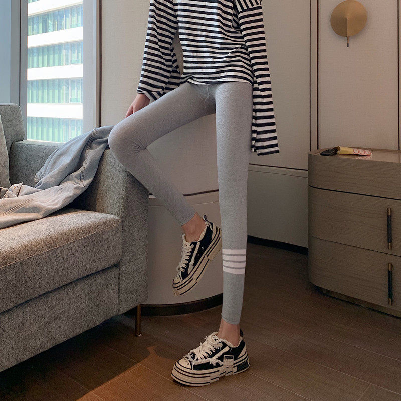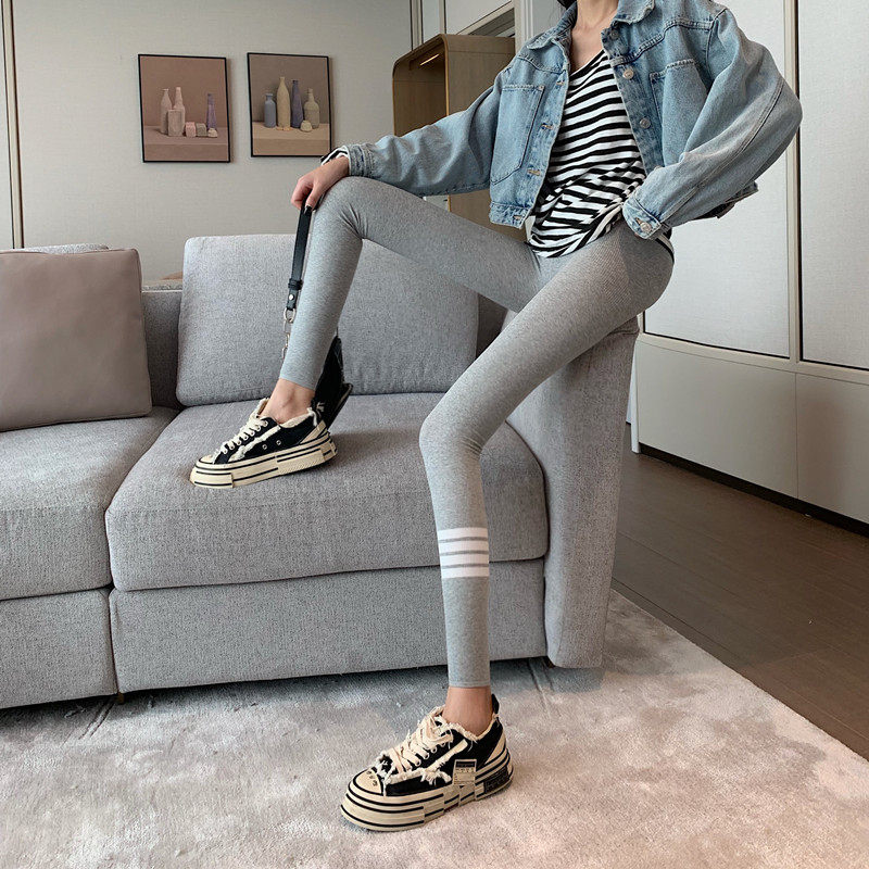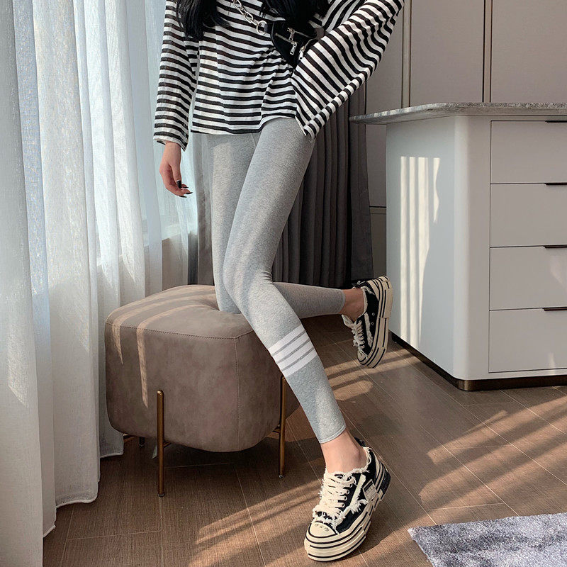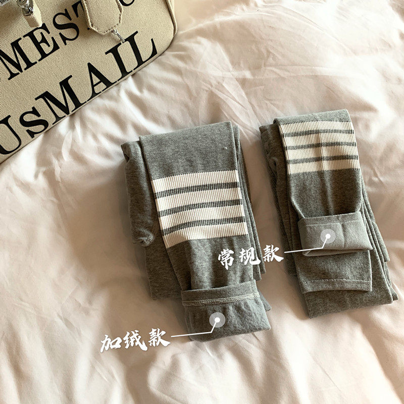 控3实拍实价打底裤女外穿加绒竖条螺纹九分裤四条杠运动夜光裤女
