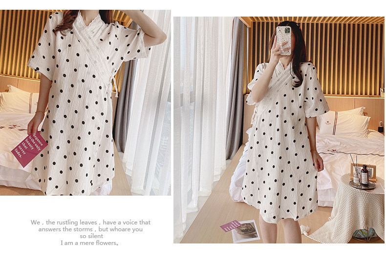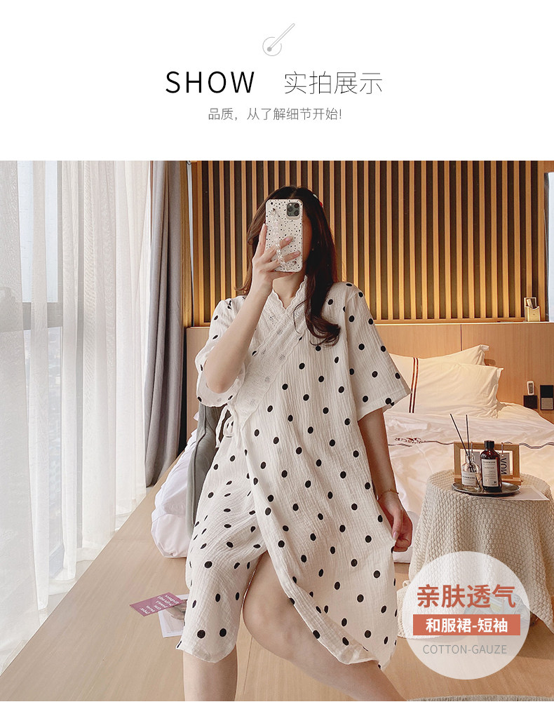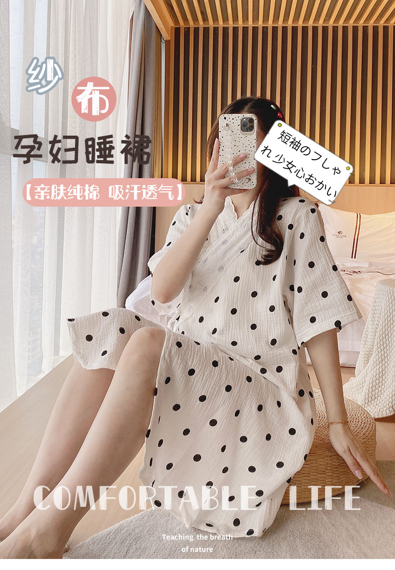 艾尚实拍夏季月子服纯棉绉布双层纱布孕妇睡衣哺乳睡裙家居服
