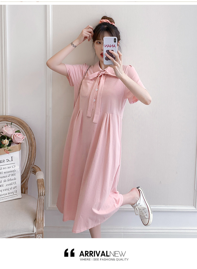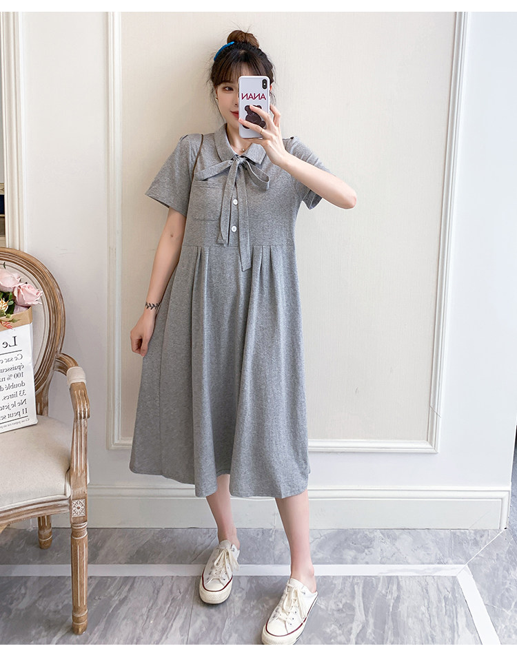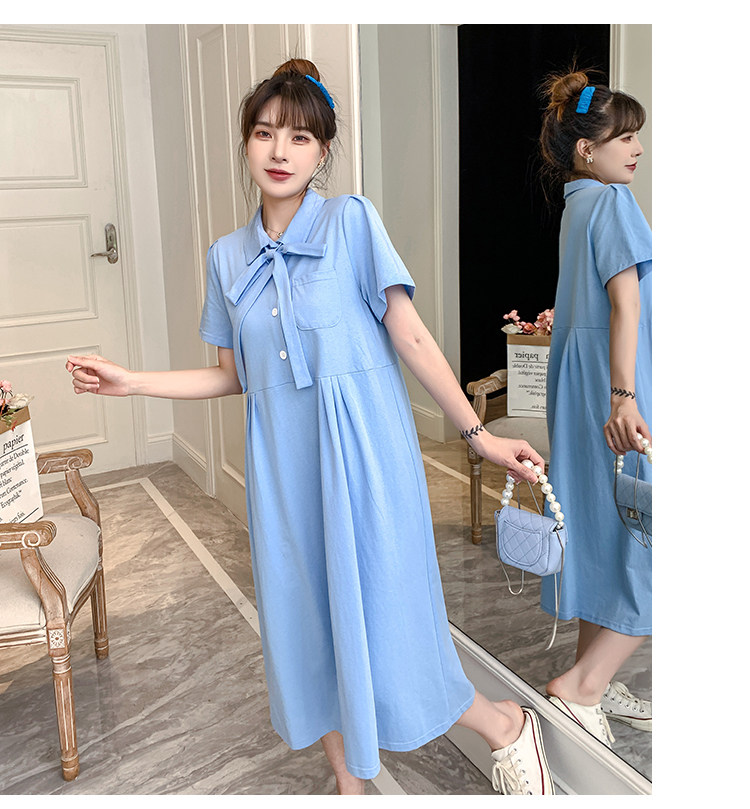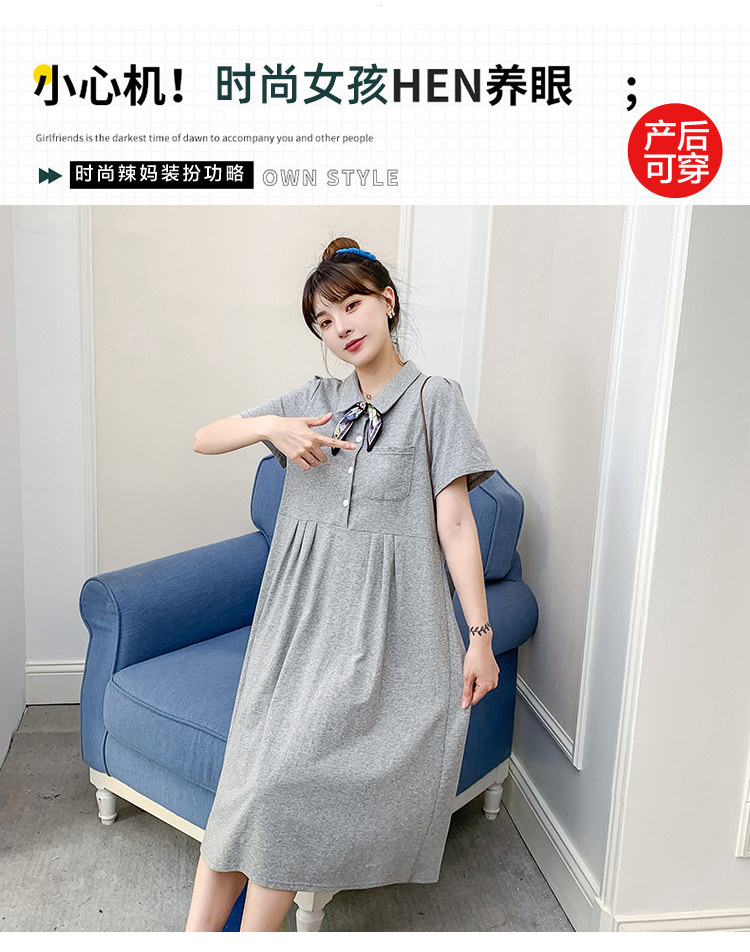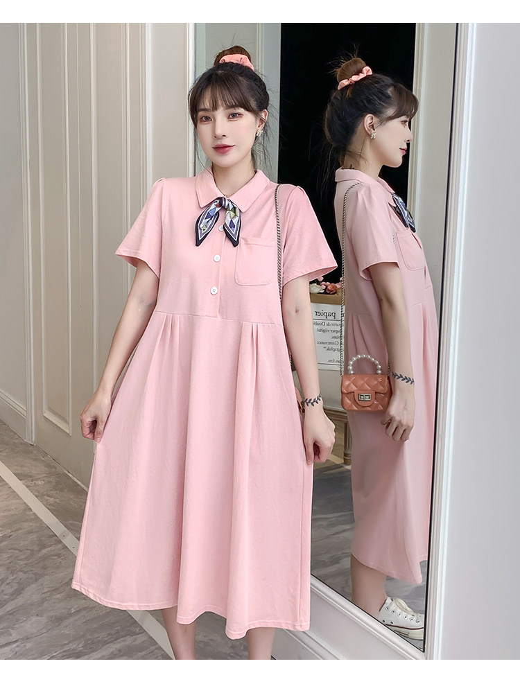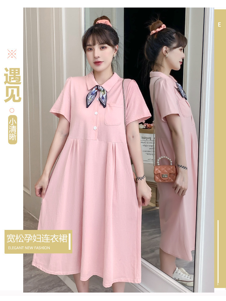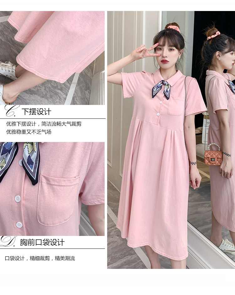 实拍现货2021夏季新款大码翻领Polo孕妇连衣裙送丝巾+领带