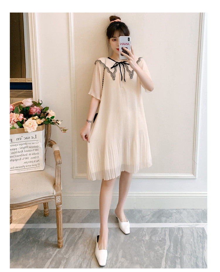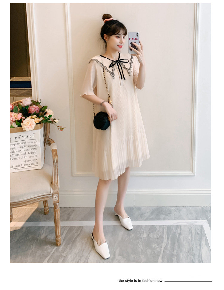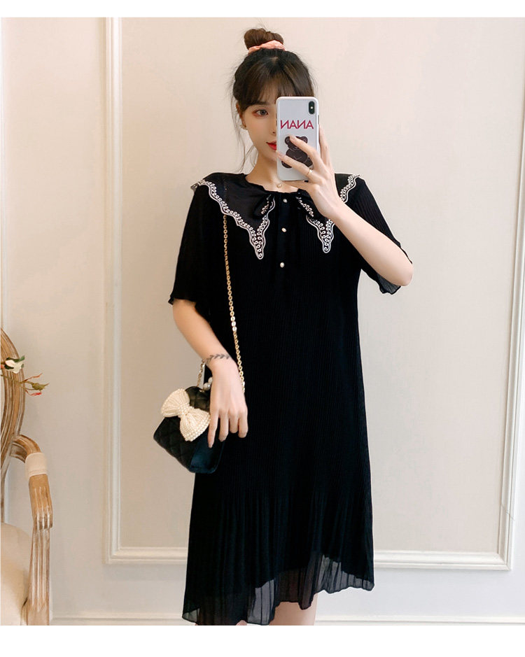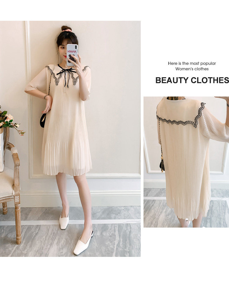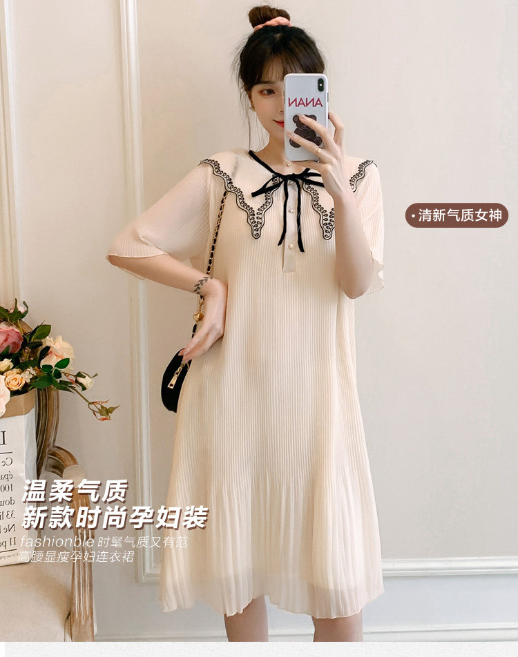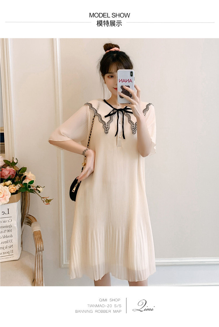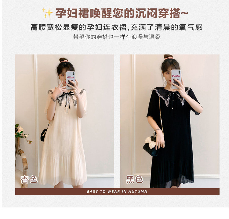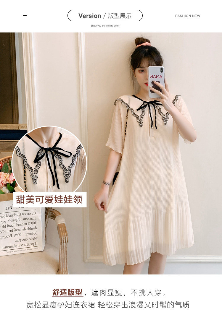 实拍现货 孕妇夏装连衣裙 雪纺百褶裙子 宽松大摆中长款孕妈裙