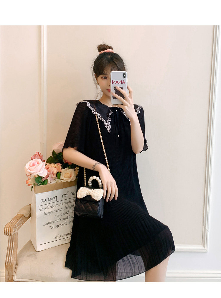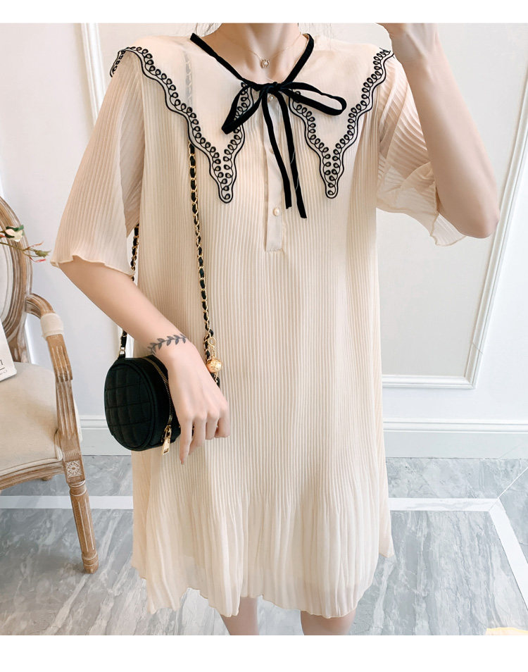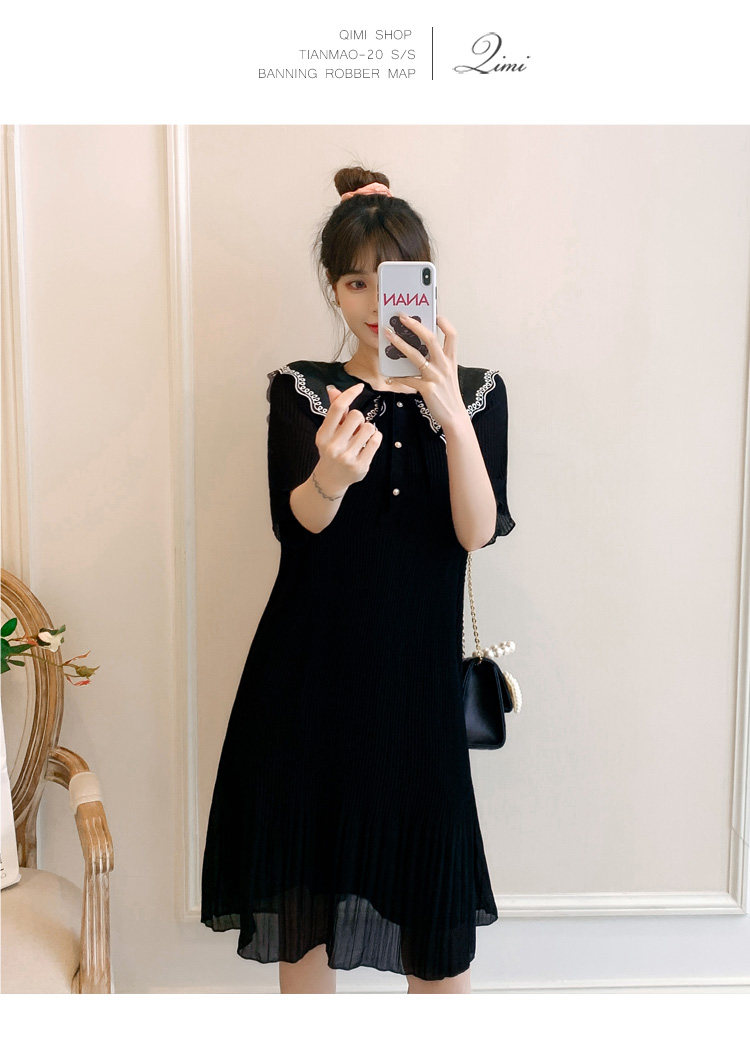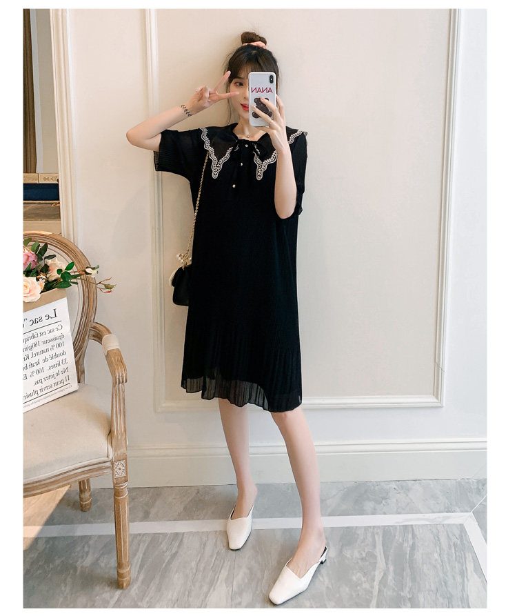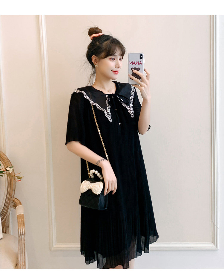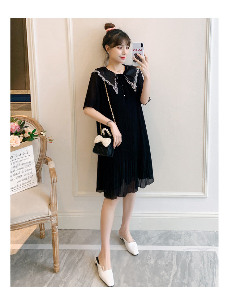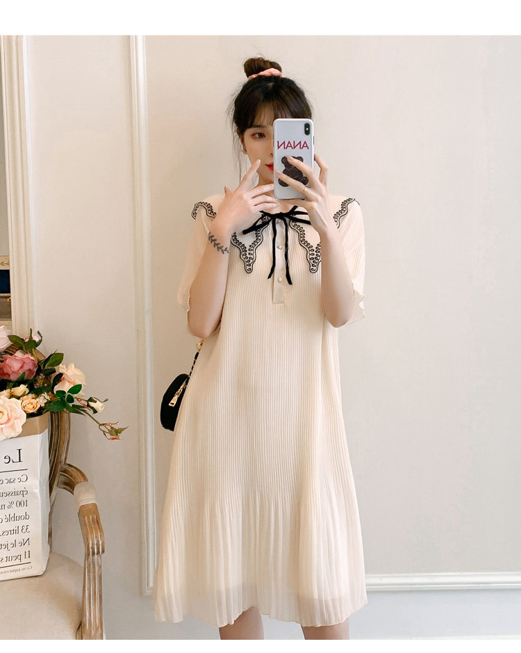 实拍现货 孕妇夏装连衣裙 雪纺百褶裙子 宽松大摆中长款孕妈裙