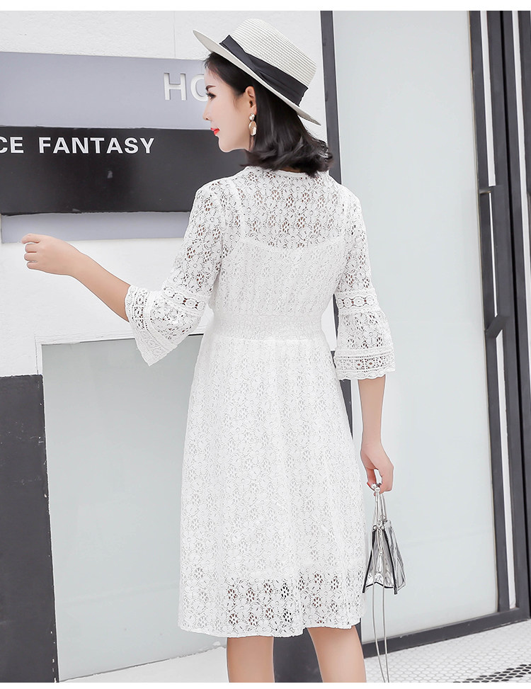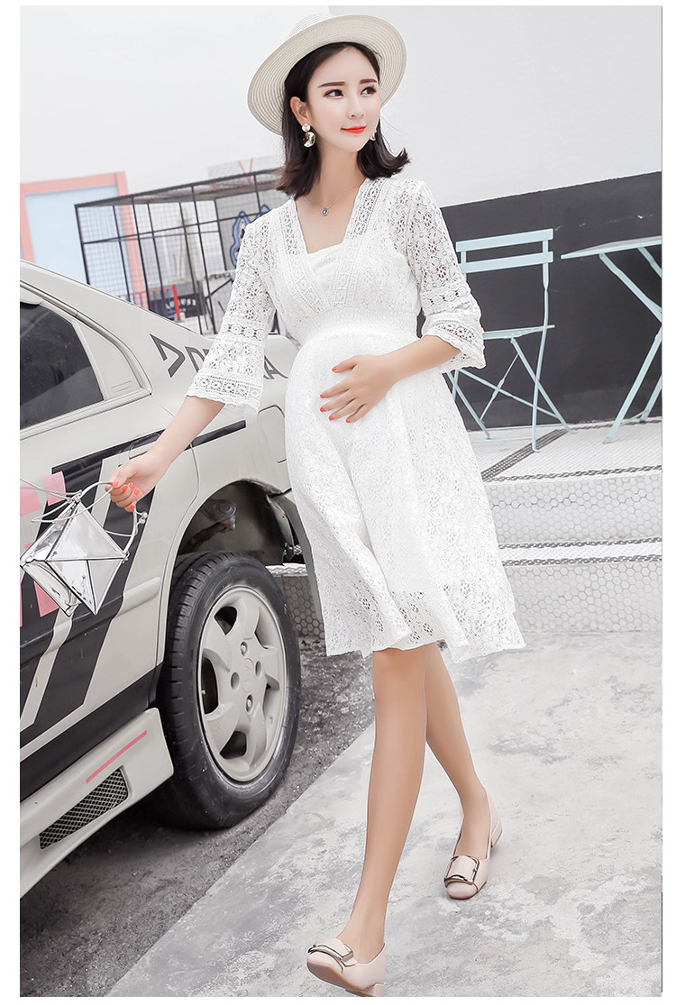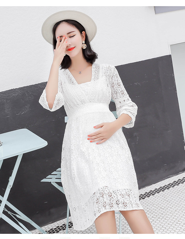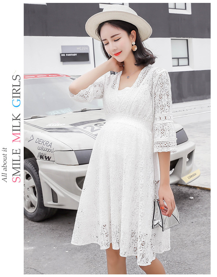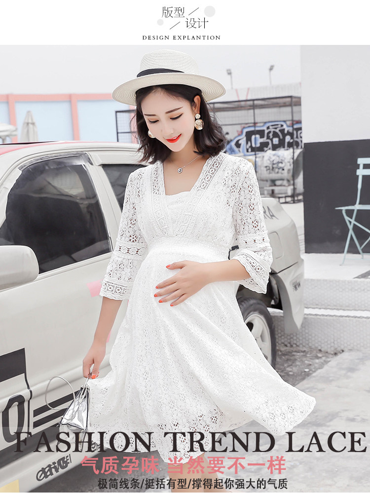 实拍现货!2021春夏新款中长款蕾丝裙+裹胸两件套孕妇装连衣裙