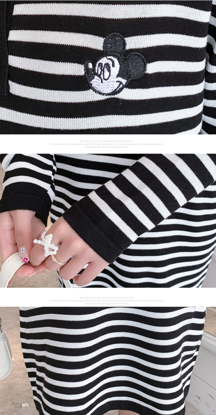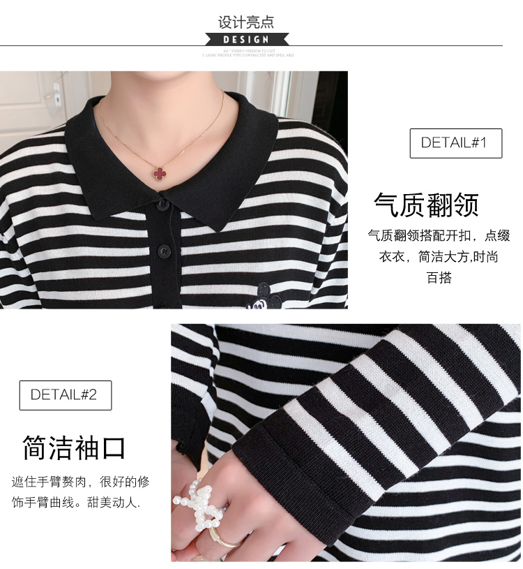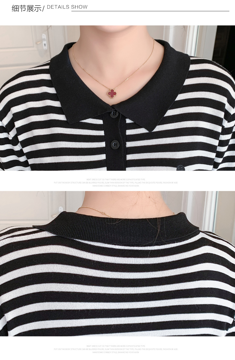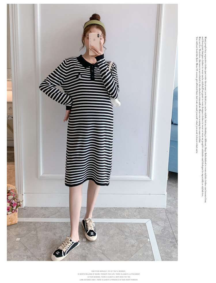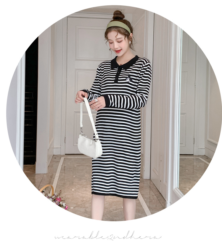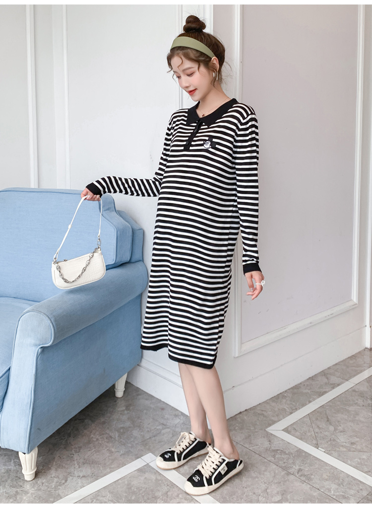 实拍现货新款春秋孕妇时尚条纹宽松显瘦开扣可哺乳网红POLO衫冰丝针织裙