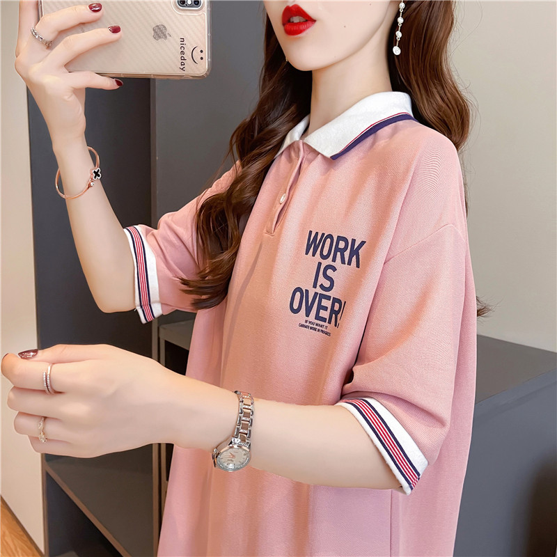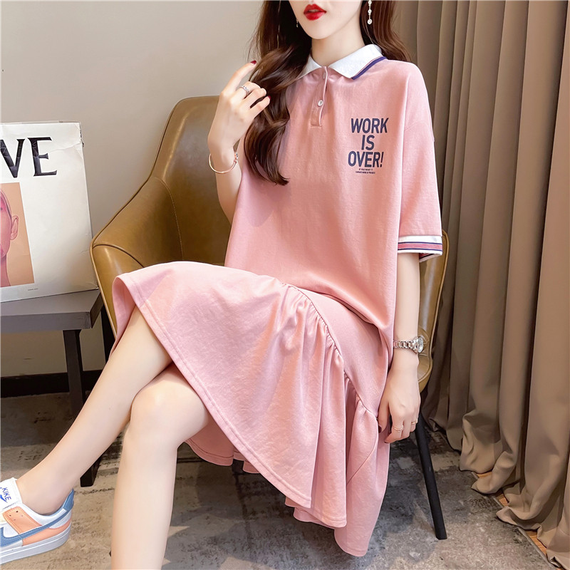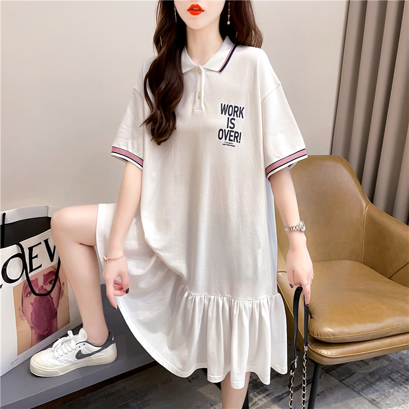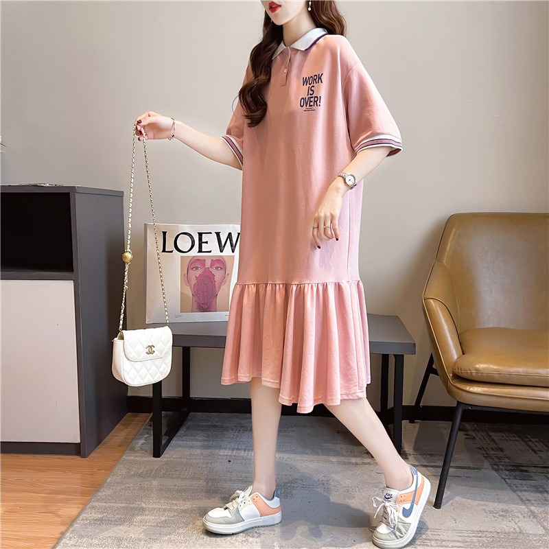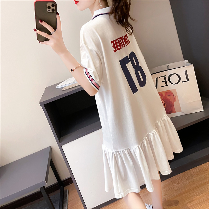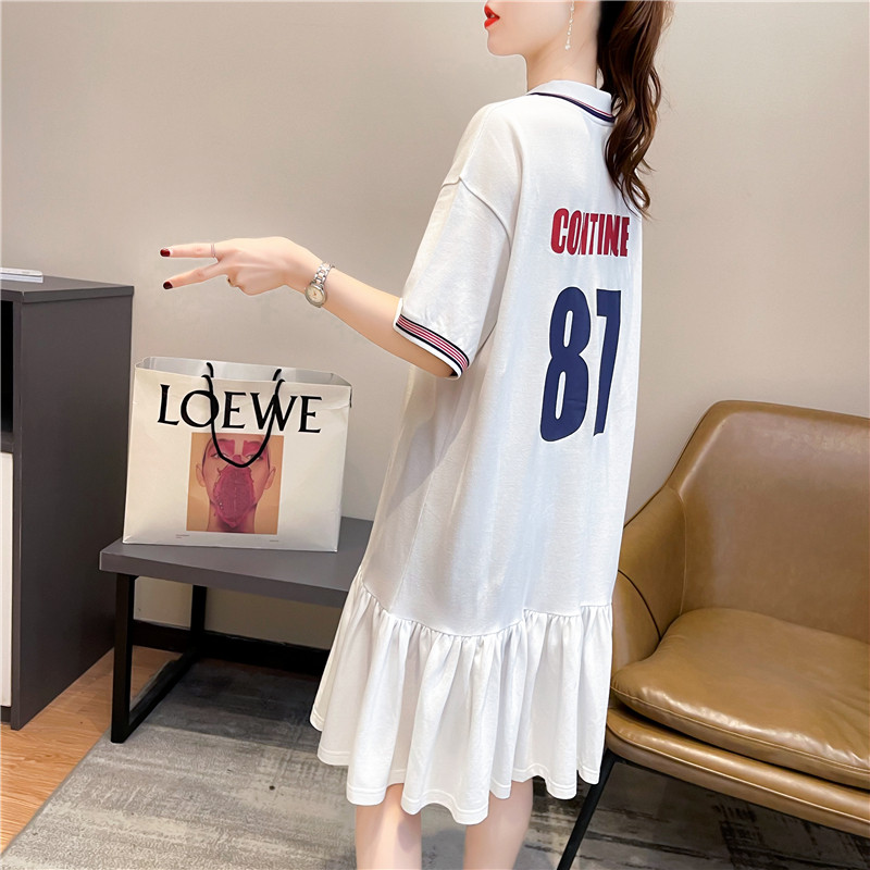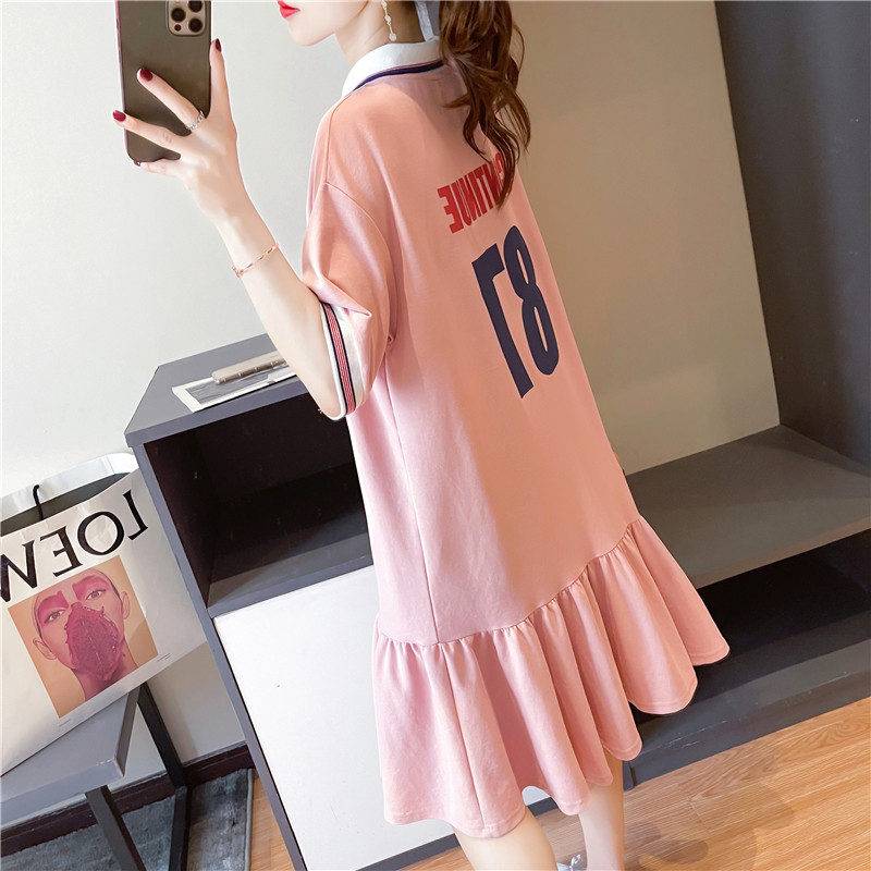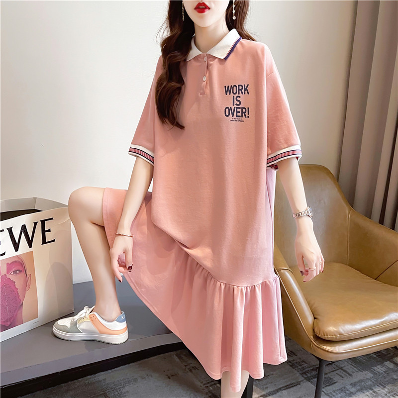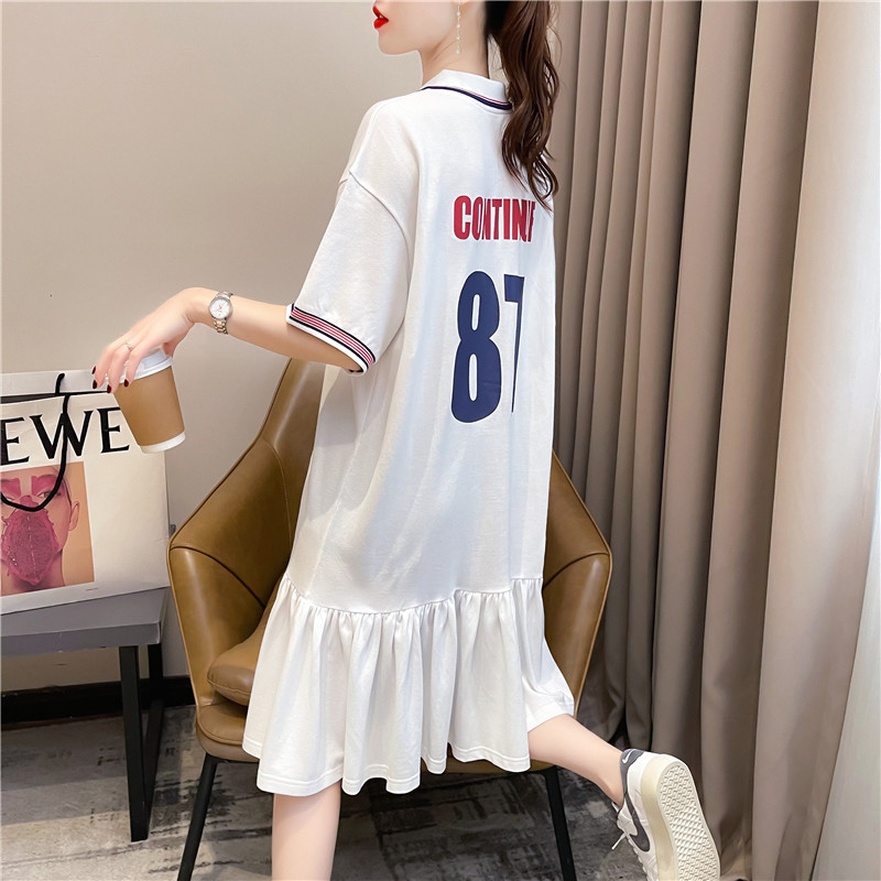 实拍现货2021新款孕妇装夏季韩版连衣裙短袖翻领t恤女中长款潮