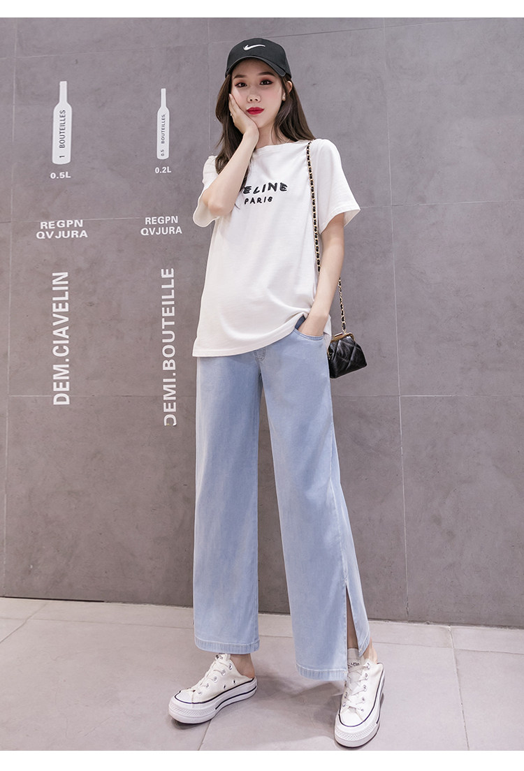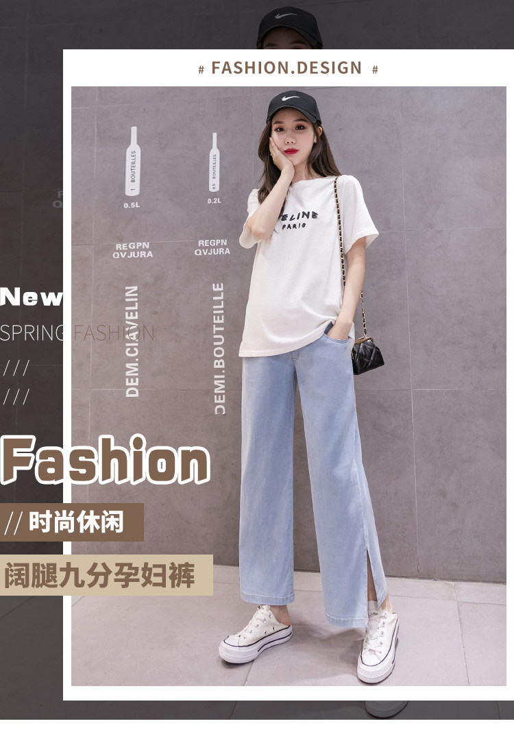 孕妇天丝牛仔休闲裤夏季薄款宽松时尚直筒阔腿裤