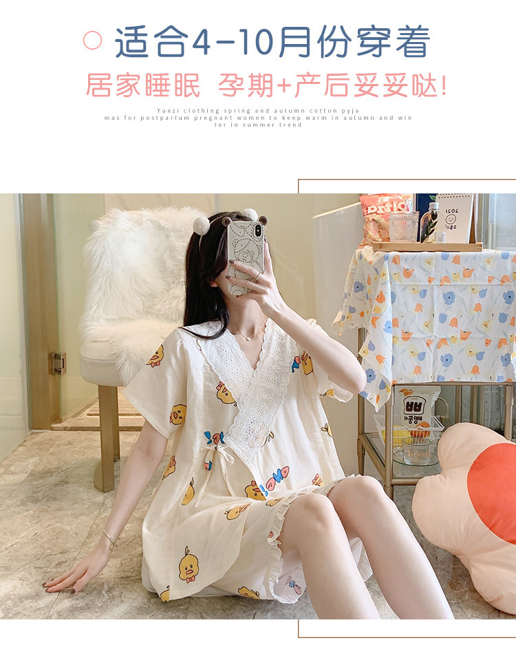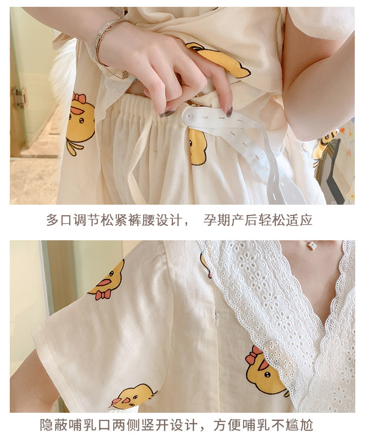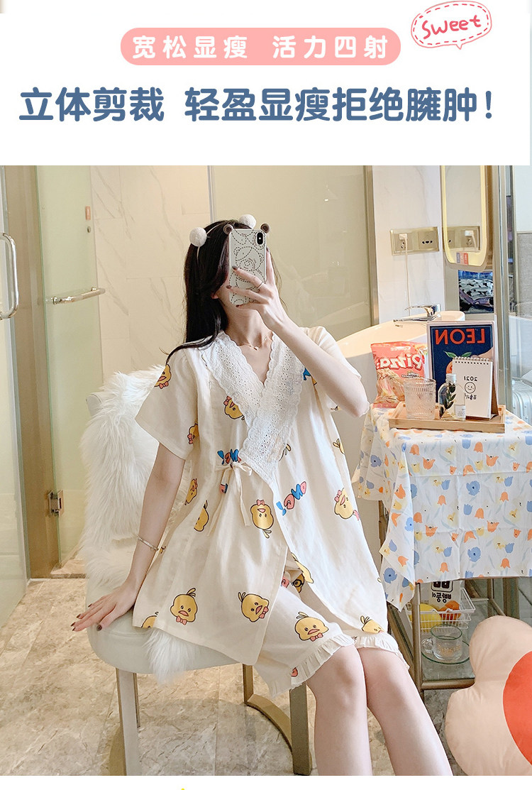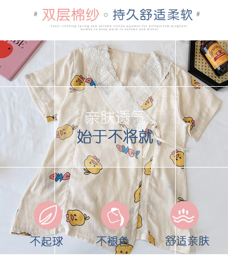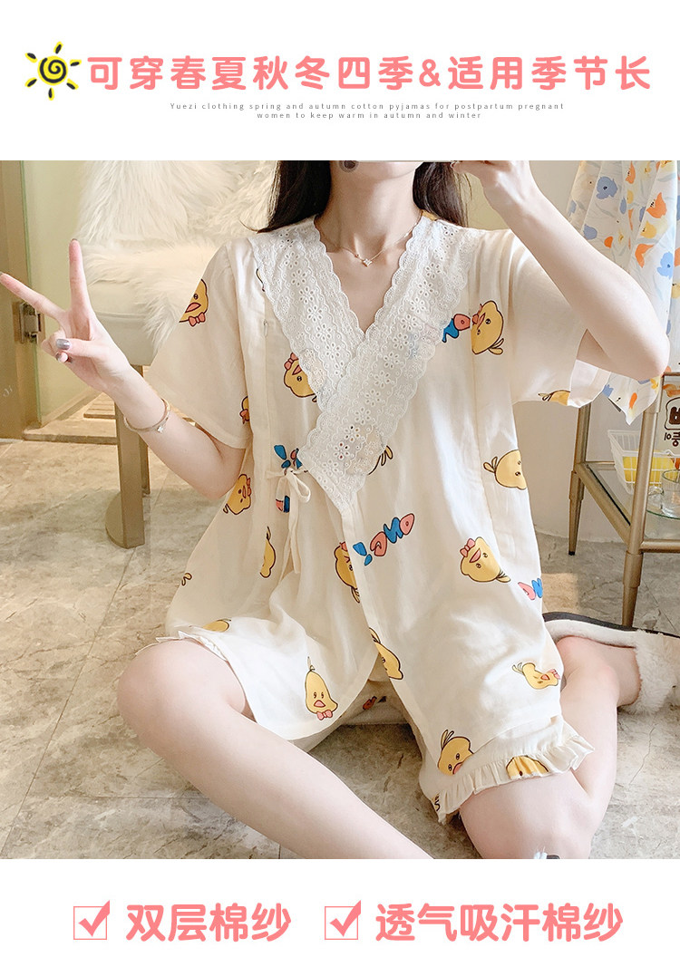 艾尚实拍新款睡衣纯棉纱布短袖月子服孕妇睡衣夏季薄款