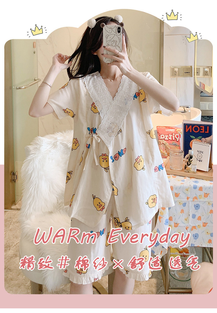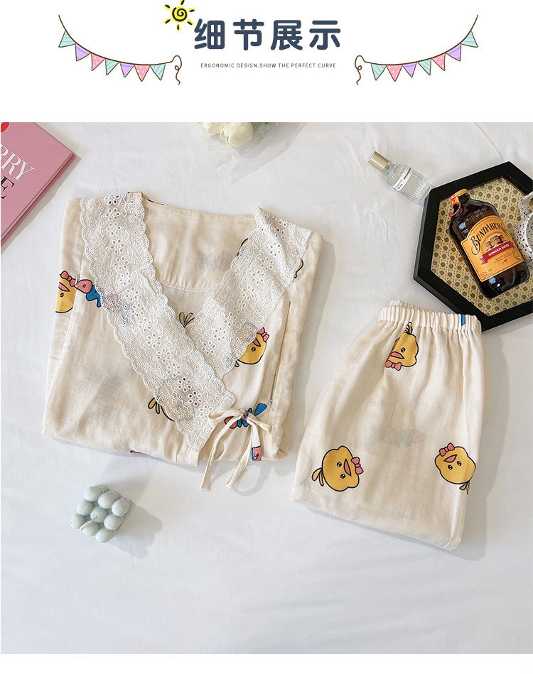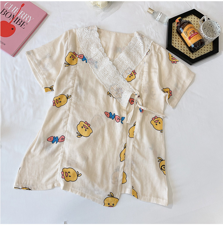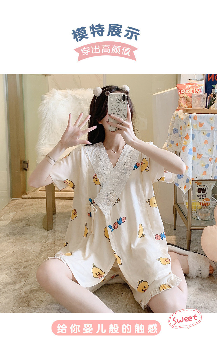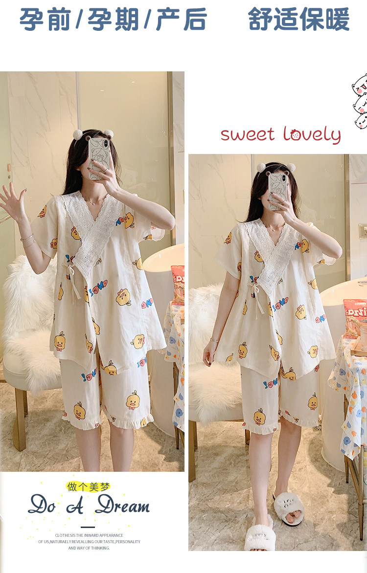 艾尚实拍新款睡衣纯棉纱布短袖月子服孕妇睡衣夏季薄款