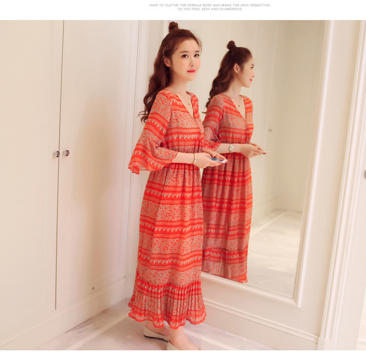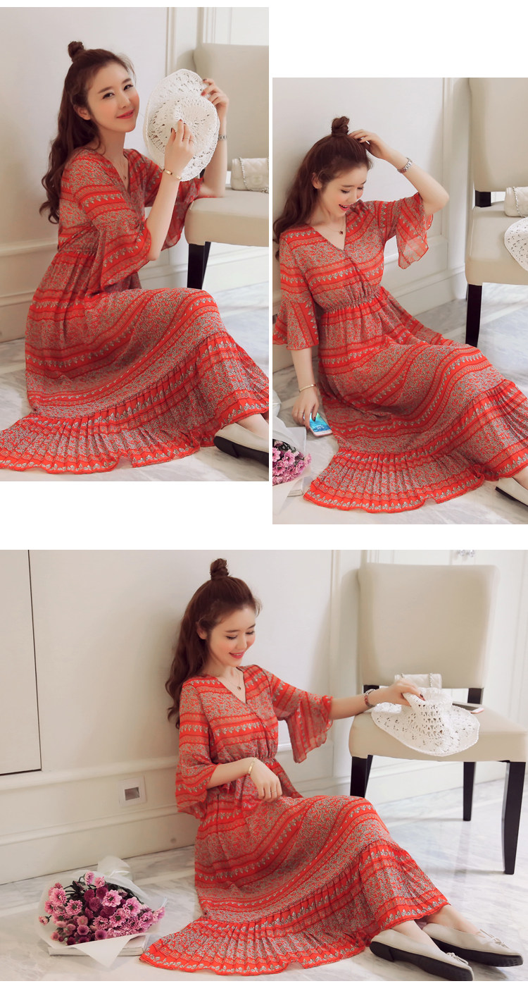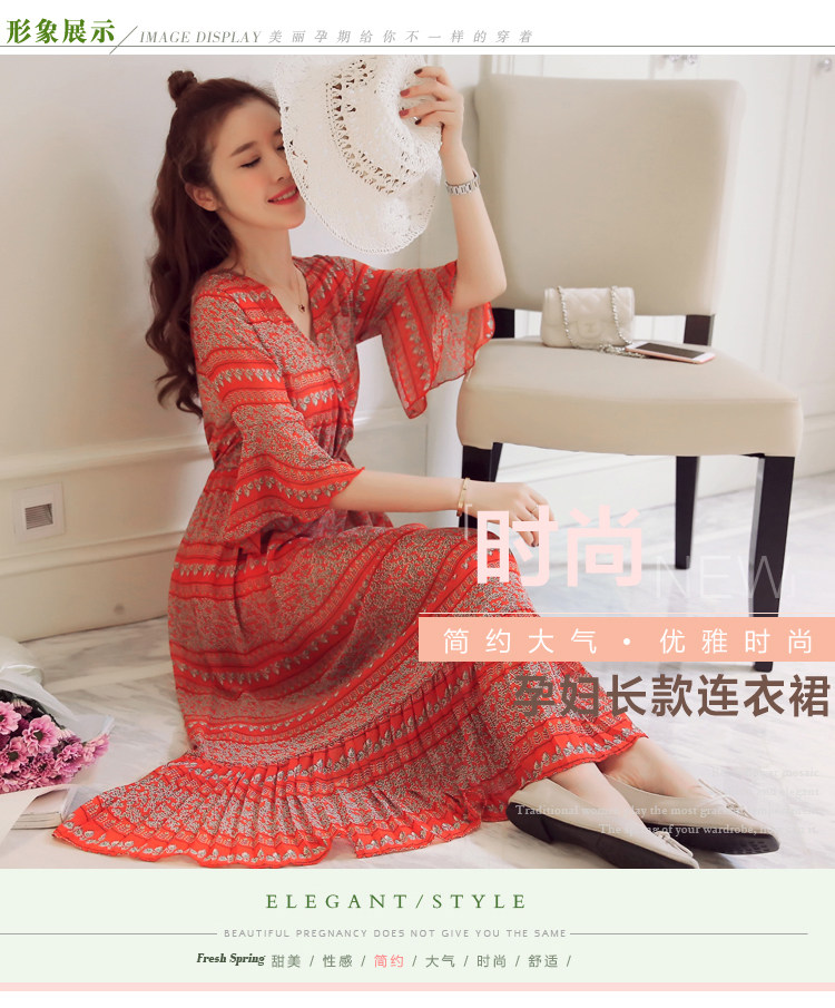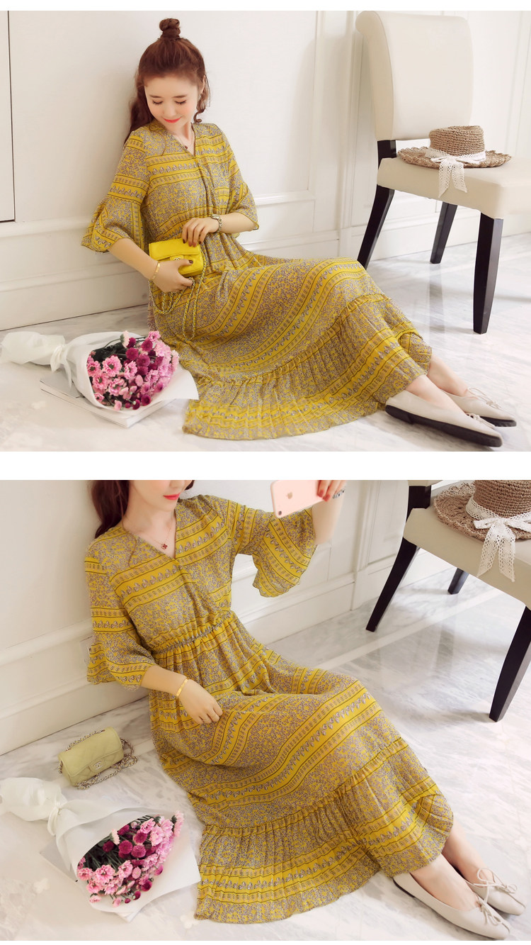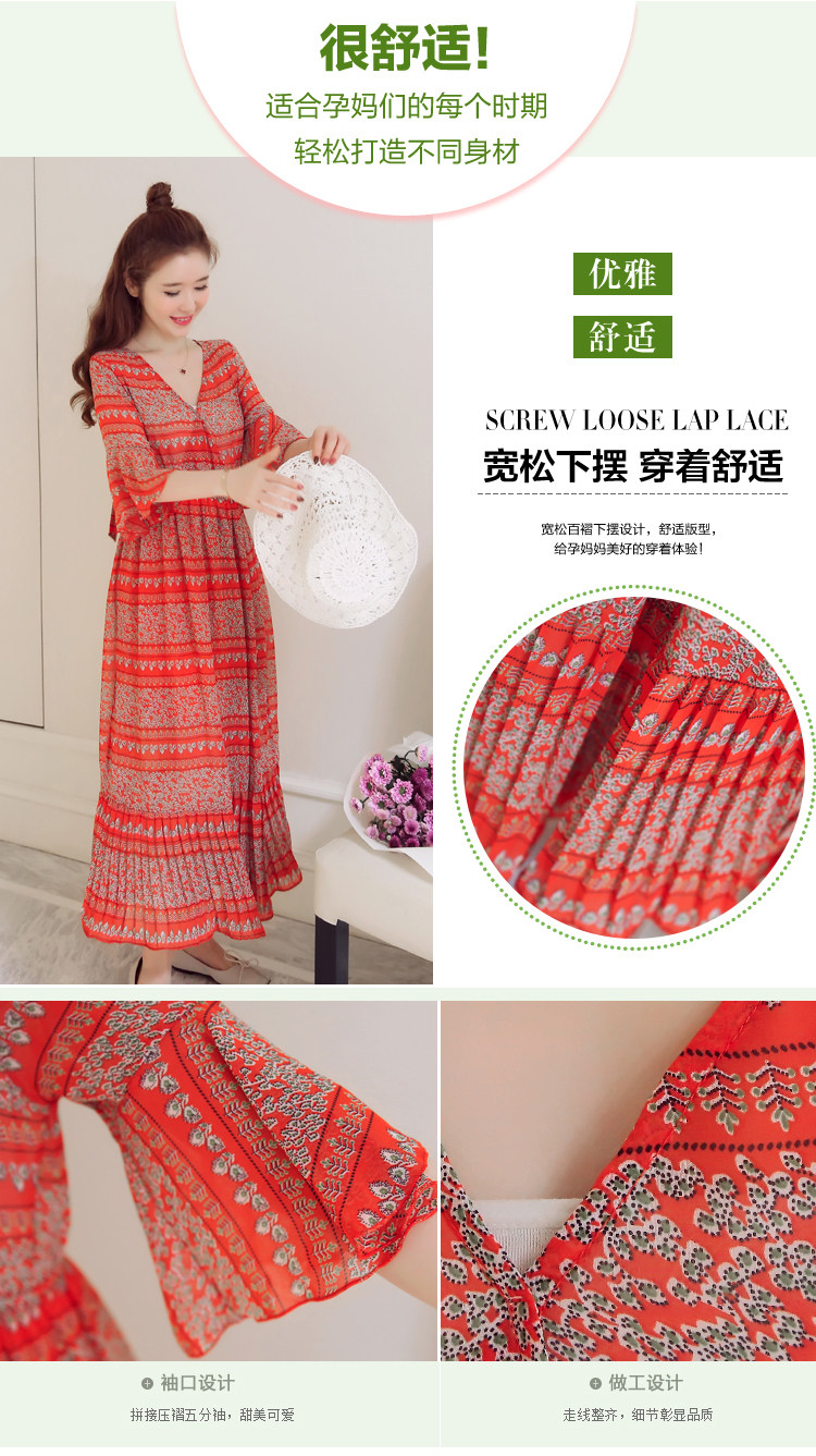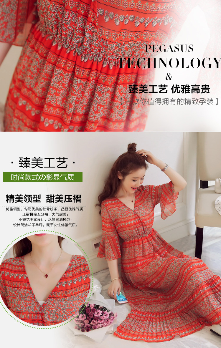 实拍 韩版雪纺波西米亚长裙哺乳装夏装