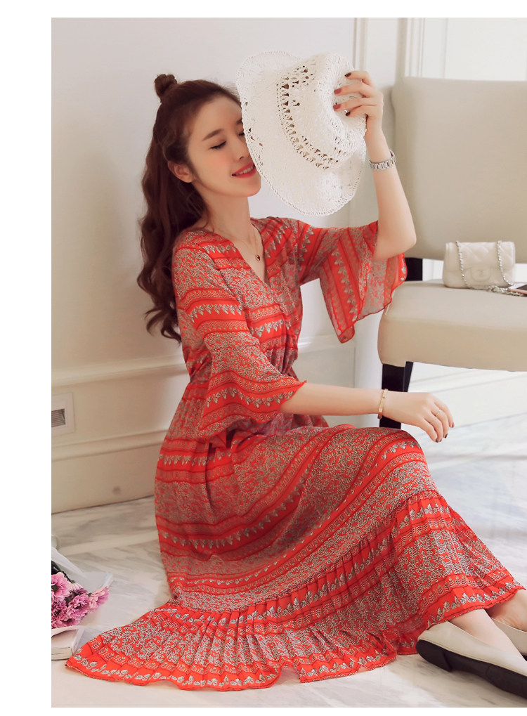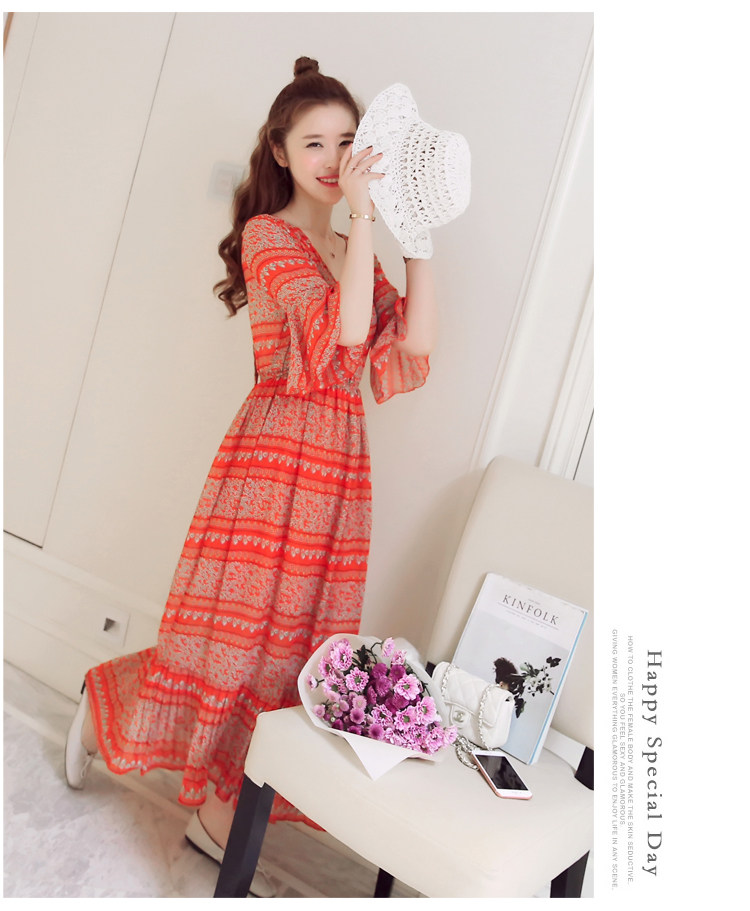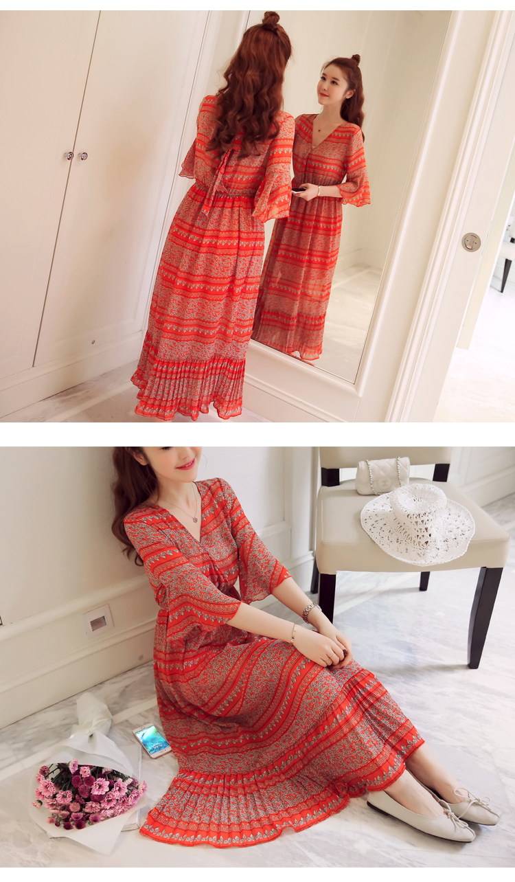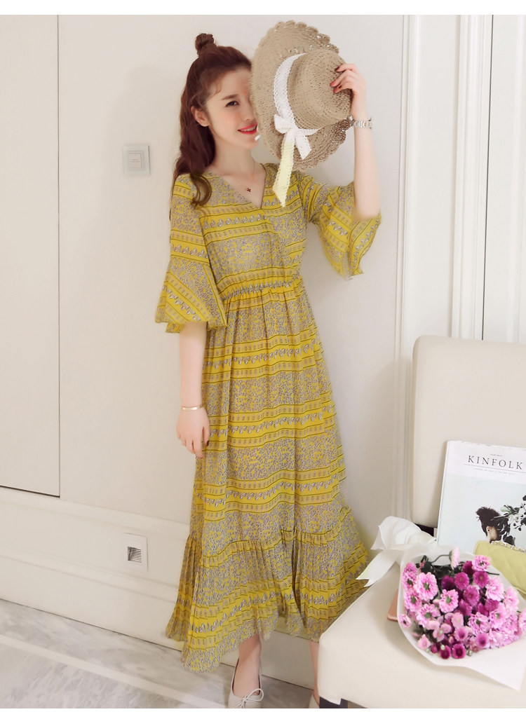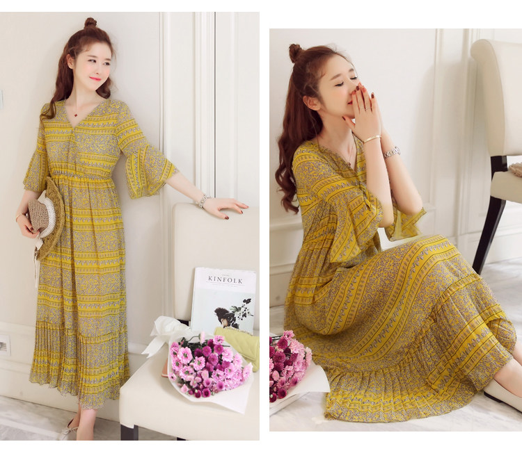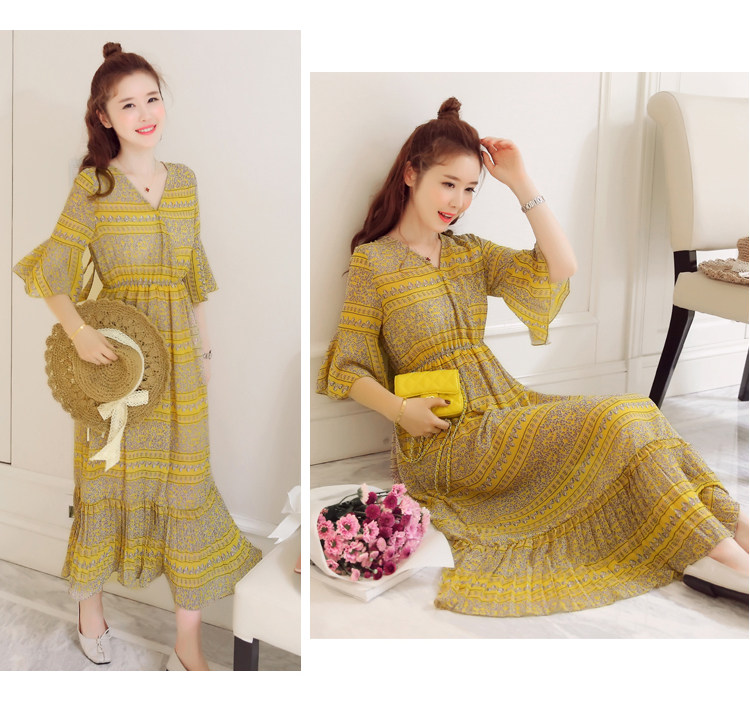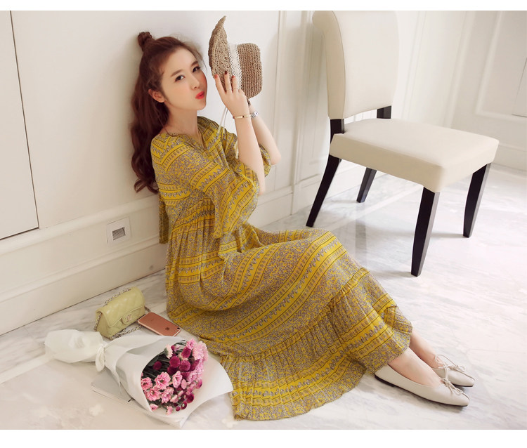 实拍 韩版雪纺波西米亚长裙哺乳装夏装
