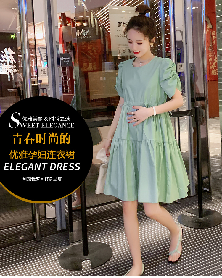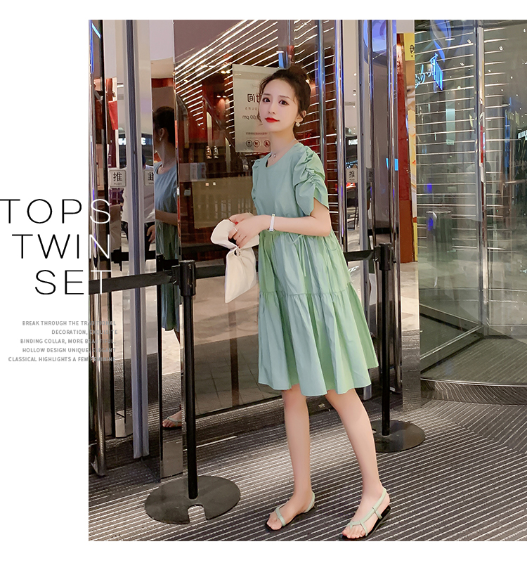 2021新款实拍夏装小清新连衣裙时尚潮流孕妇装显瘦大码女装