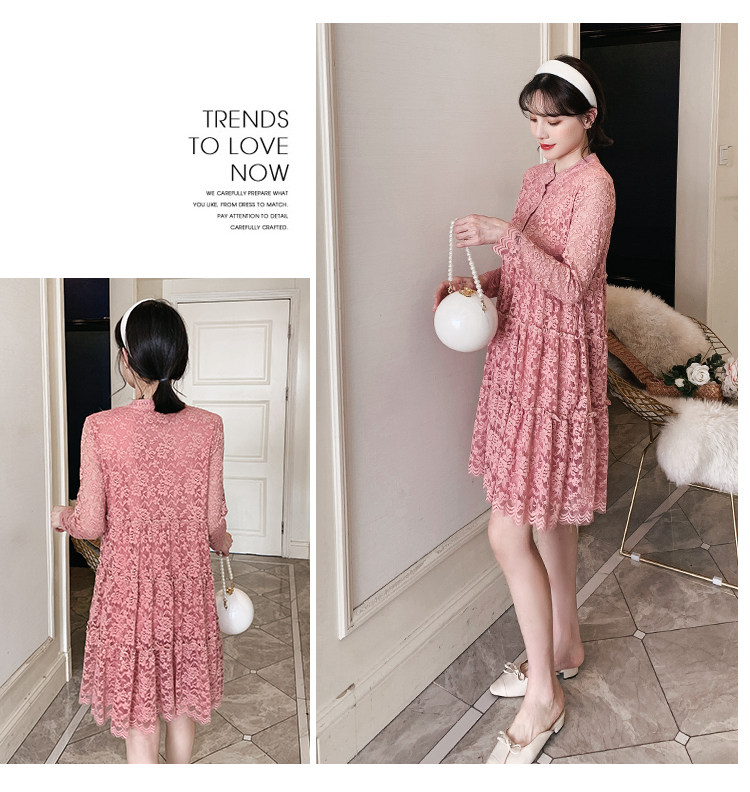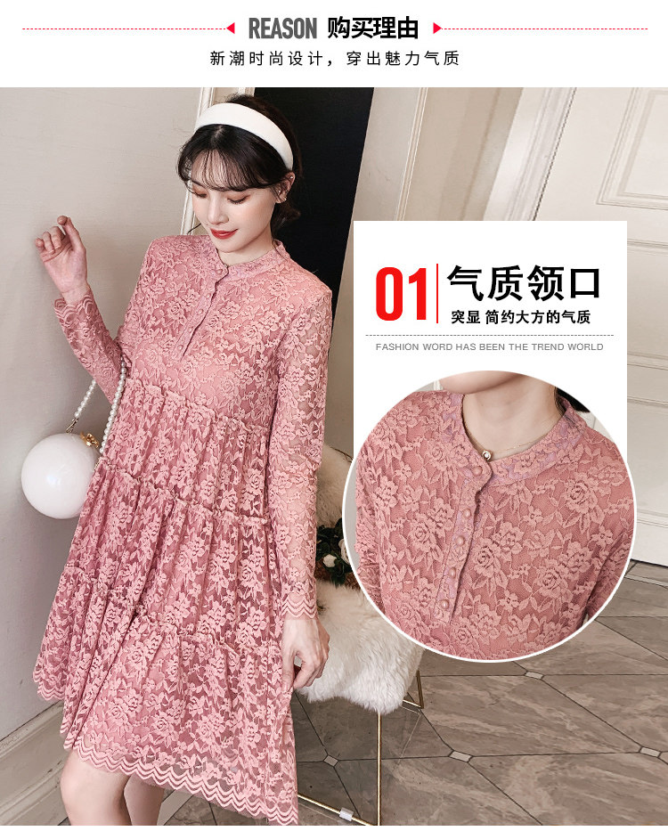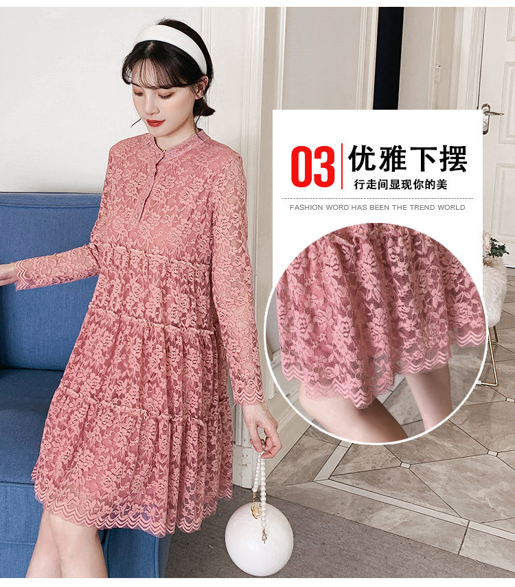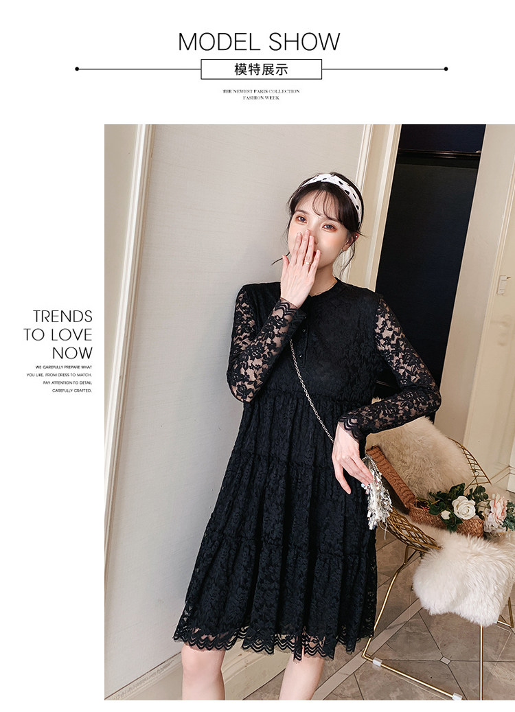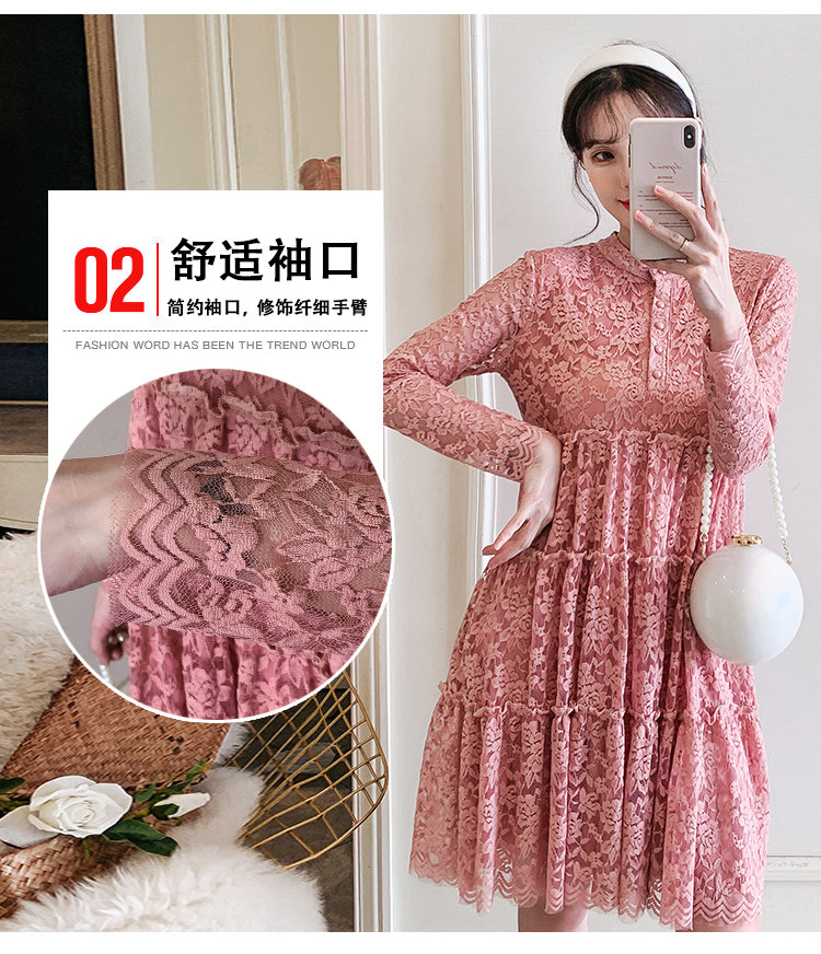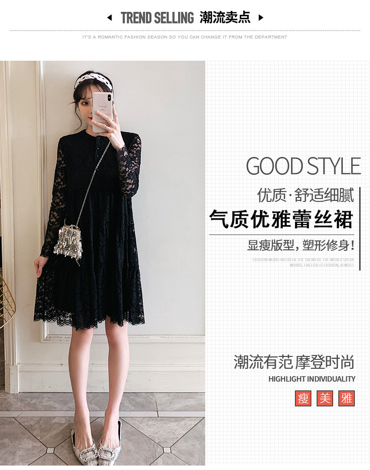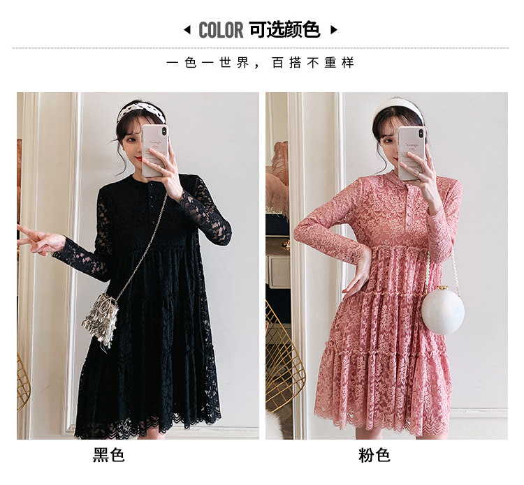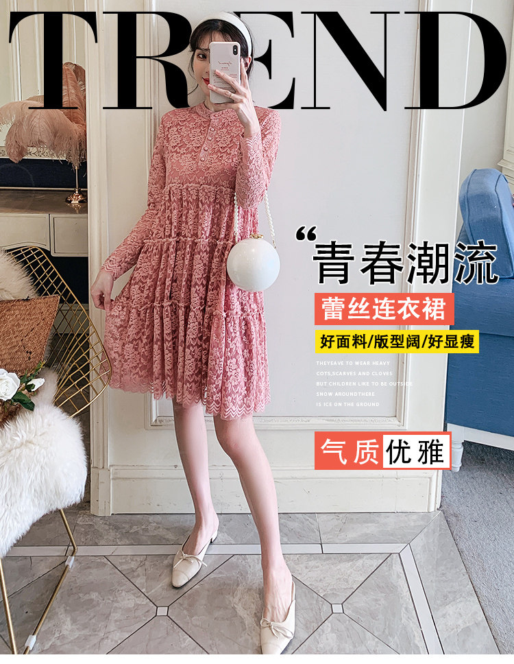 实拍秋季新款韩版大码蕾丝孕妇连衣裙