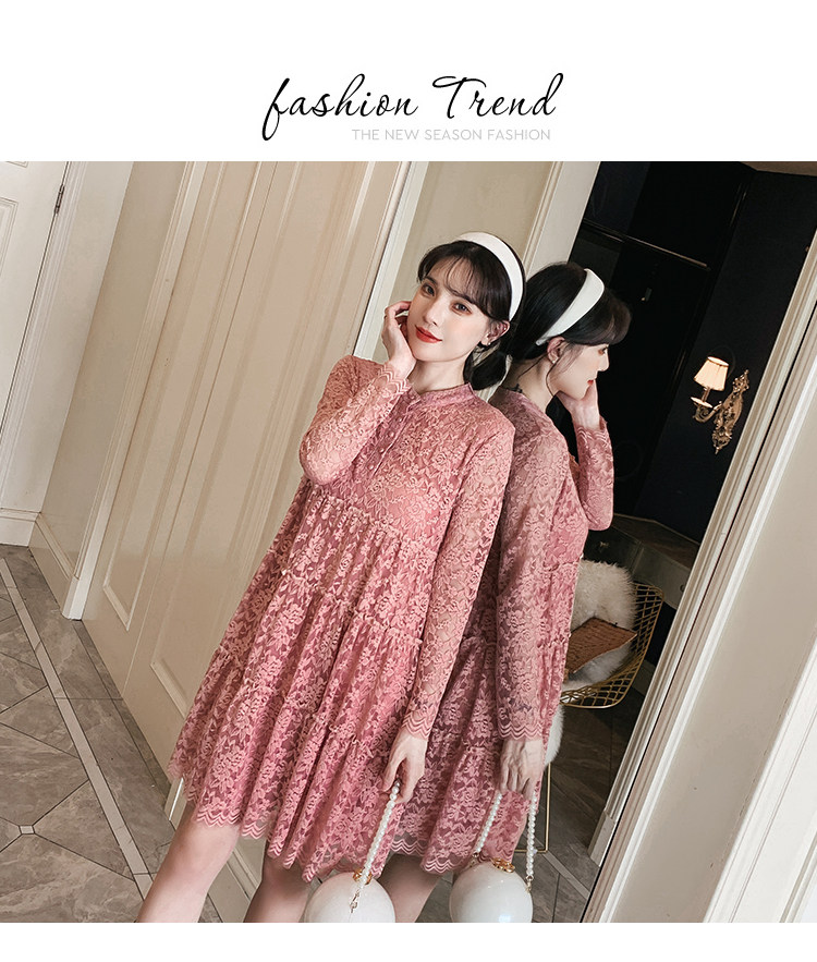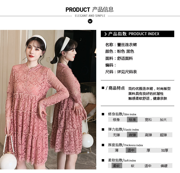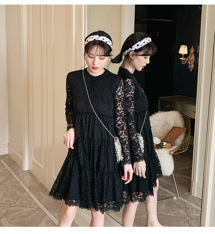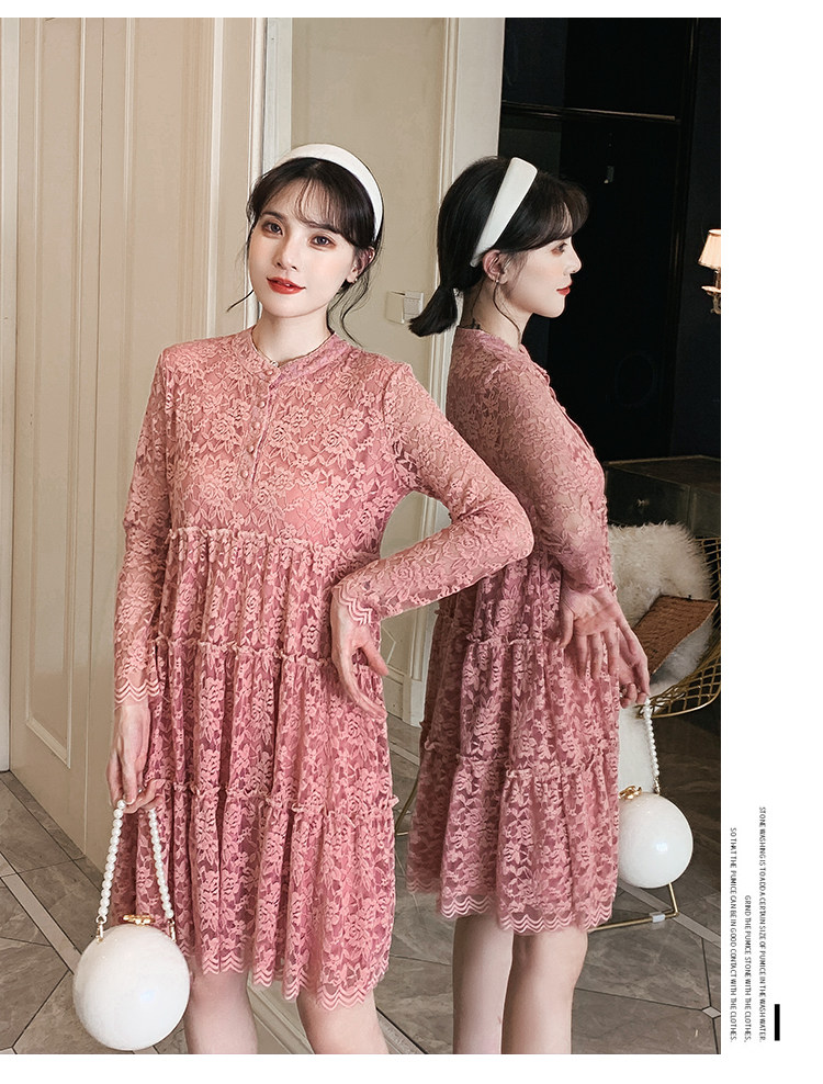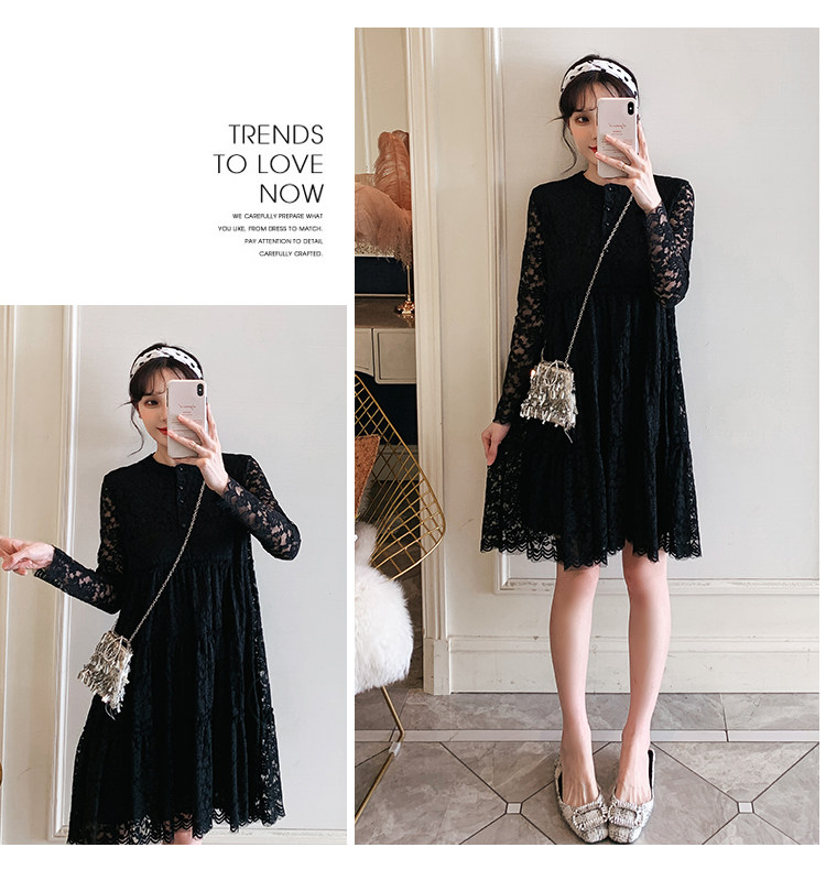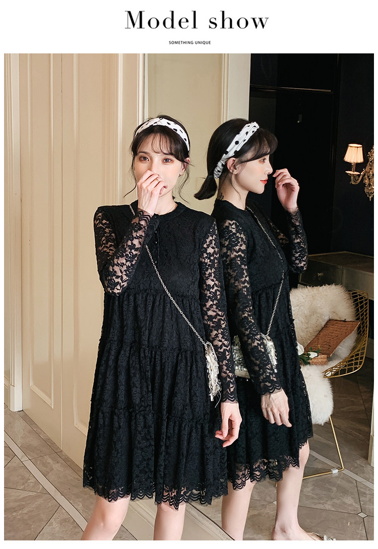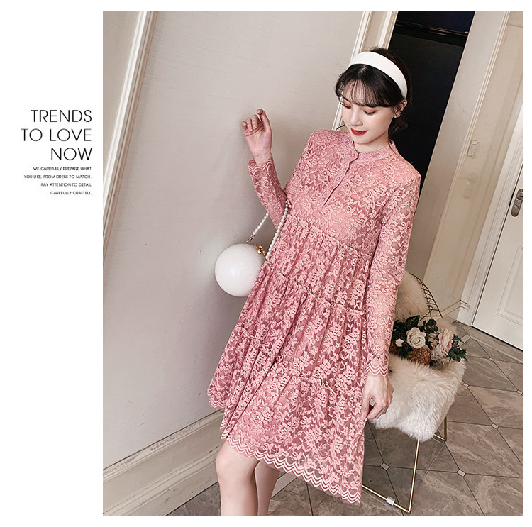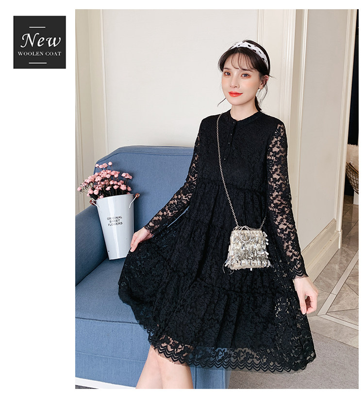 实拍秋季新款韩版大码蕾丝孕妇连衣裙