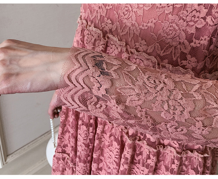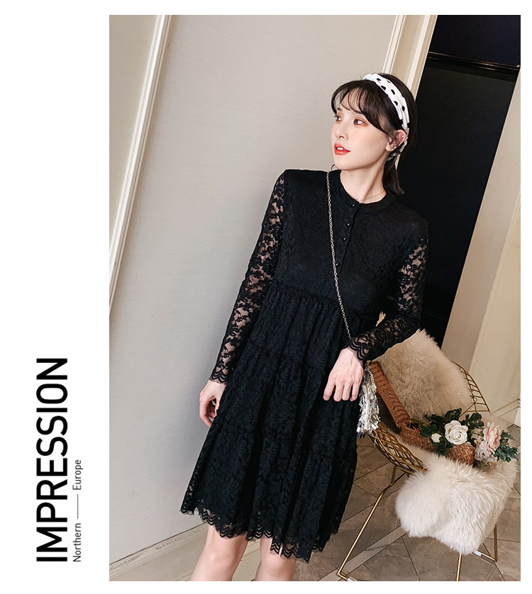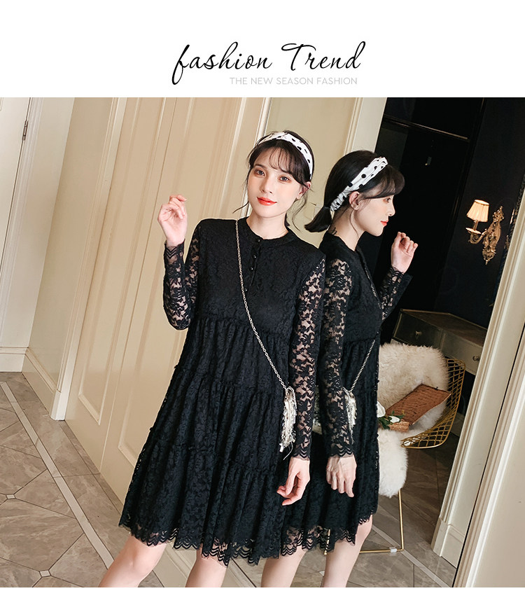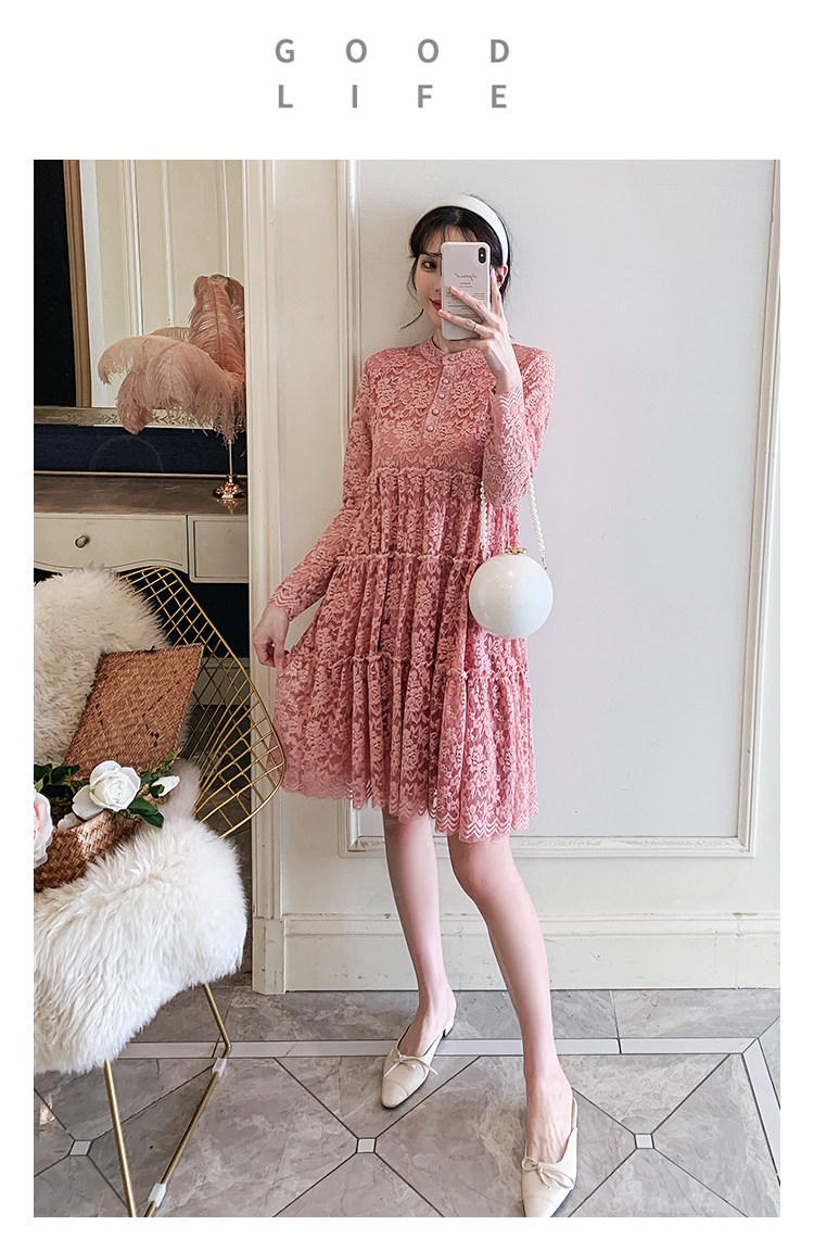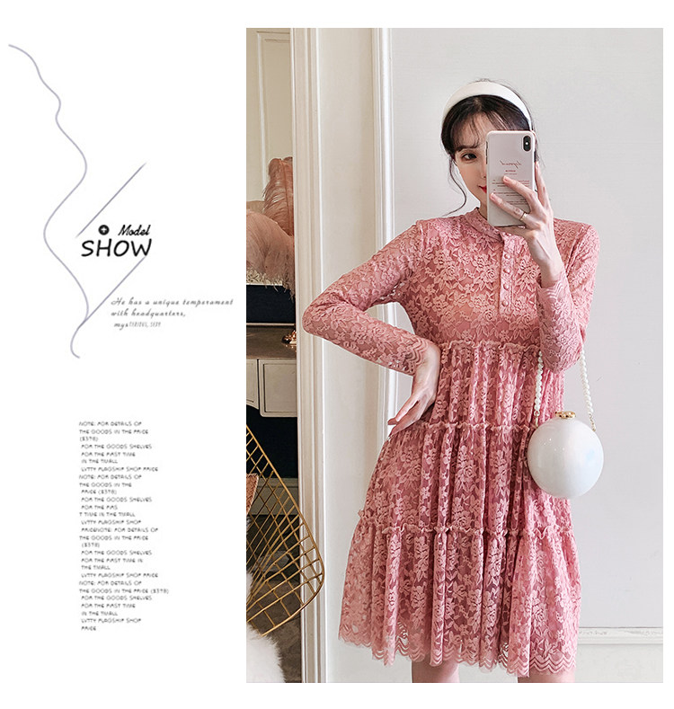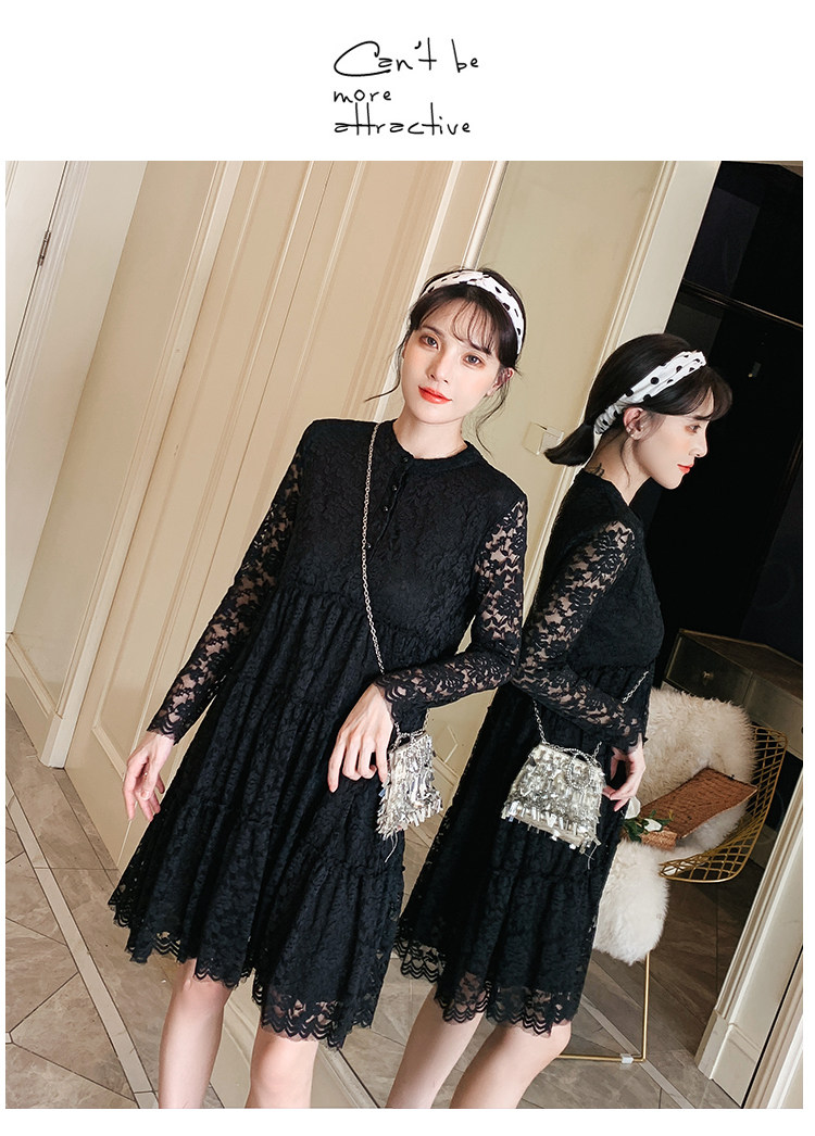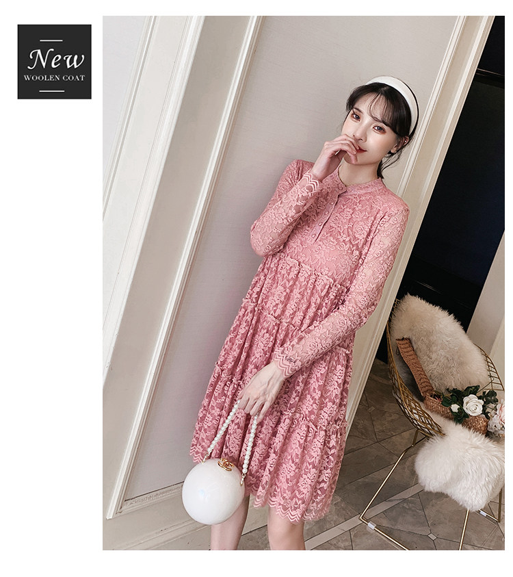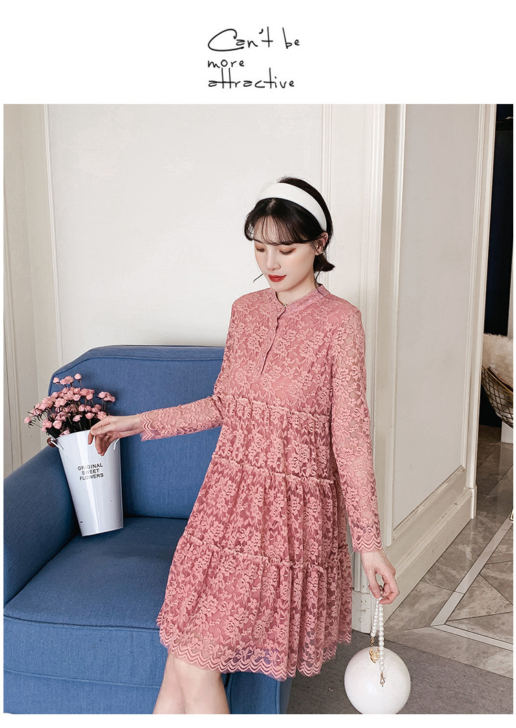 实拍秋季新款韩版大码蕾丝孕妇连衣裙