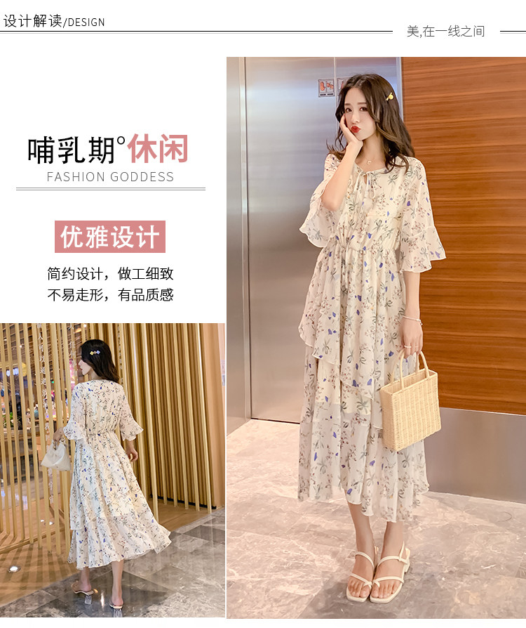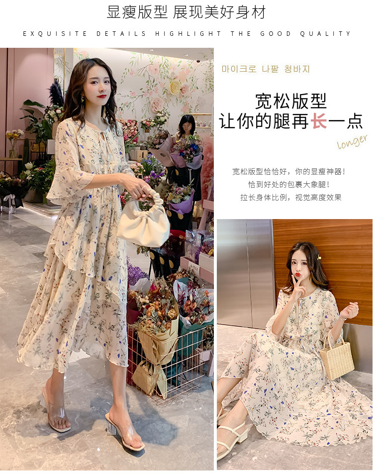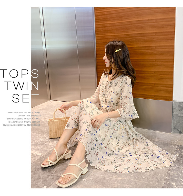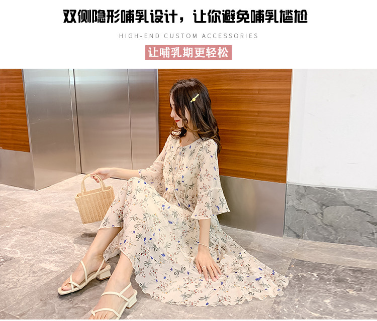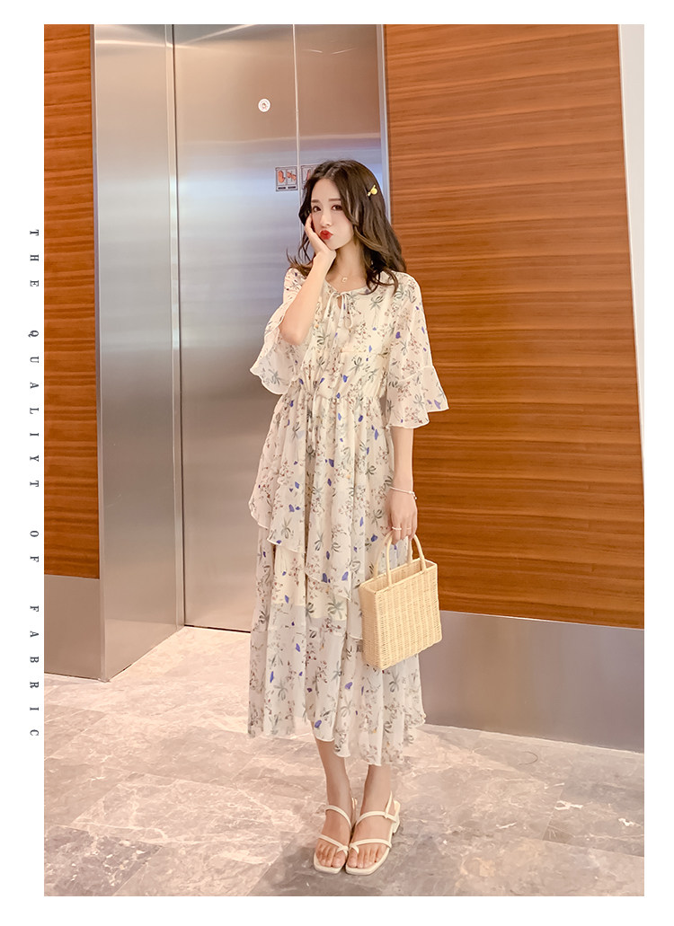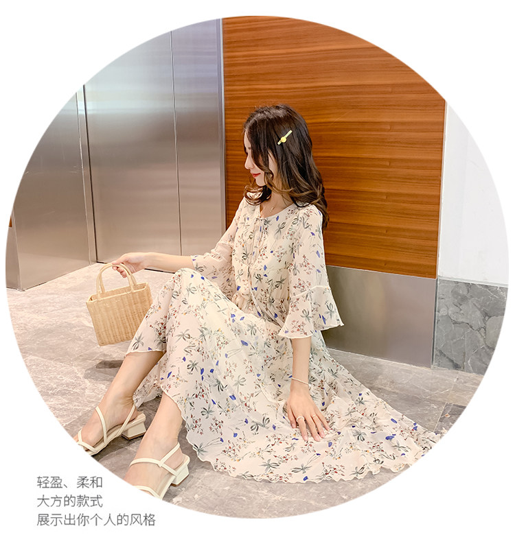 2021夏季新款很仙的孕妇印花连衣裙雪纺中长款仙女裙显瘦裙子