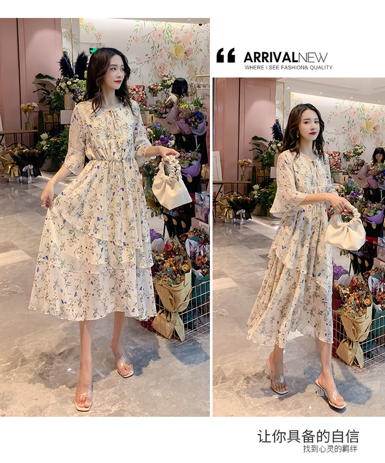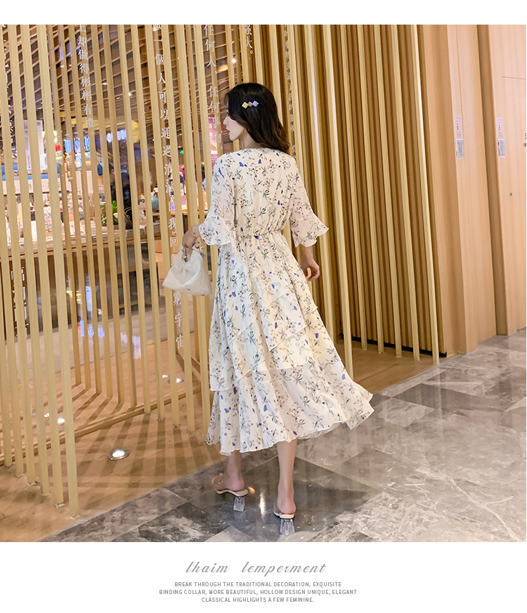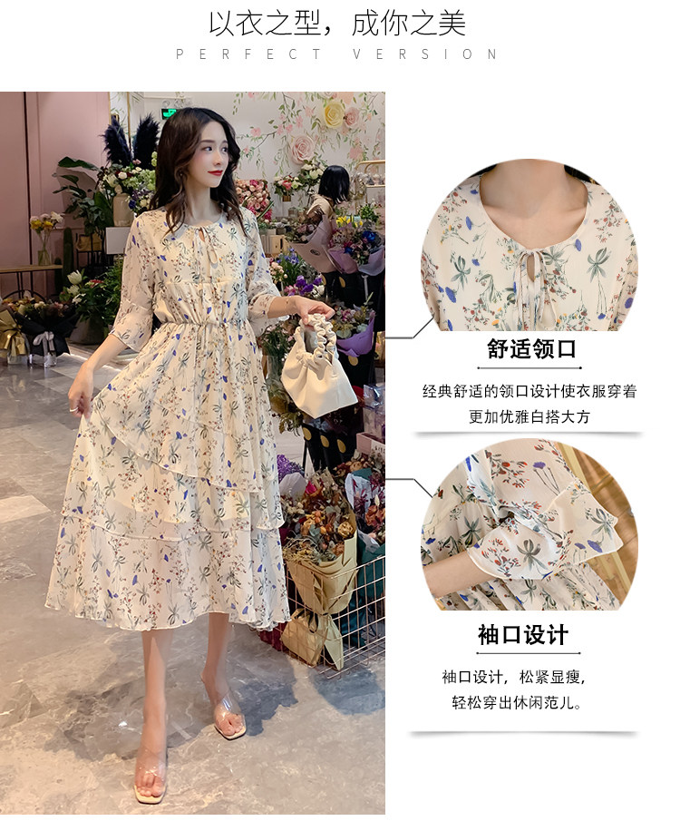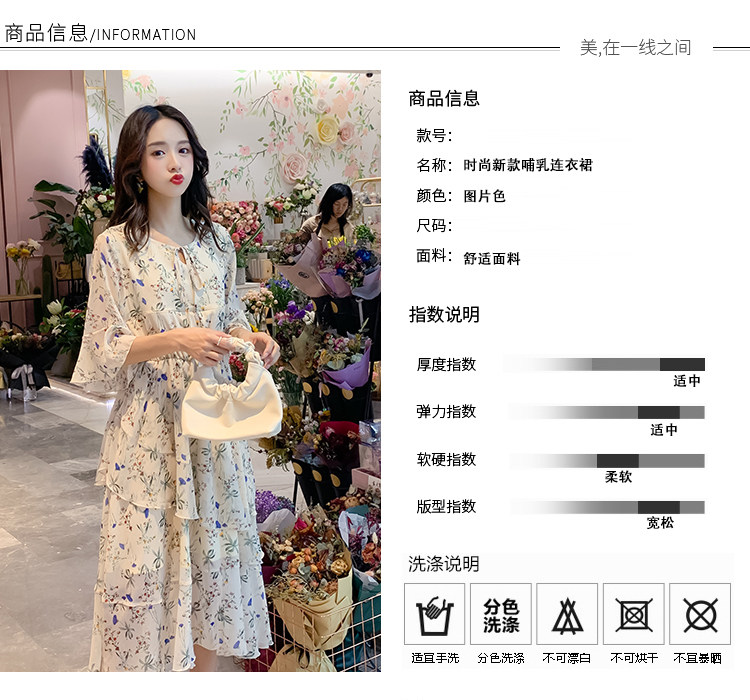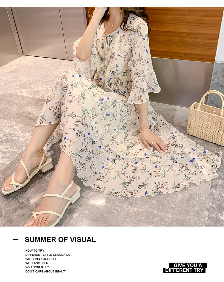 2021夏季新款很仙的孕妇印花连衣裙雪纺中长款仙女裙显瘦裙子
