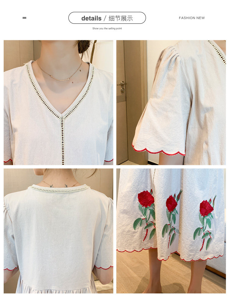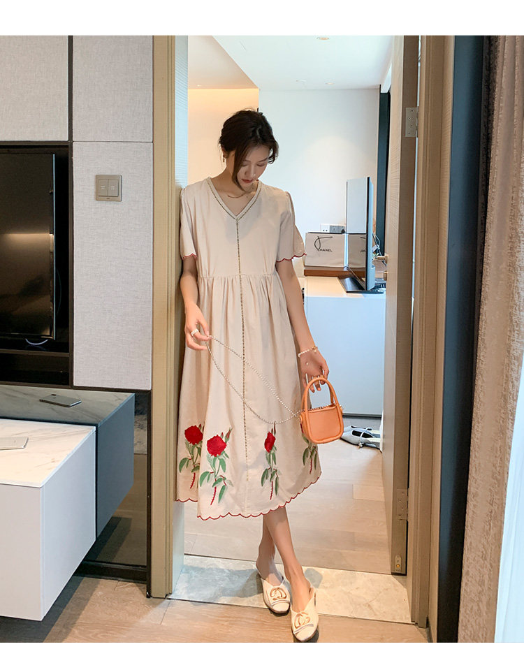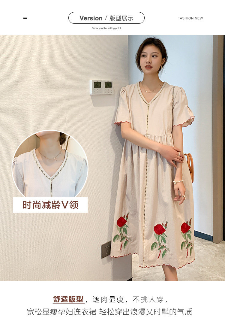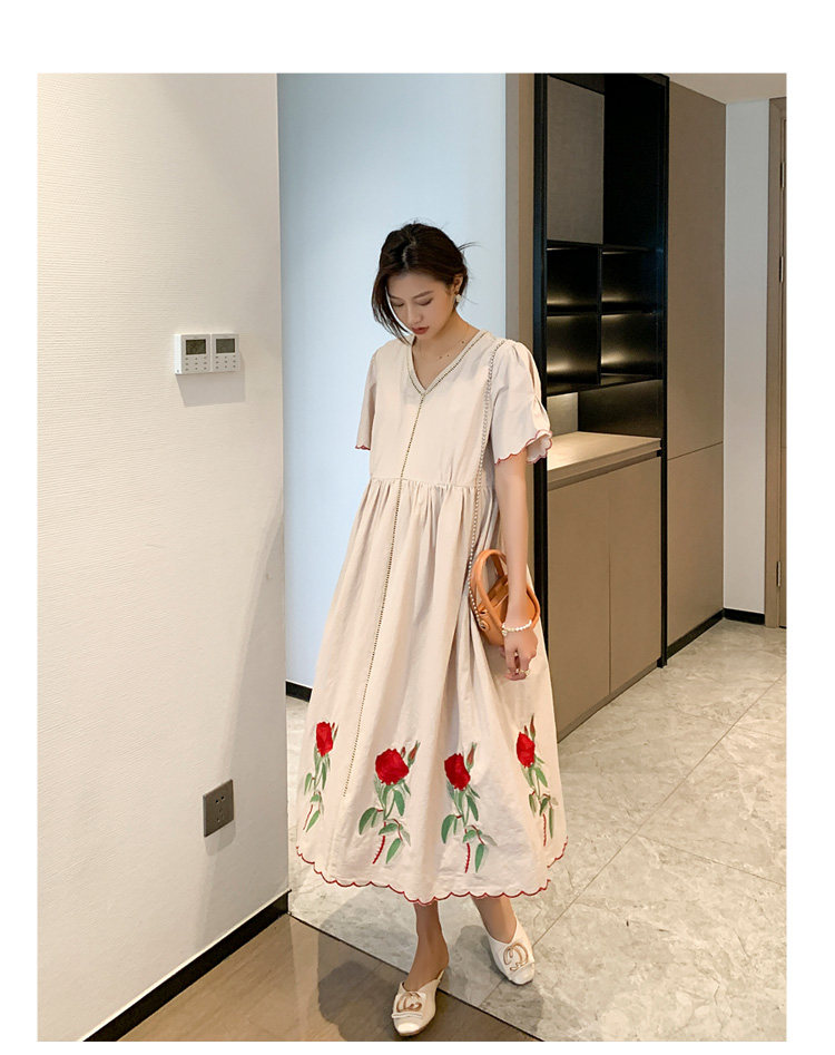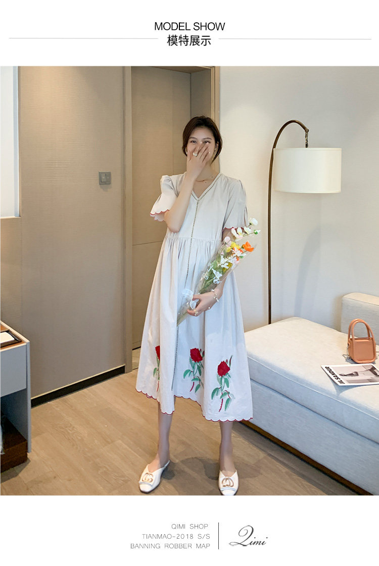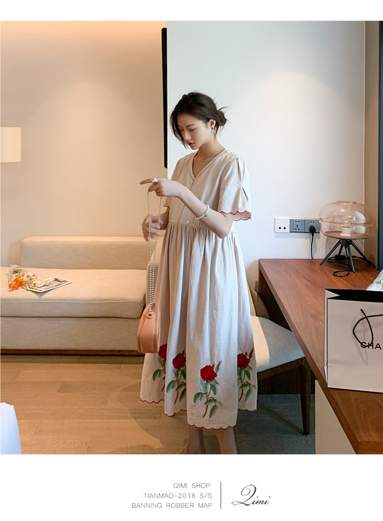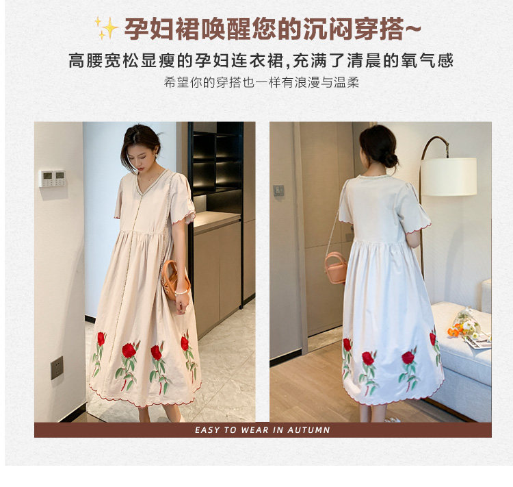 实拍现货 孕妇棉麻长款连衣裙 刺绣裙子