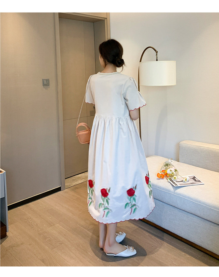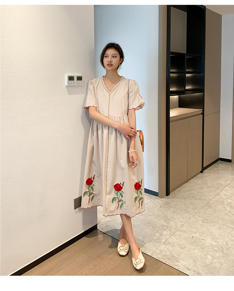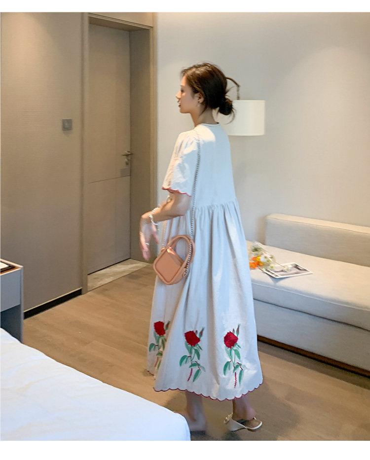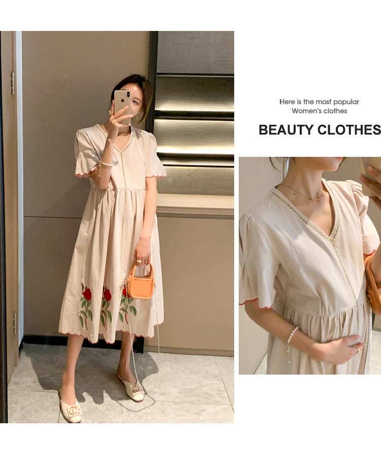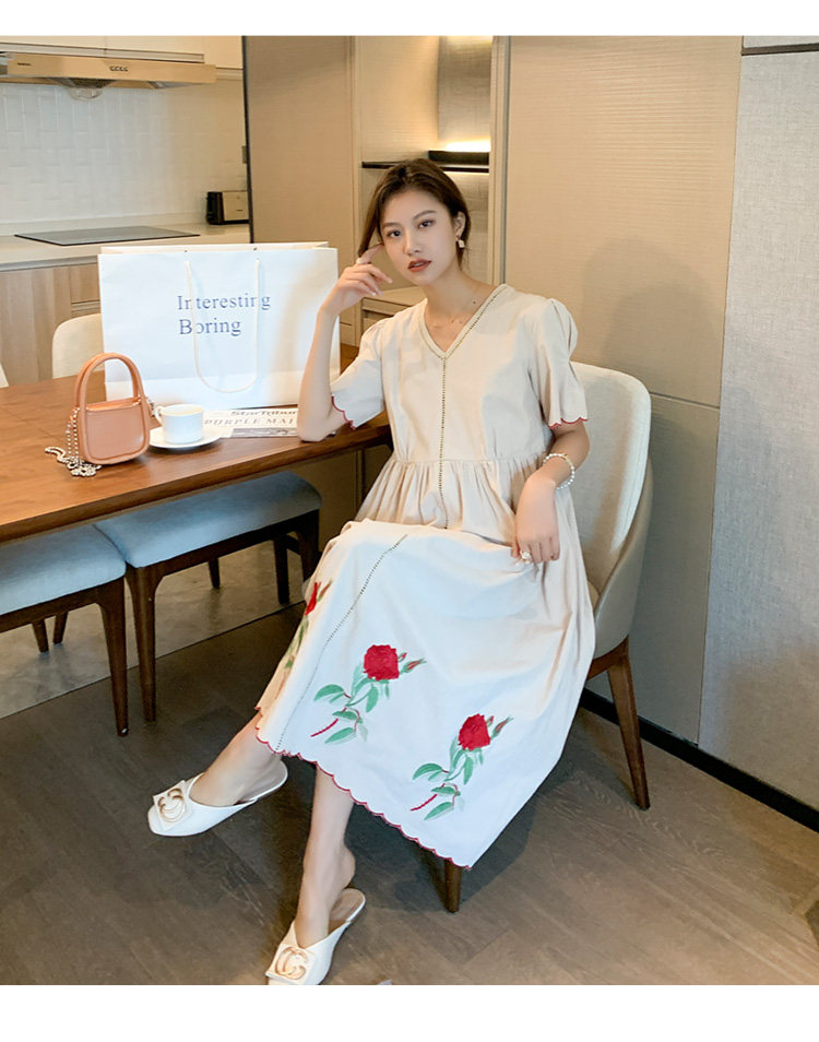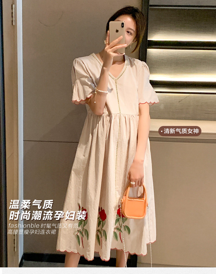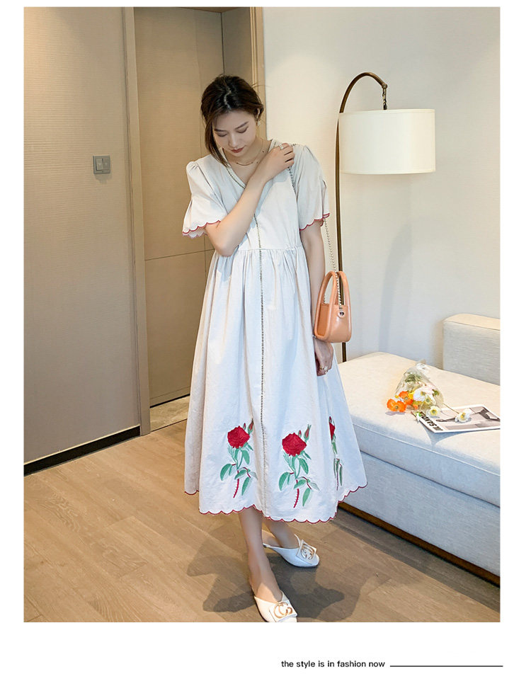 实拍现货 孕妇棉麻长款连衣裙 刺绣裙子
