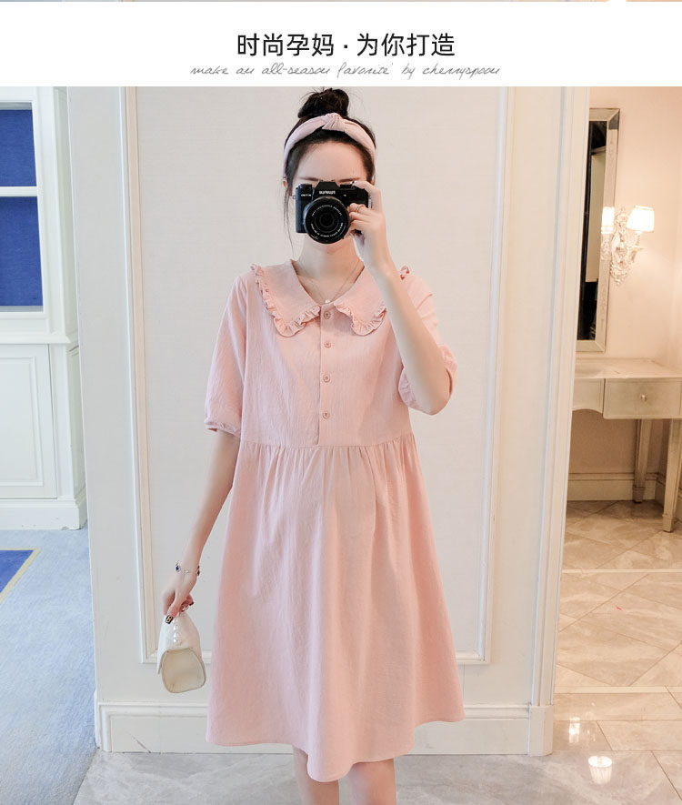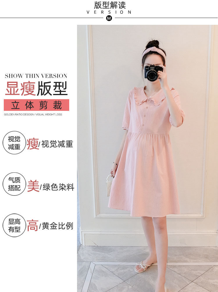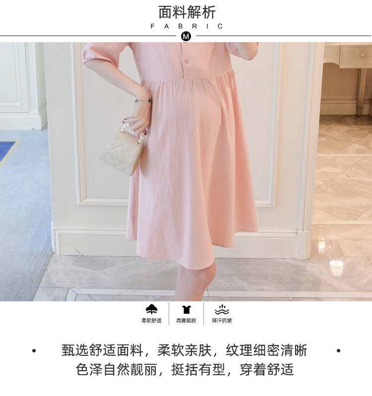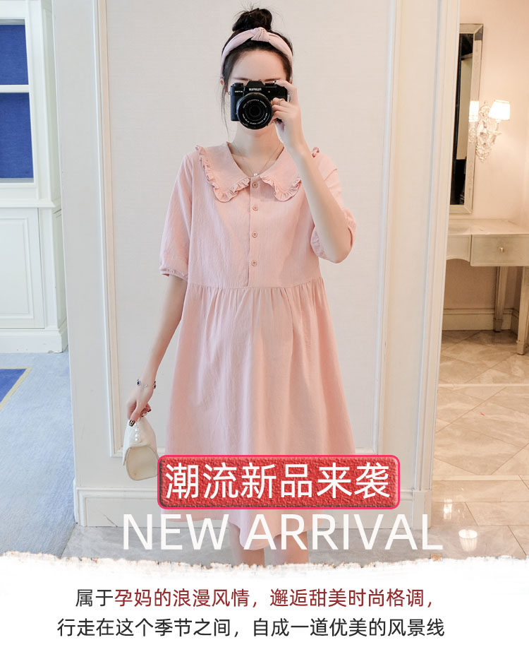 实拍孕妇连衣裙 韩版孕妇装 棉麻孕妇裙 娃娃领 翻领 孕妇裙