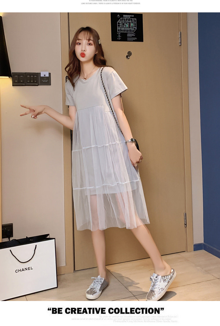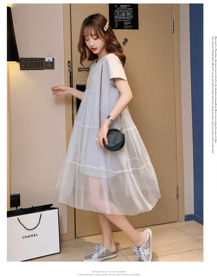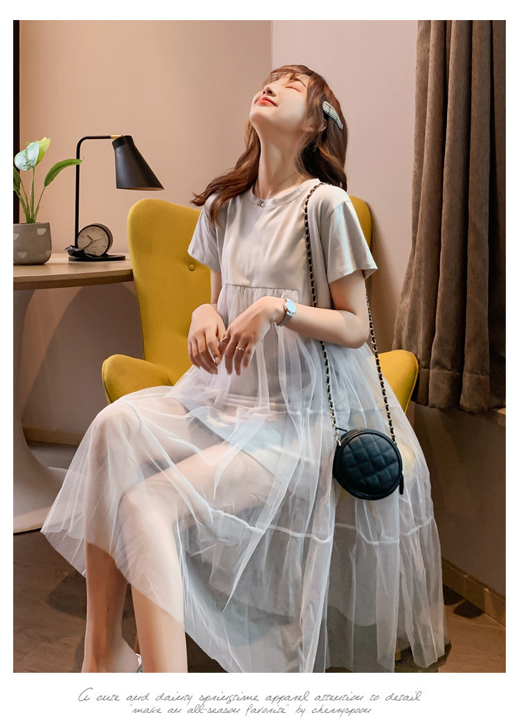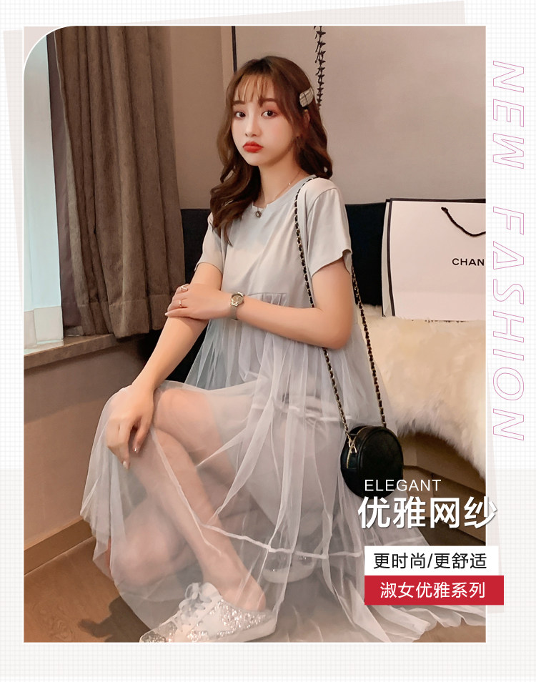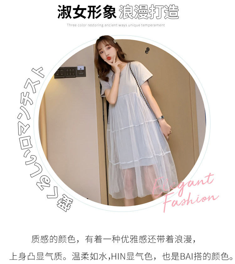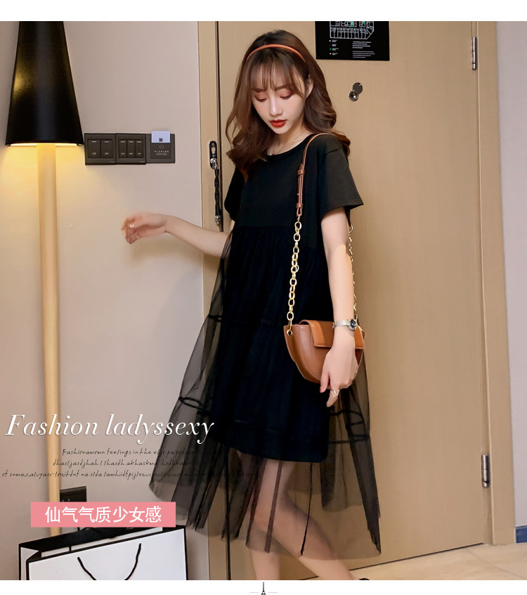 实拍现货纯棉时尚孕妇网纱拼接连衣裙气质网红仙仙大码裙子