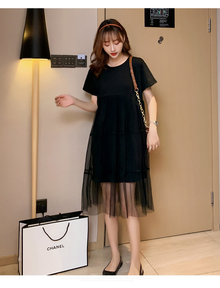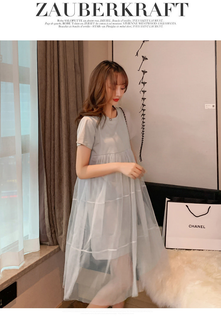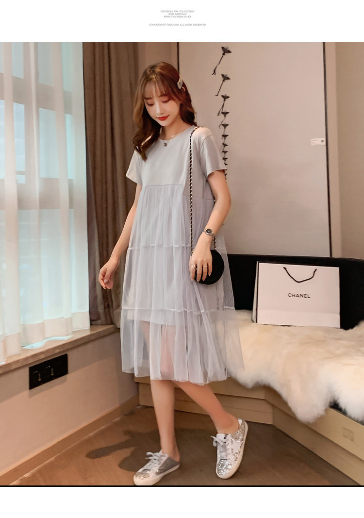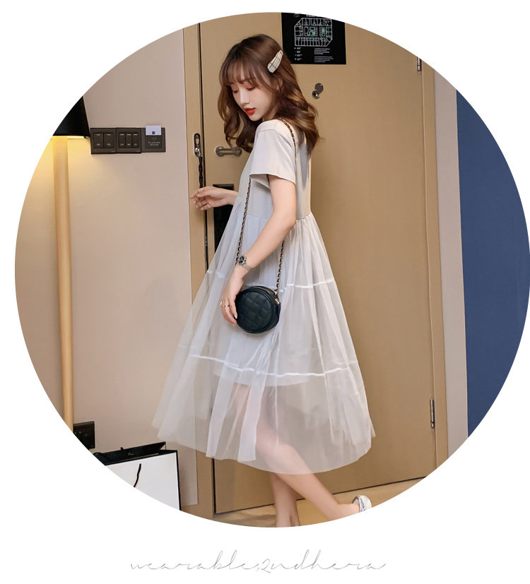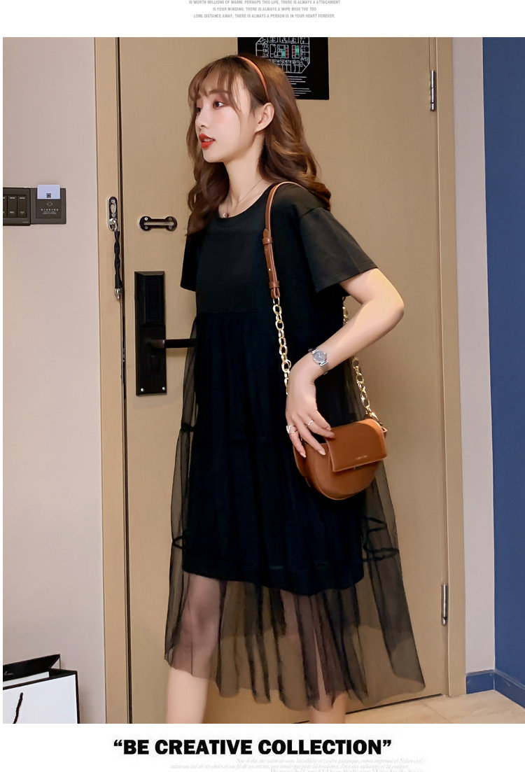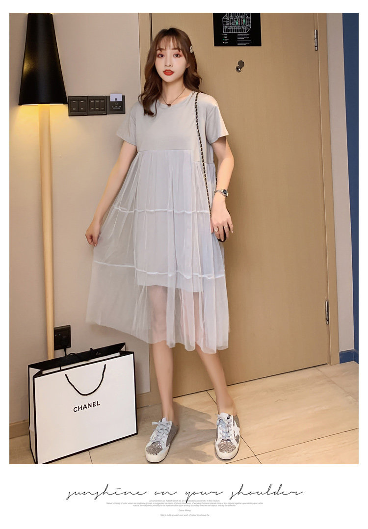 实拍现货纯棉时尚孕妇网纱拼接连衣裙气质网红仙仙大码裙子