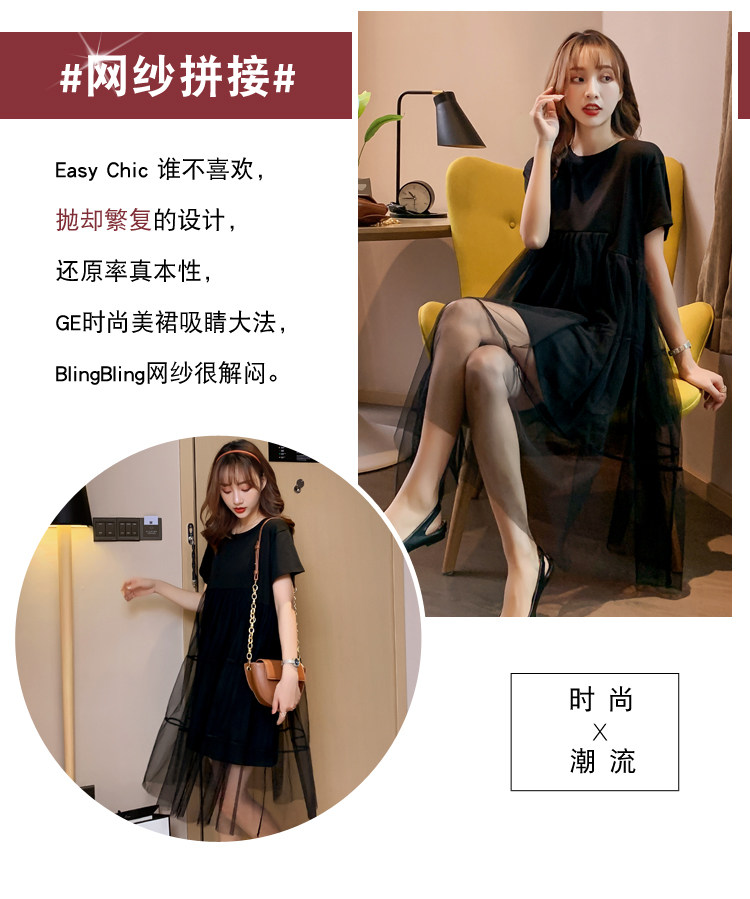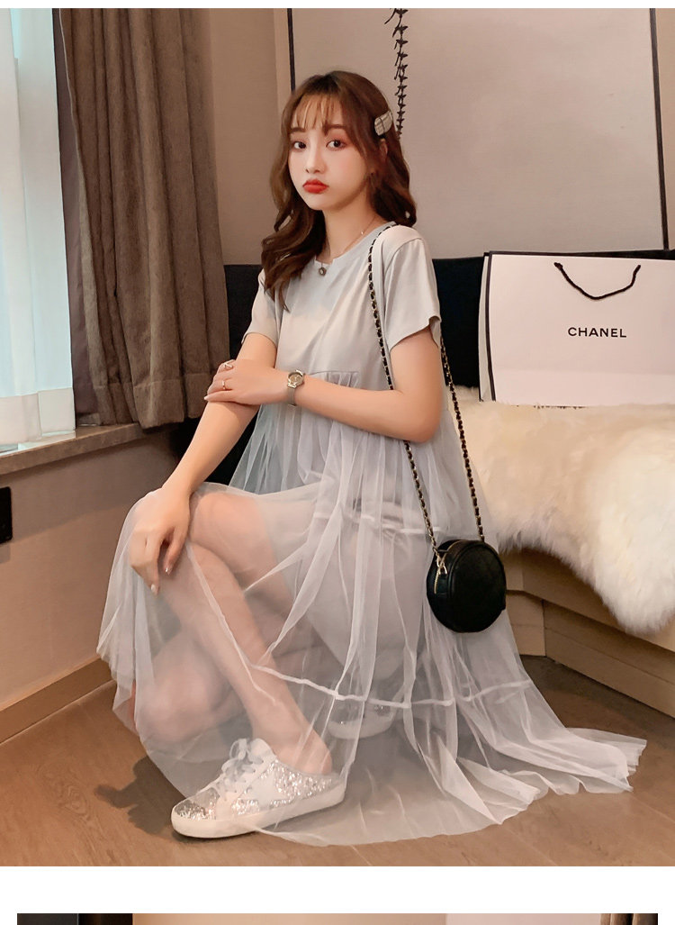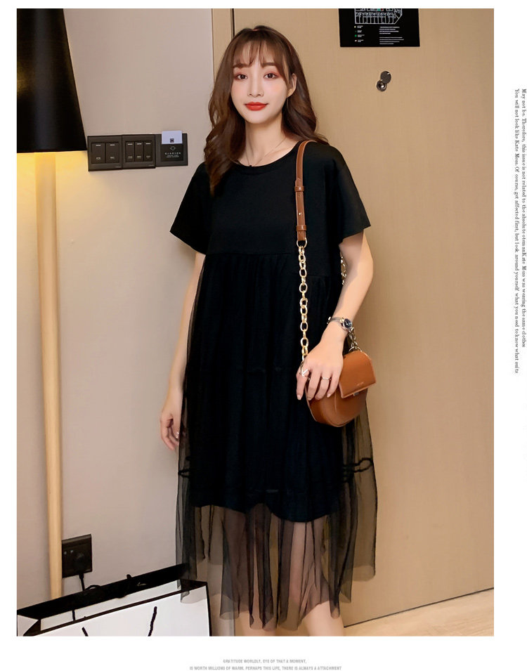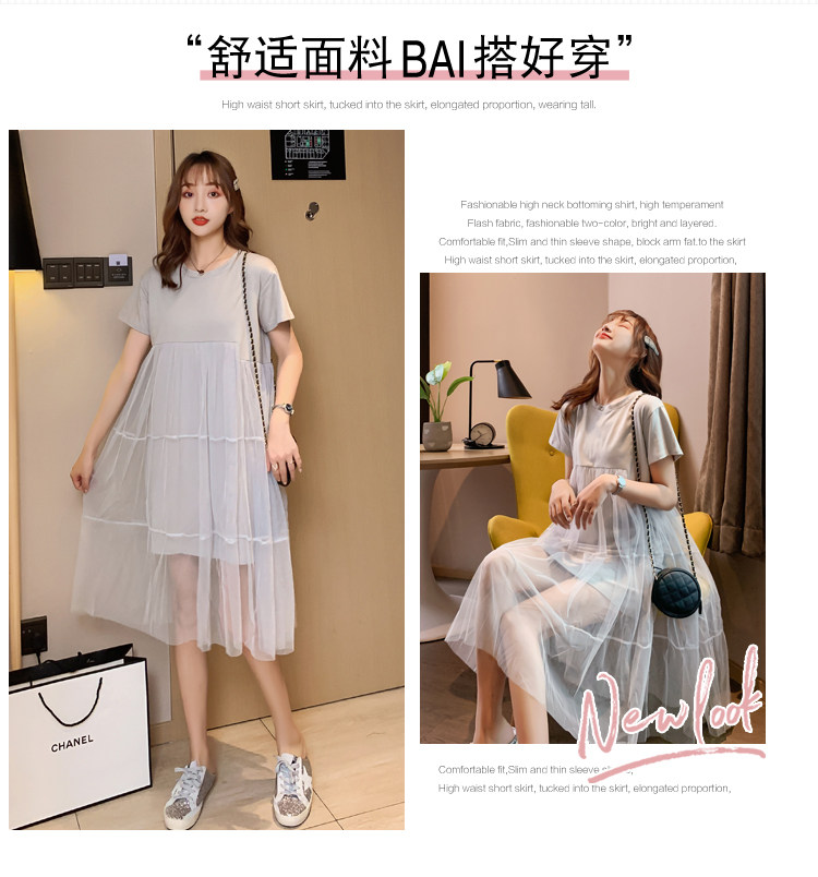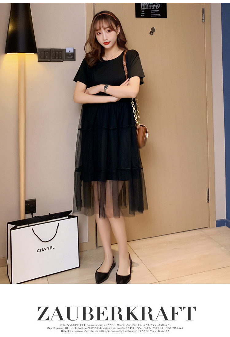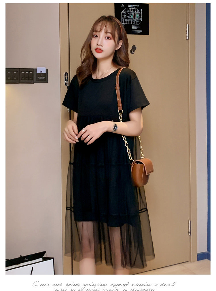 实拍现货纯棉时尚孕妇网纱拼接连衣裙气质网红仙仙大码裙子