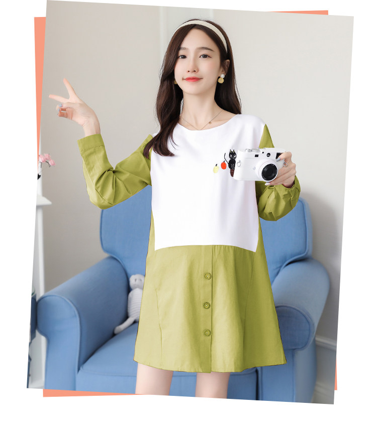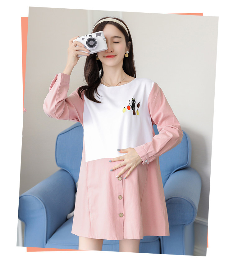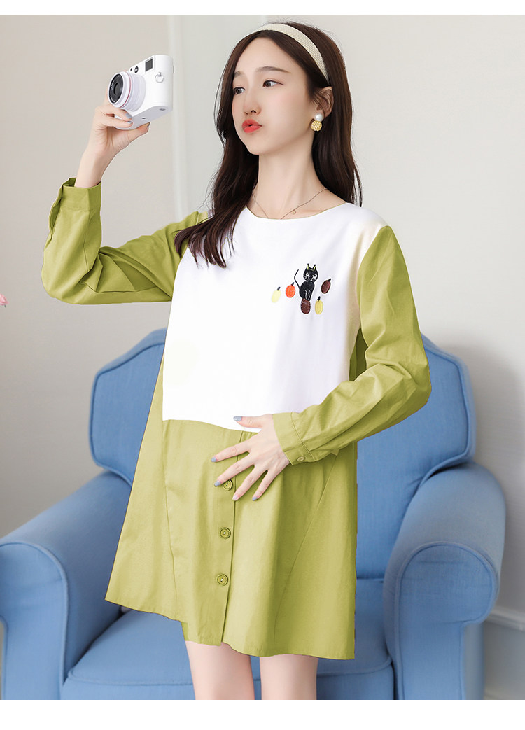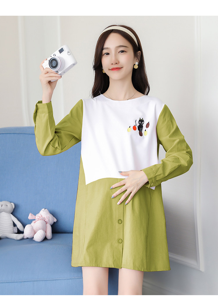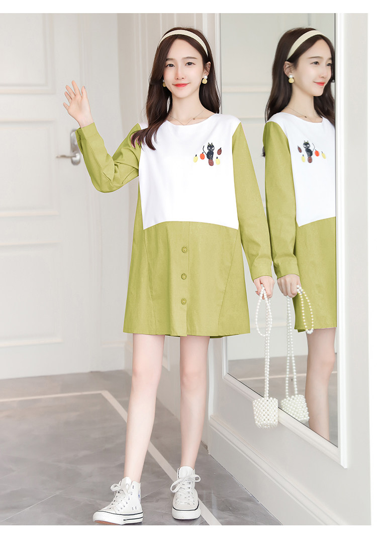 实拍孕妇装2021秋季新款韩版卡通绣花孕妇连衣裙圆领长袖孕妇上衣