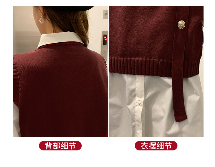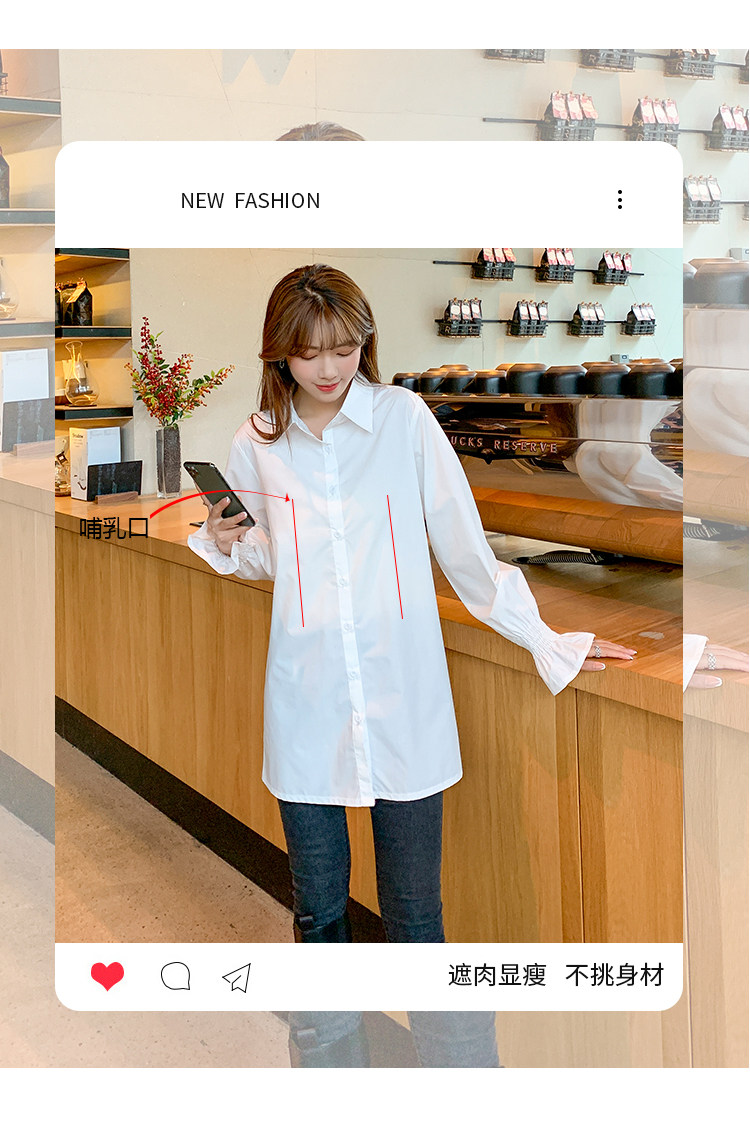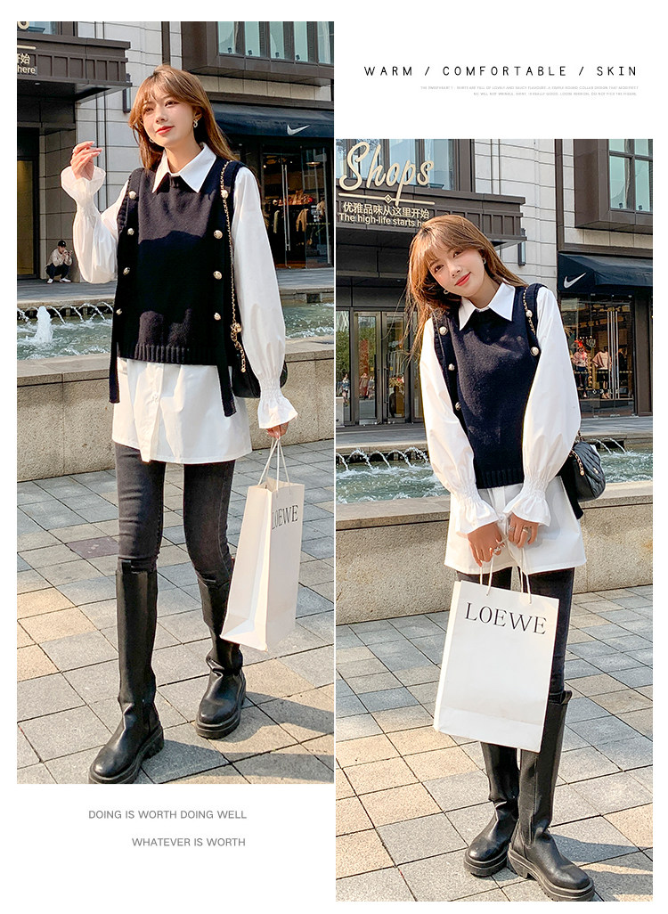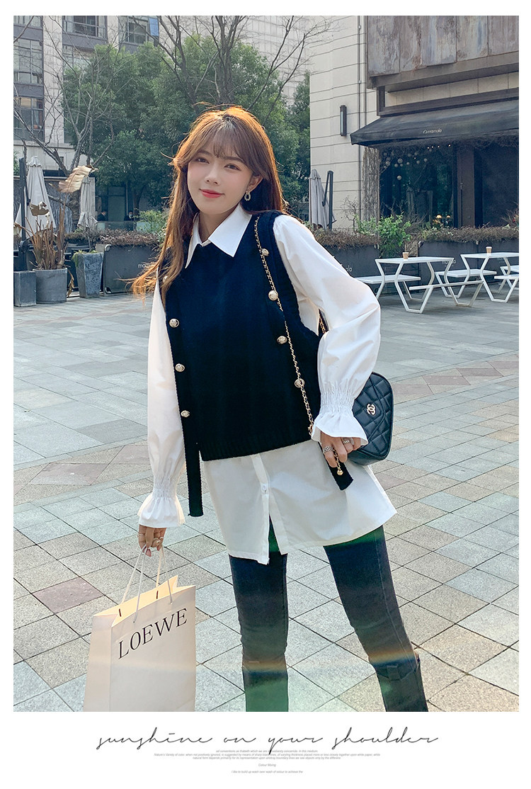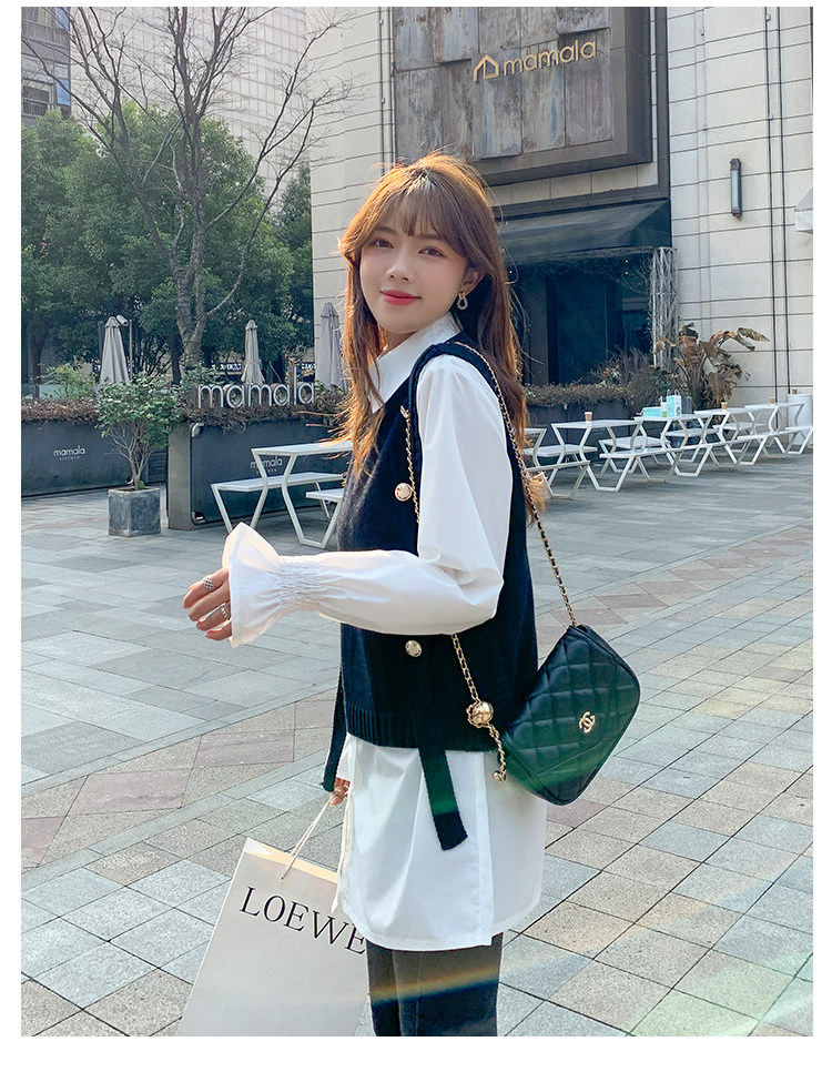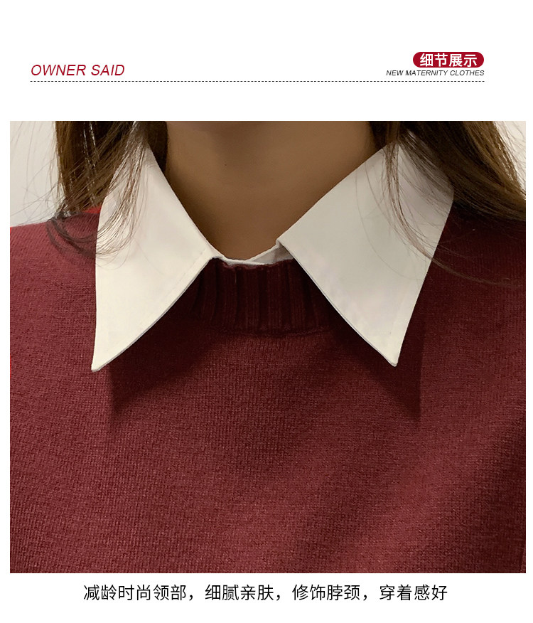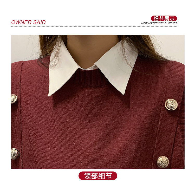 实拍2021早春欧洲站设计感孕妇套装喇叭袖翻领衬衫针织马甲哺乳装