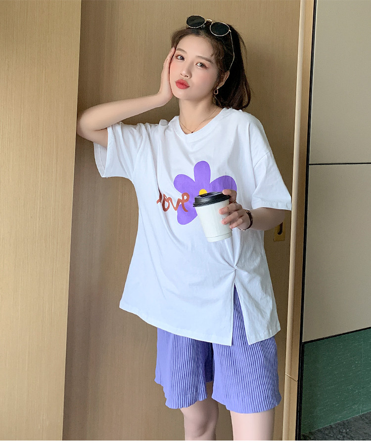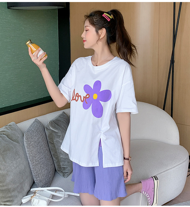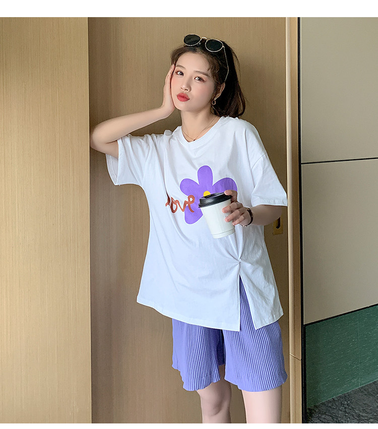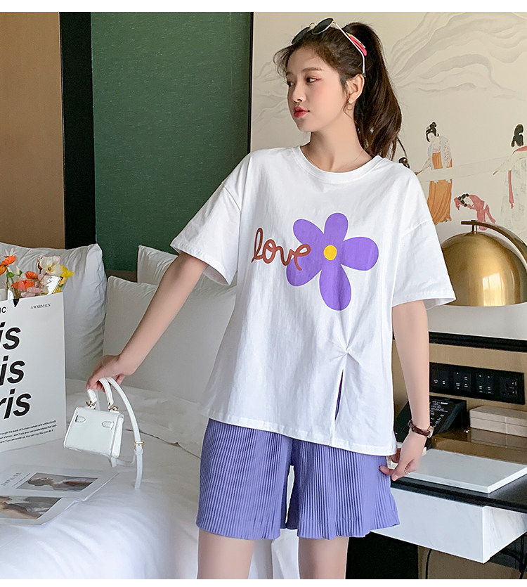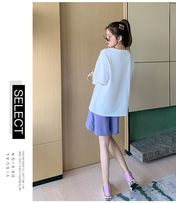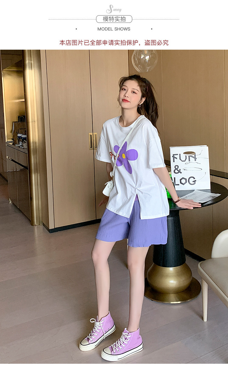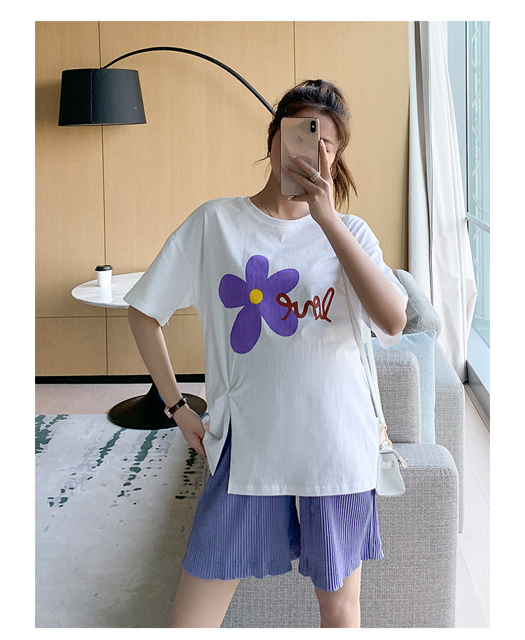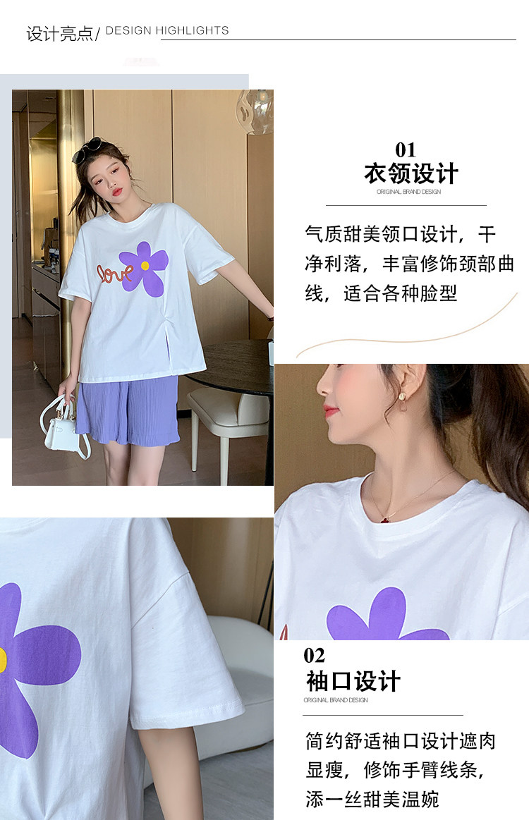 实拍现货 有小视频 孕妇卡通T恤麻棉上衣套装+裤子两件套系列