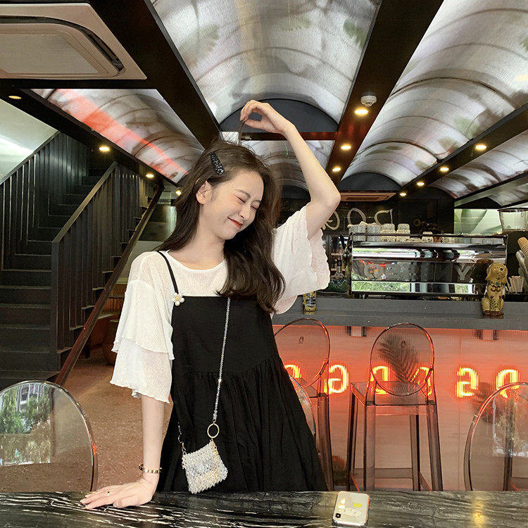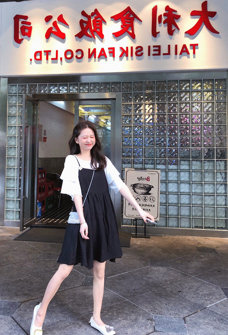 图片已处理新款夏季孕妇装洋气小个子吊带连衣裙子两件套装女