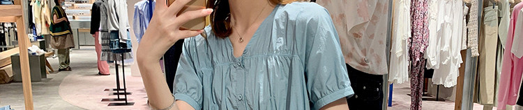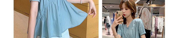 大码女装新款简约气质显瘦v领单排扣小衫