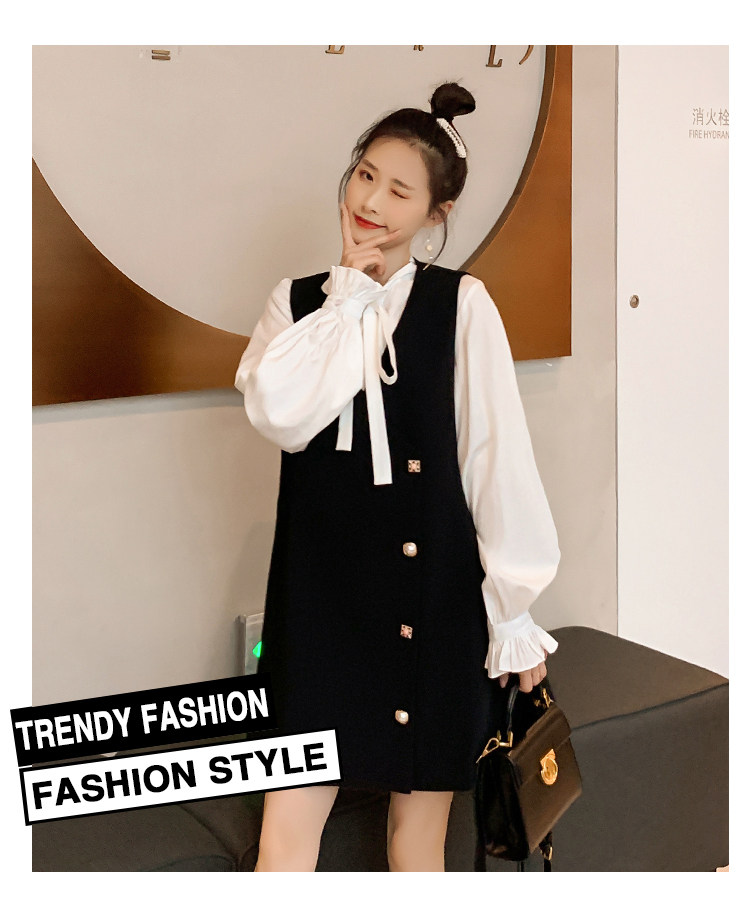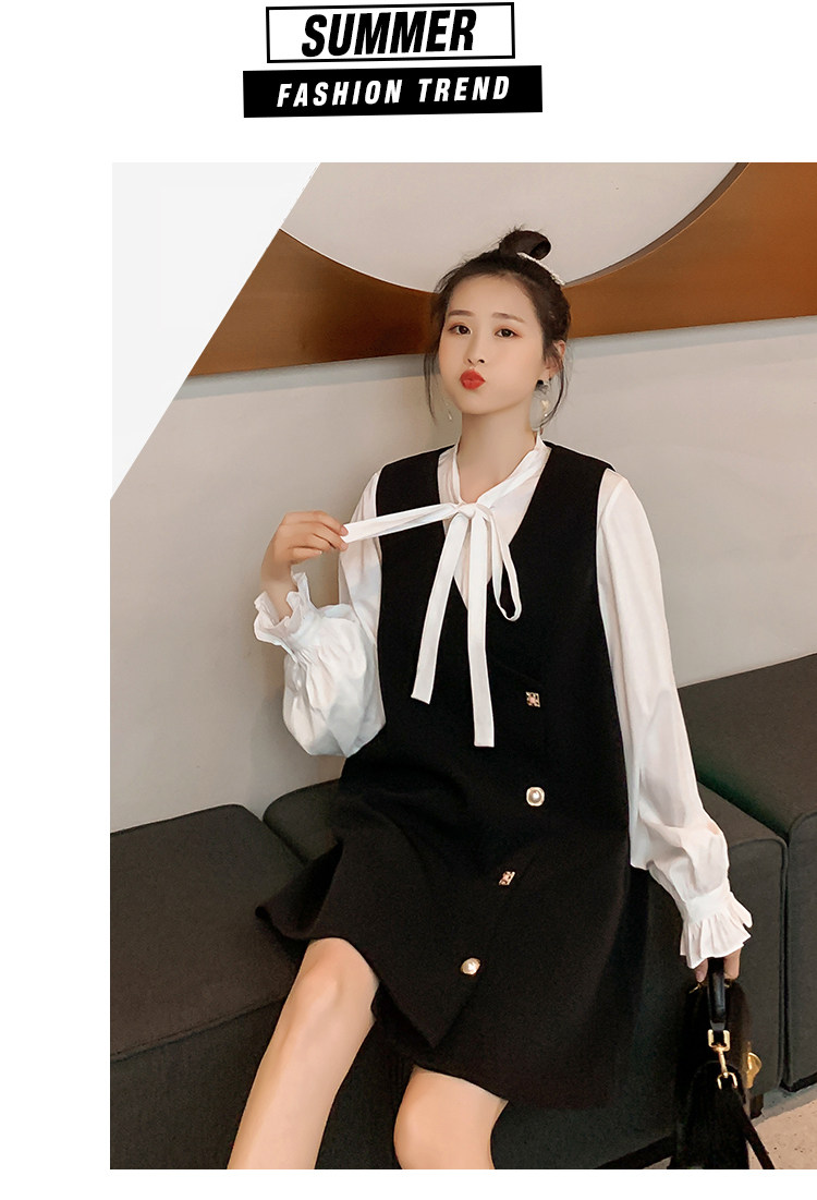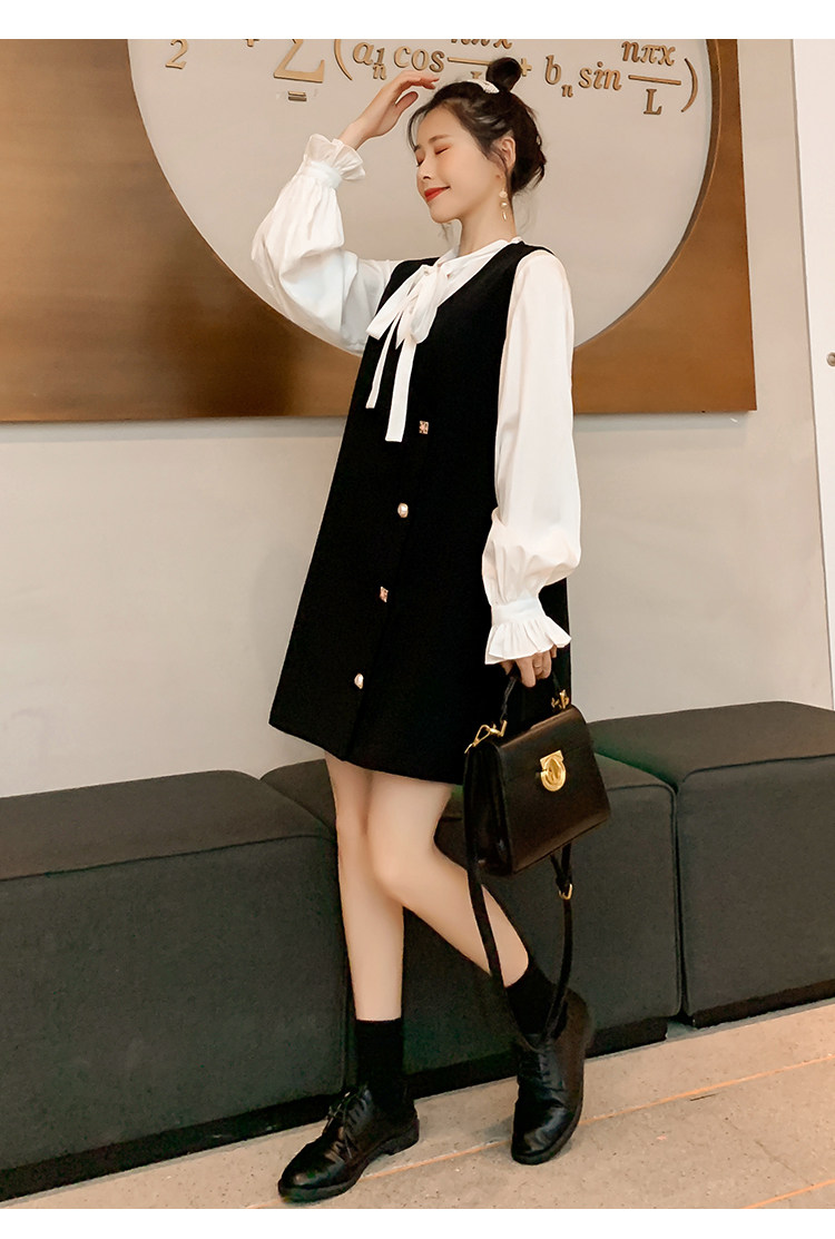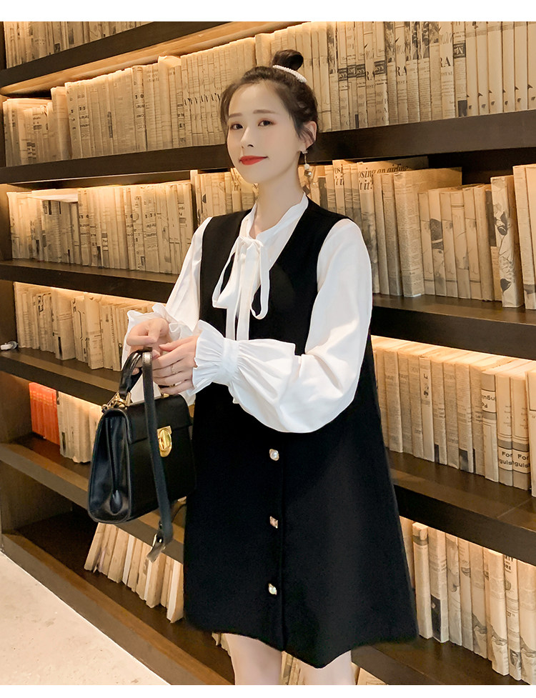 实拍大量现货 孕妇春秋新款两件套衬衣加背心裙套装