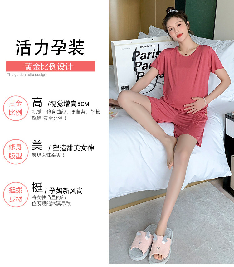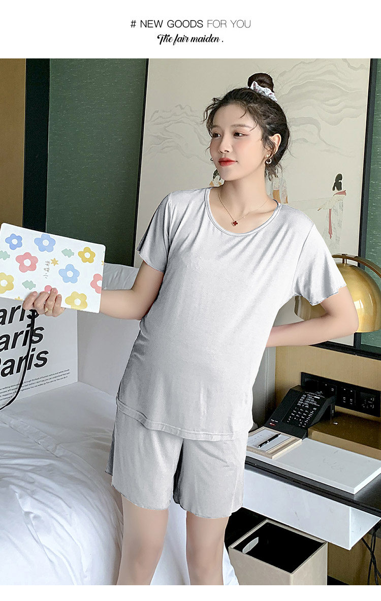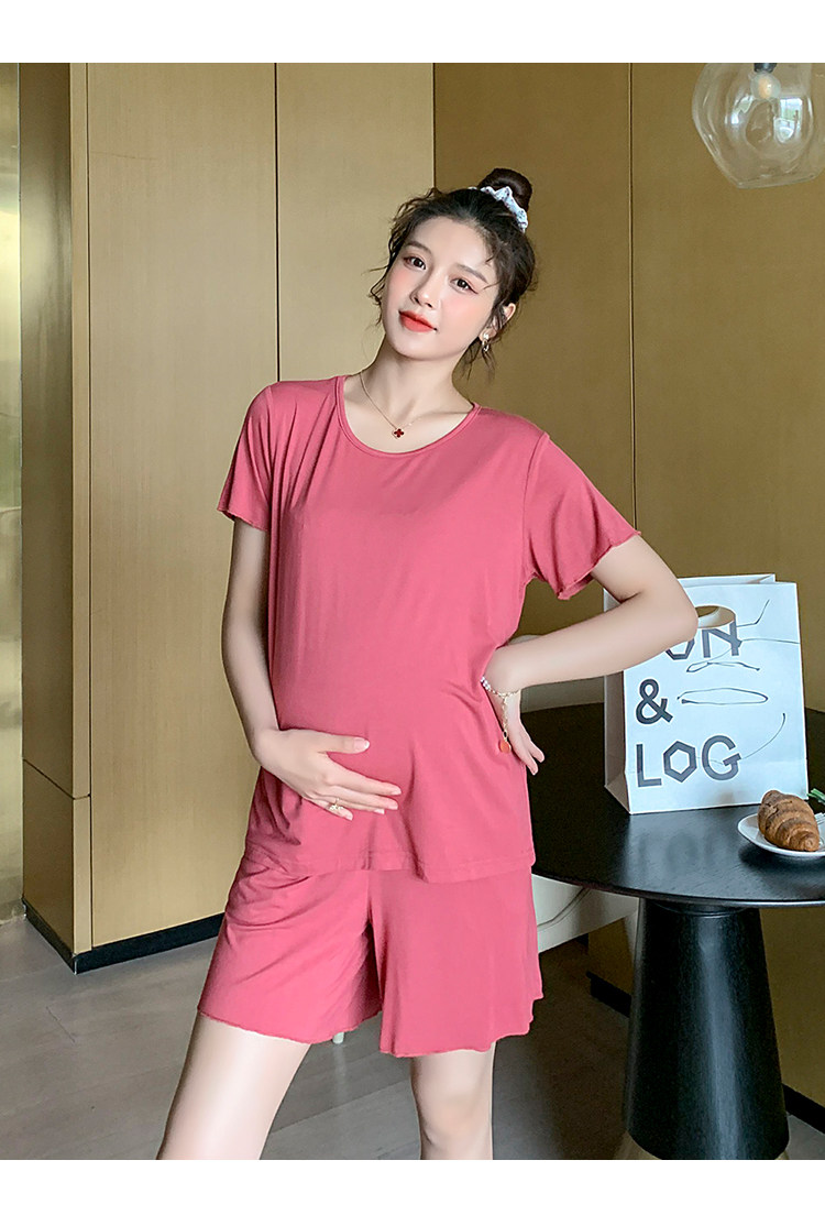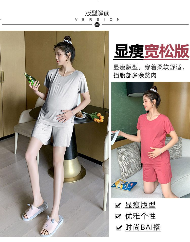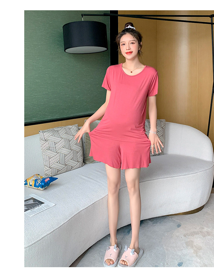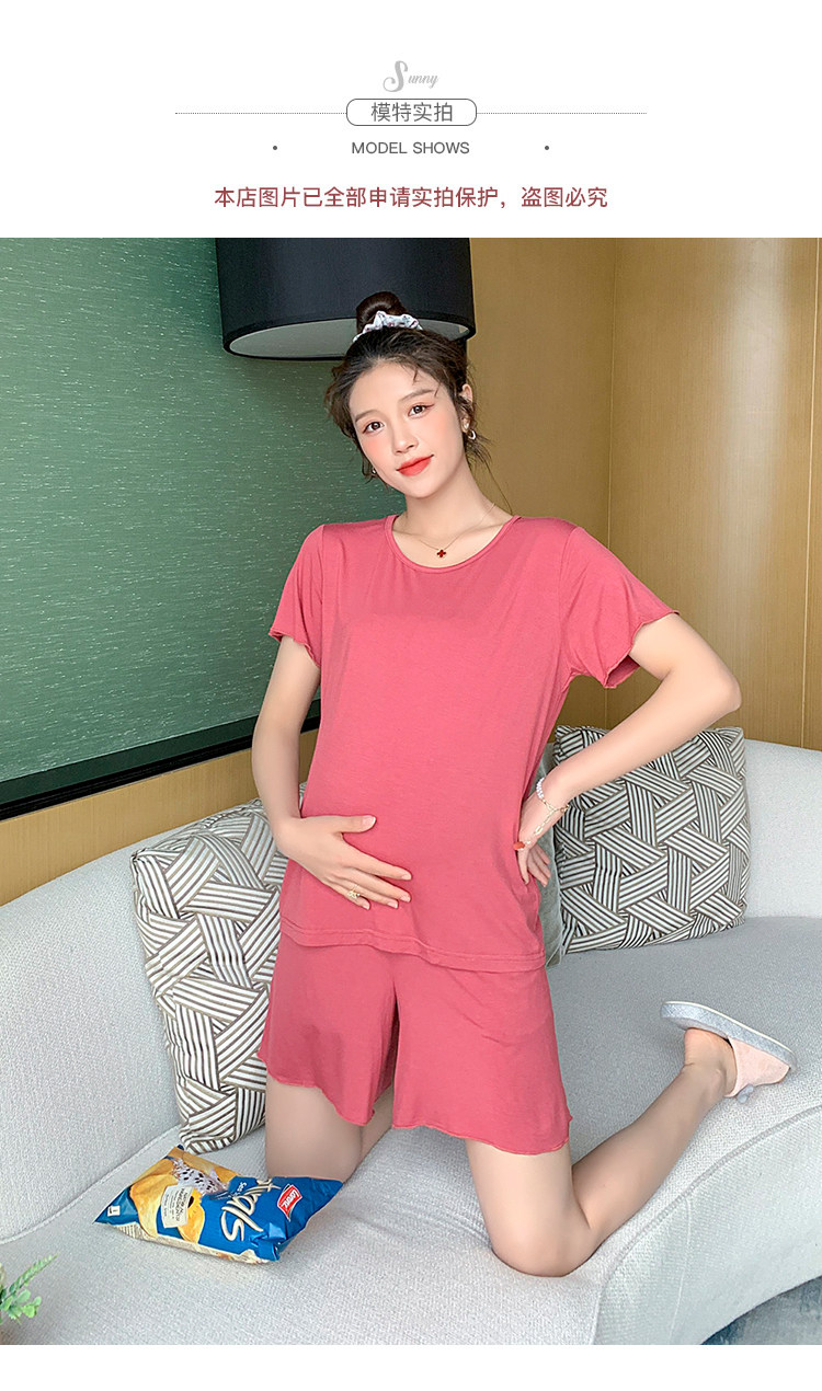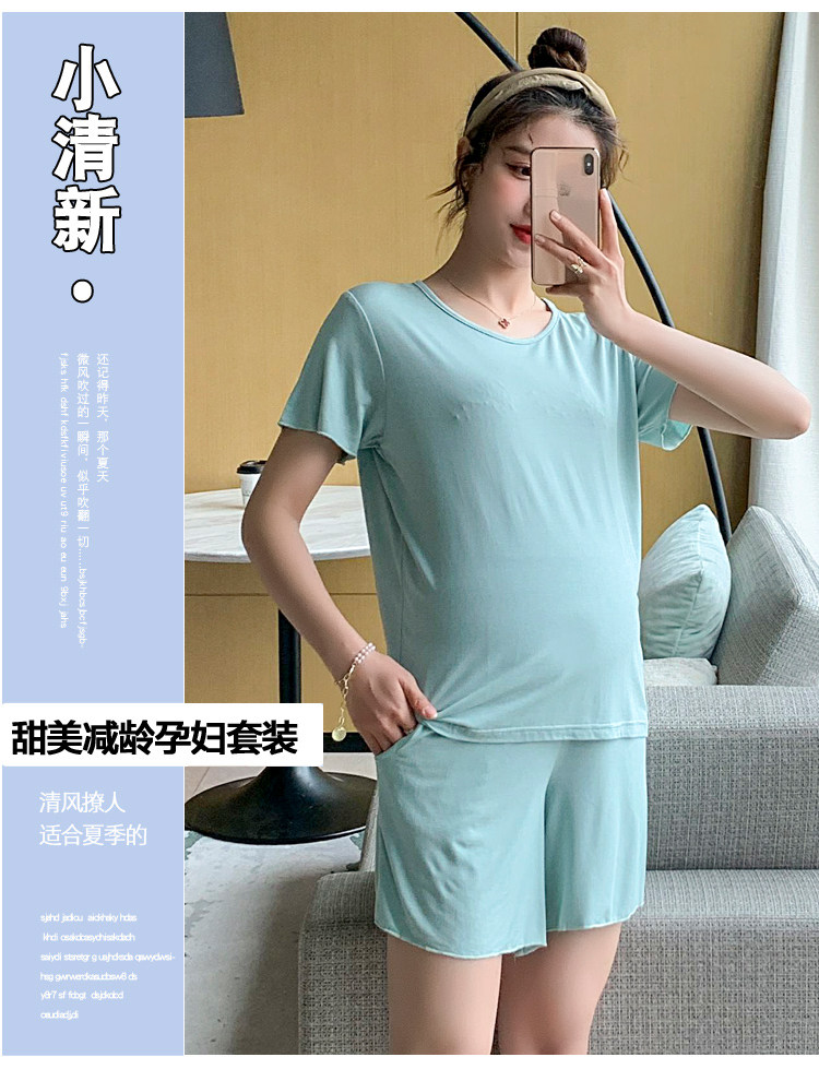实拍 孕妇夏装套装莫代尔短袖外出薄款木耳边家居服两件套睡衣