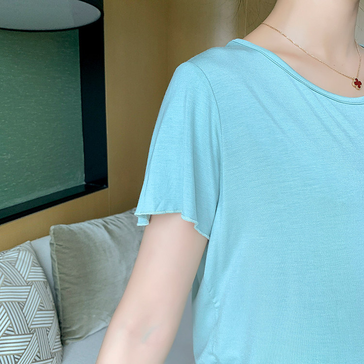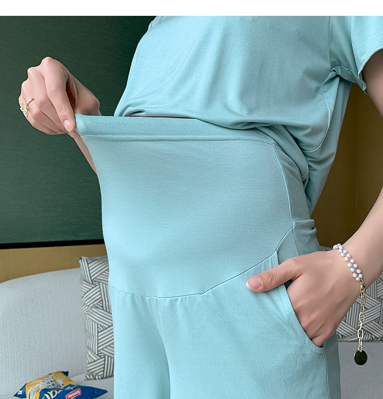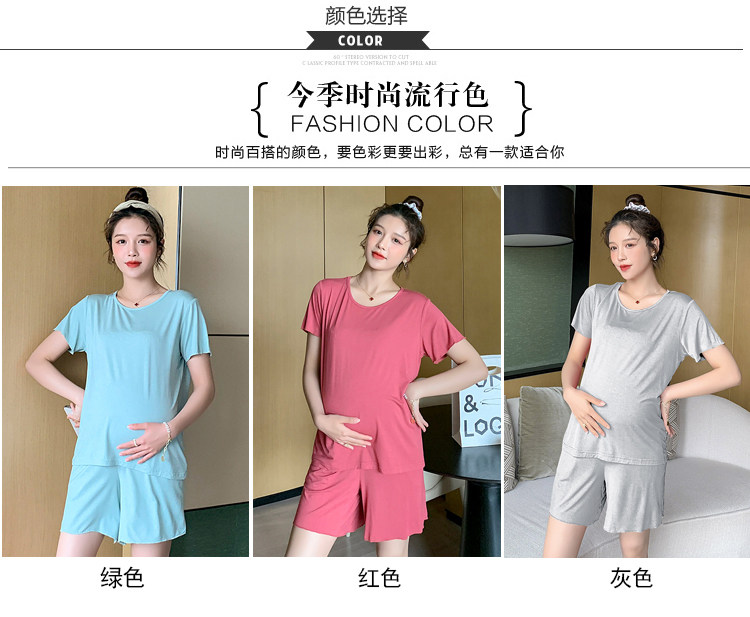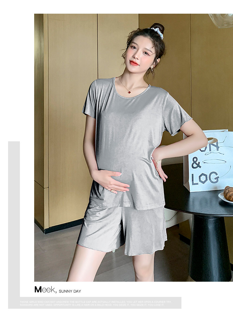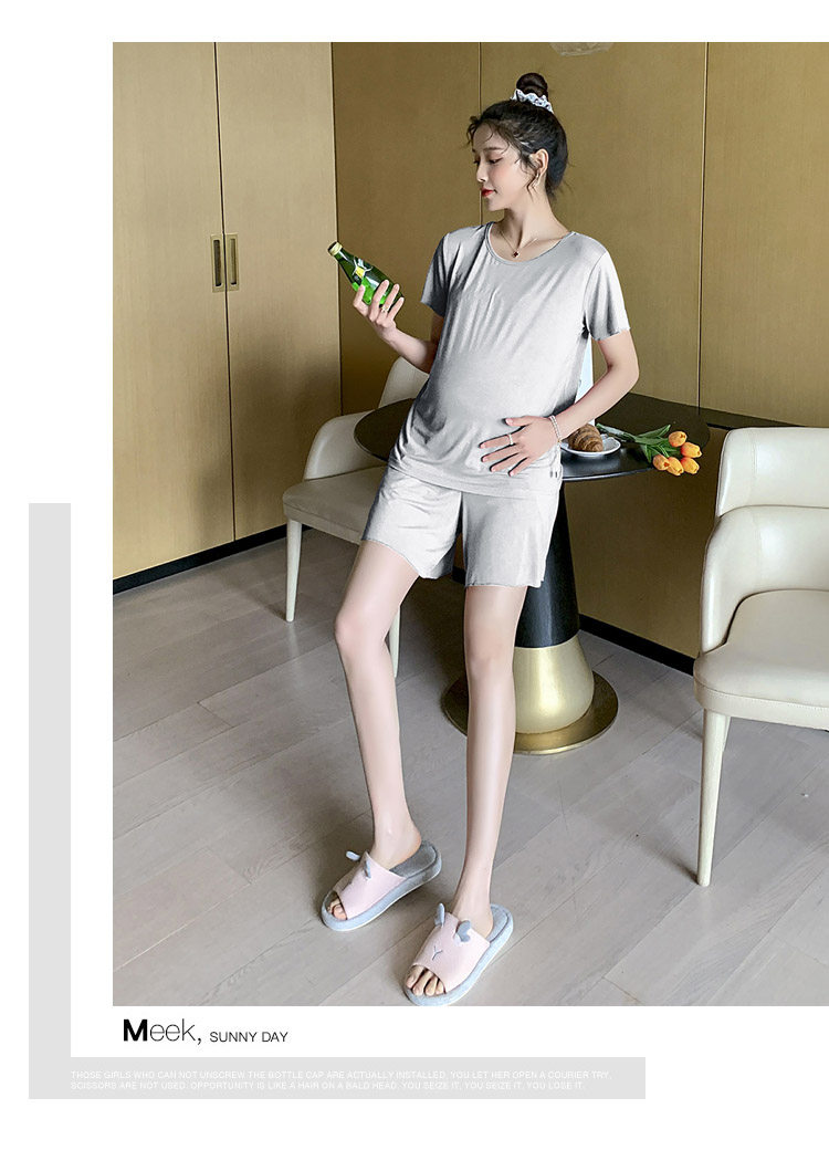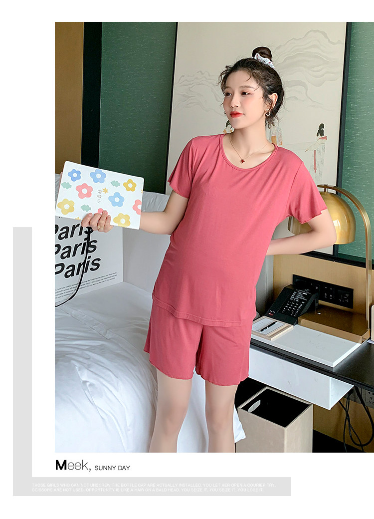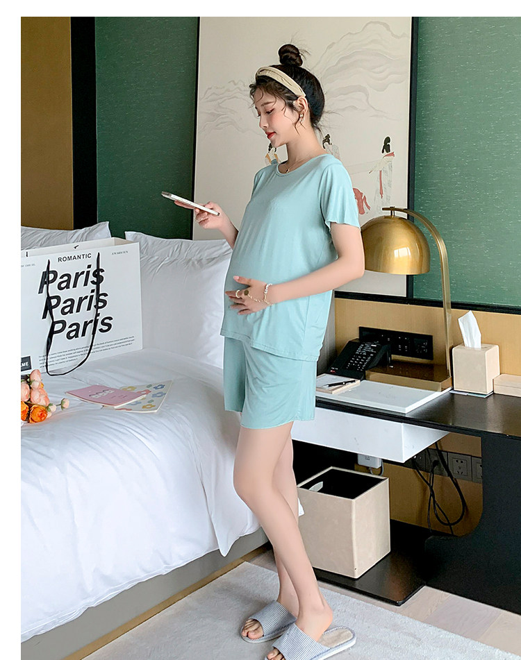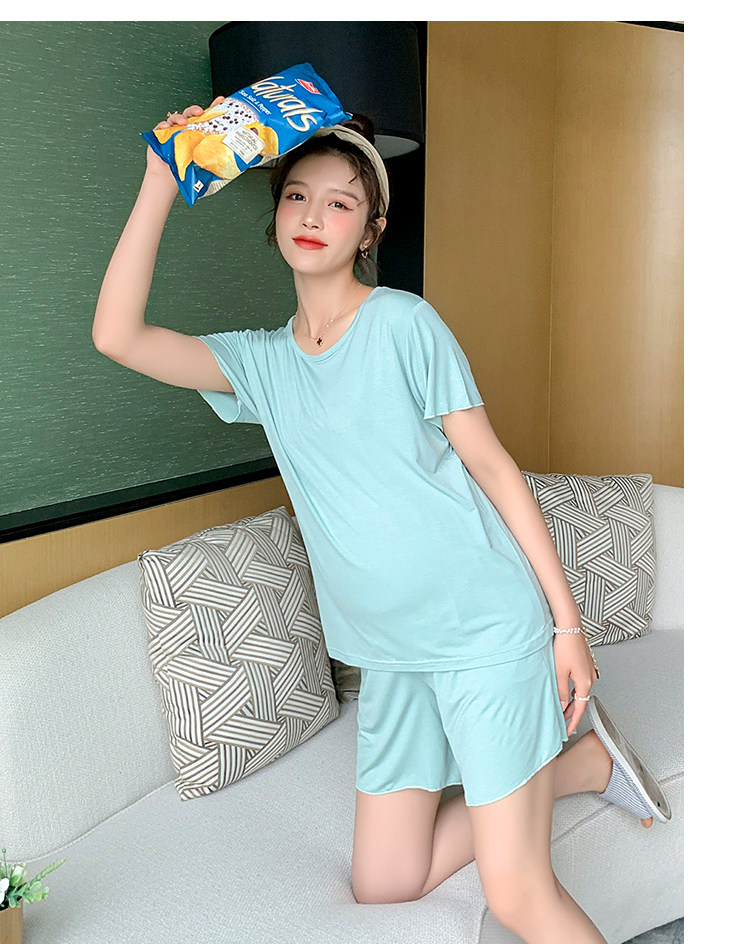 实拍 孕妇夏装套装莫代尔短袖外出薄款木耳边家居服两件套睡衣