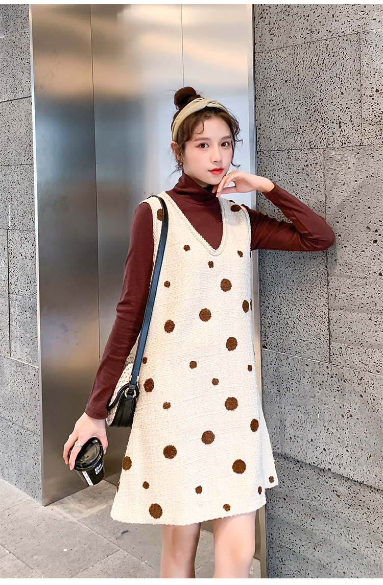 实拍孕妇背心连衣裙两件套加绒打底衫
