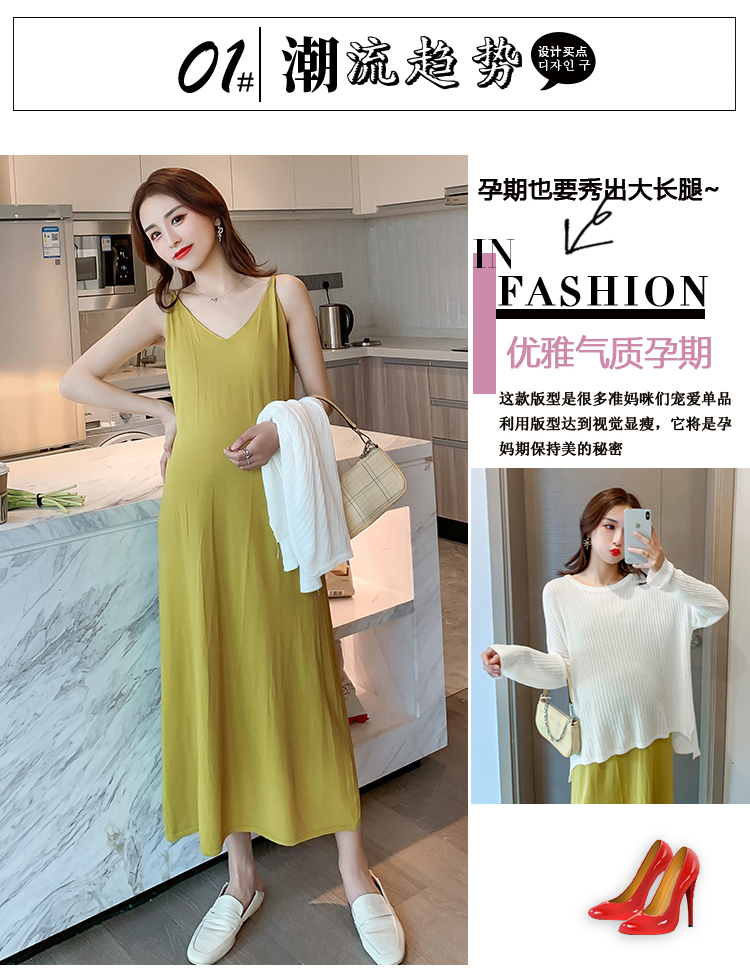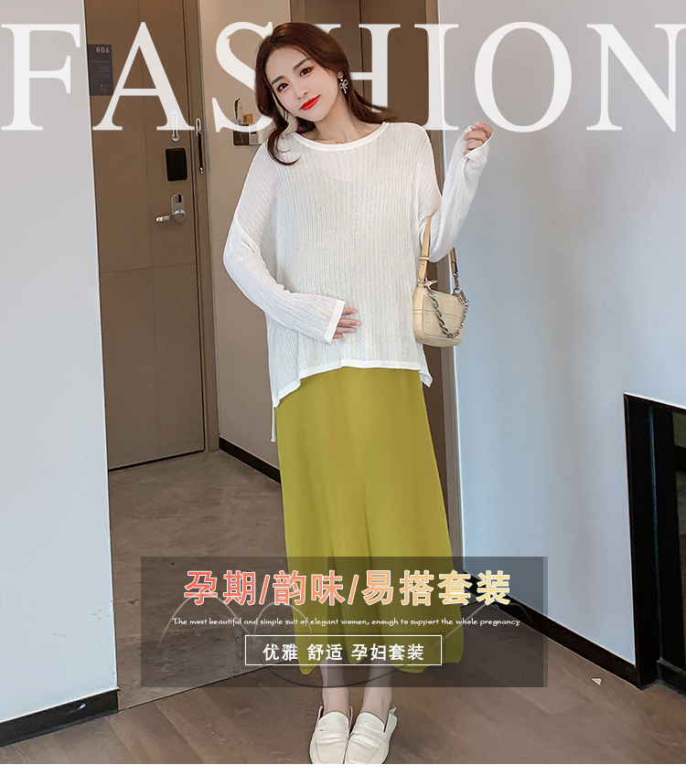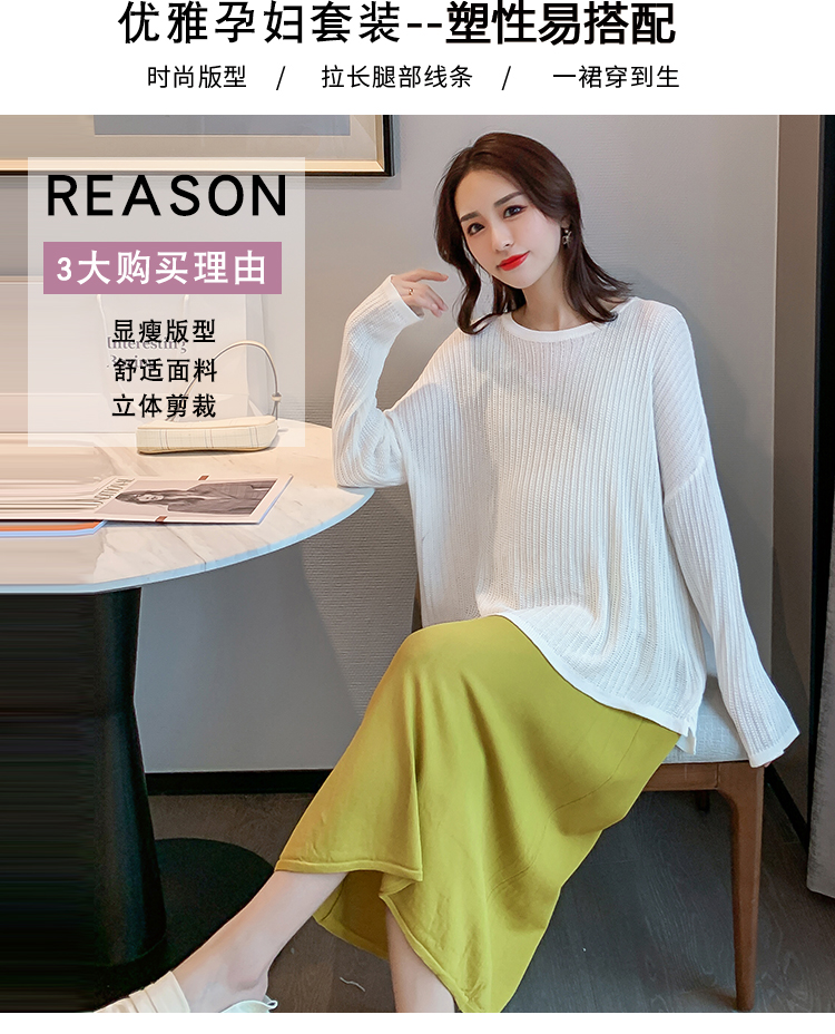 实拍1979#孕妇秋冬套装网红针织罩衫两件套洋气过膝吊带连衣裙潮