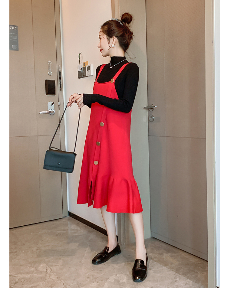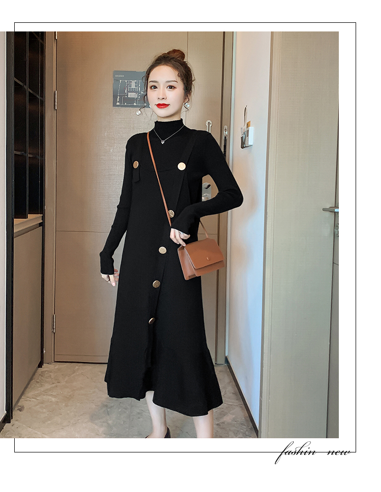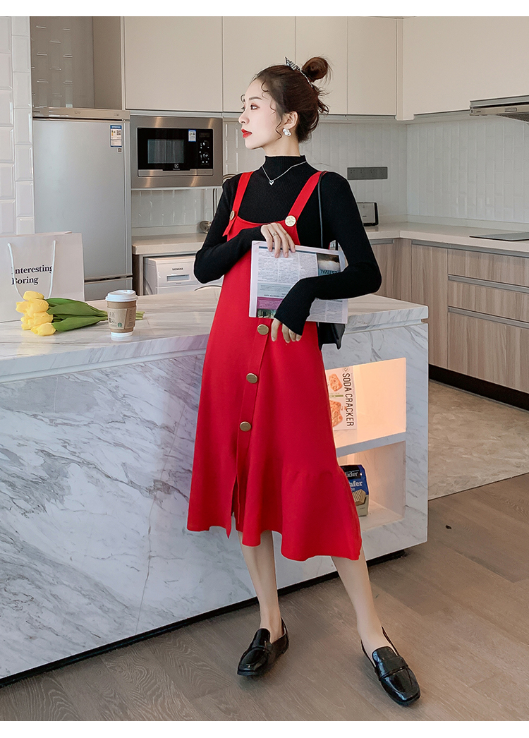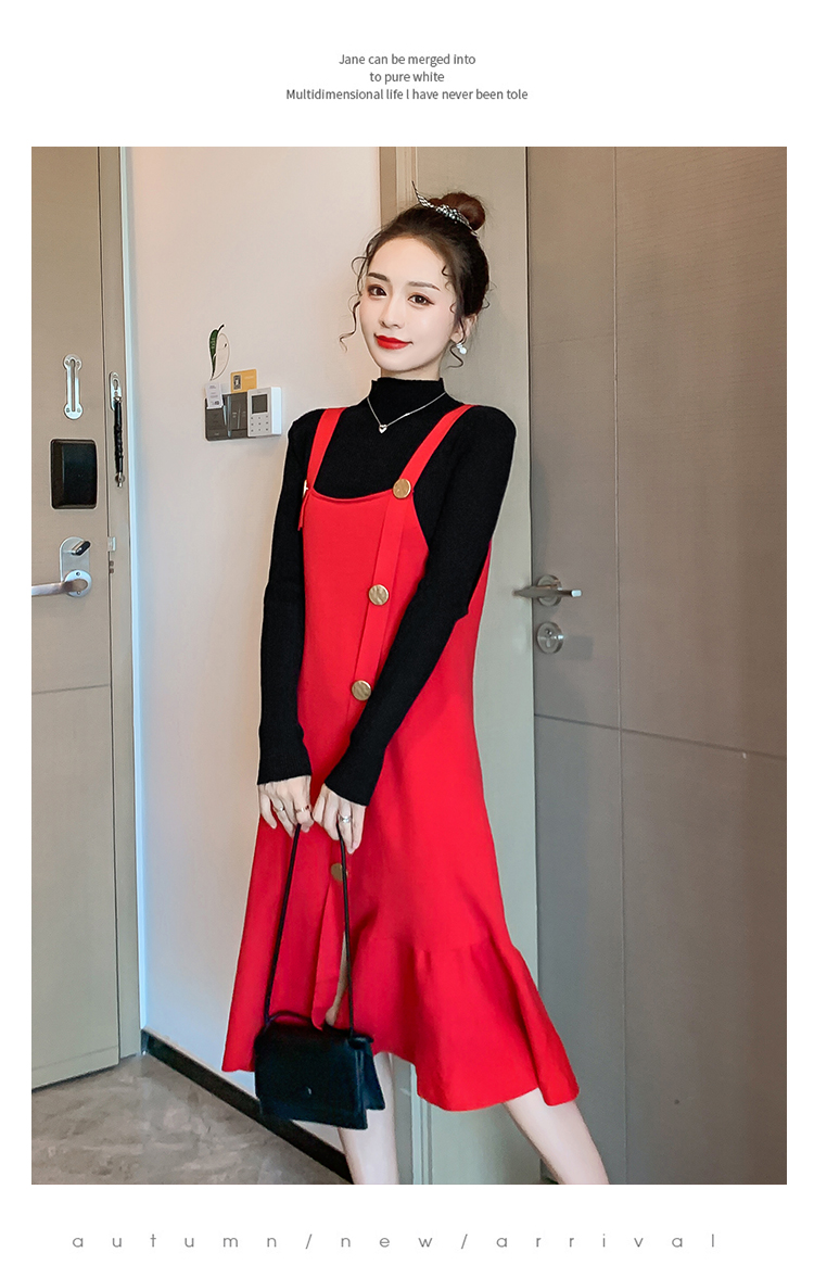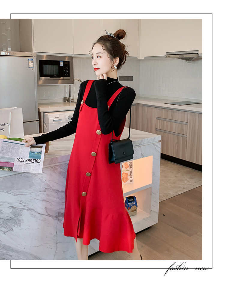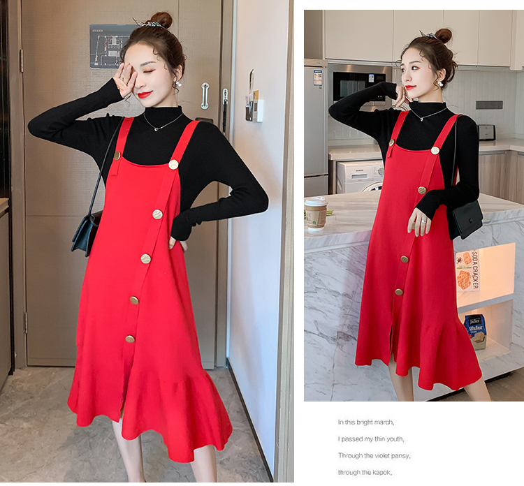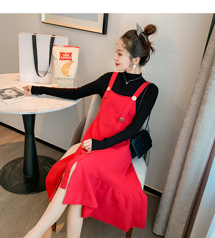 实拍6005#孕妇秋冬毛衣套装显瘦长袖上衣两件套针织背带连衣裙潮