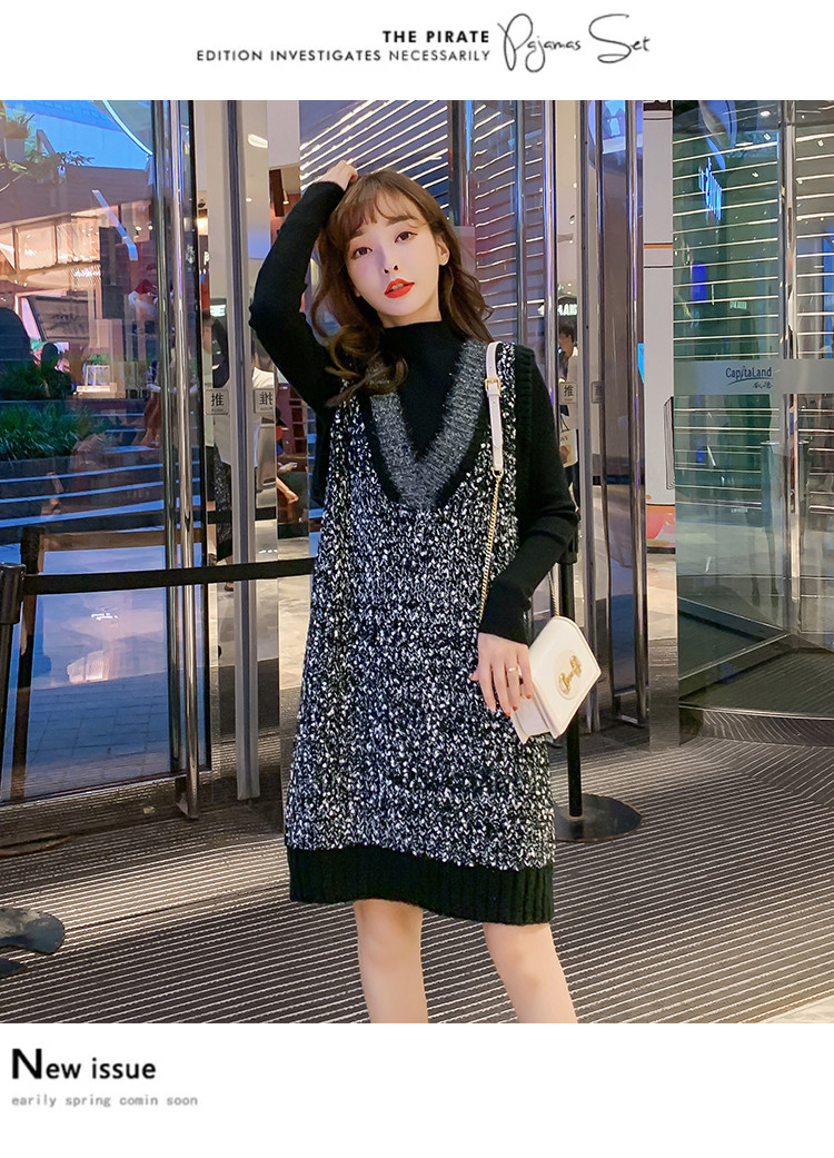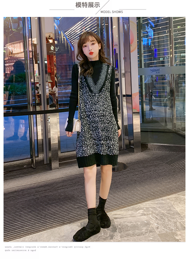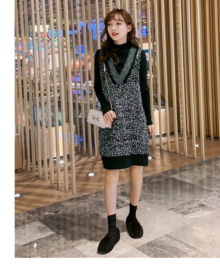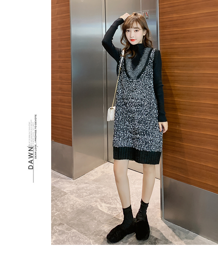 实拍1978#孕妇秋冬毛衣中长款背心马甲外套百搭针织上衣两件套装