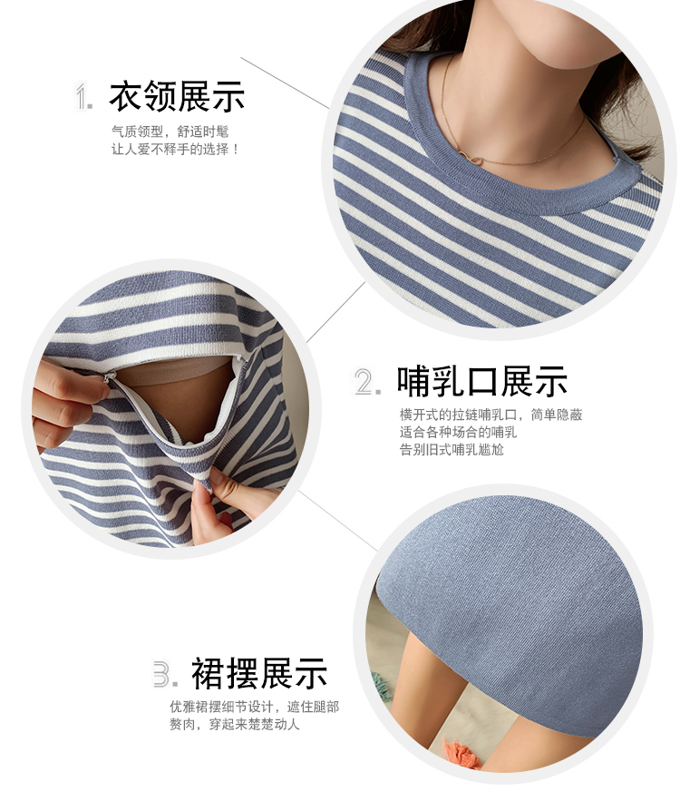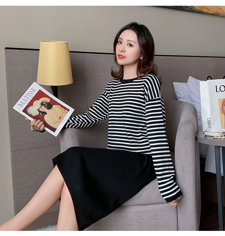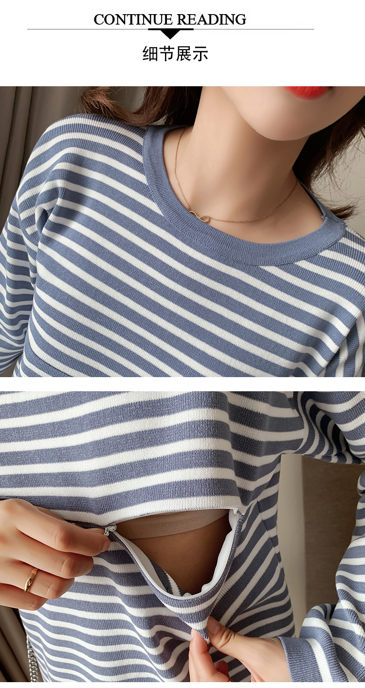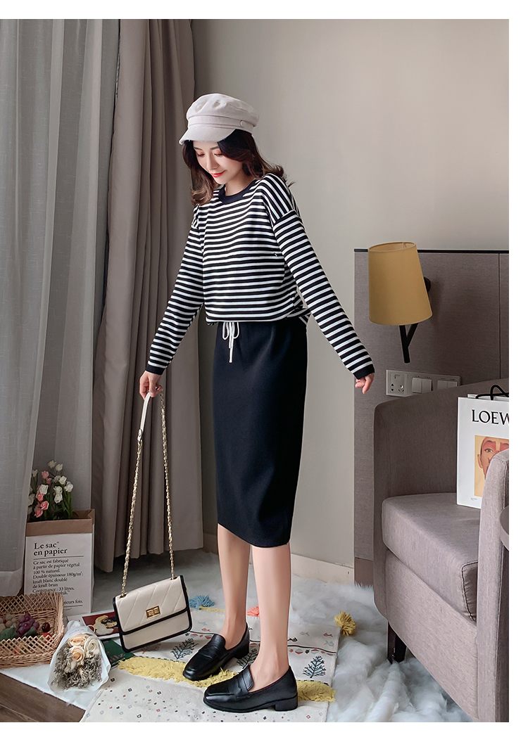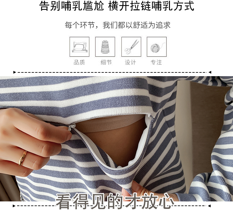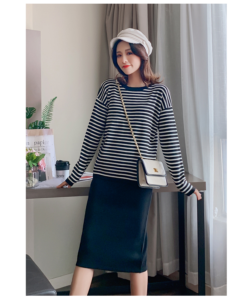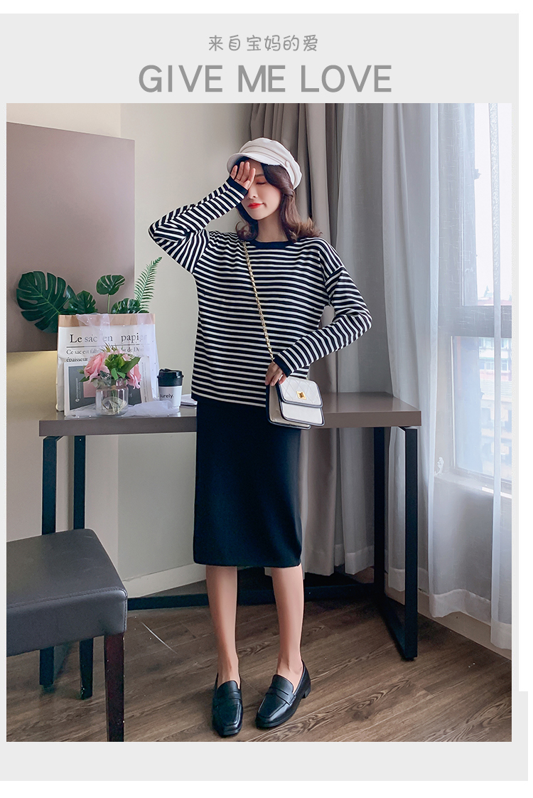 实拍哺乳毛衣套装时尚条纹喂奶针织衫高腰半身裙显瘦两件套