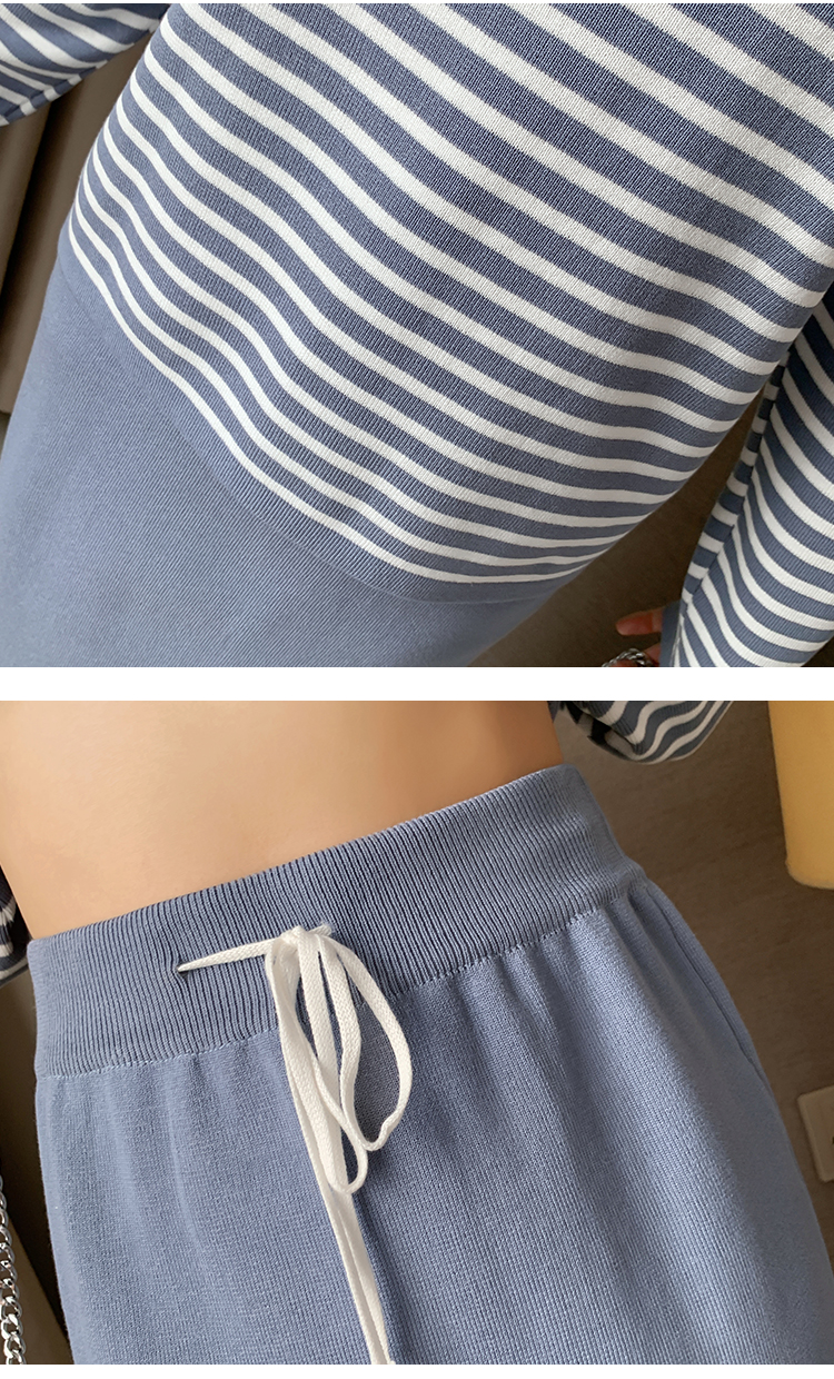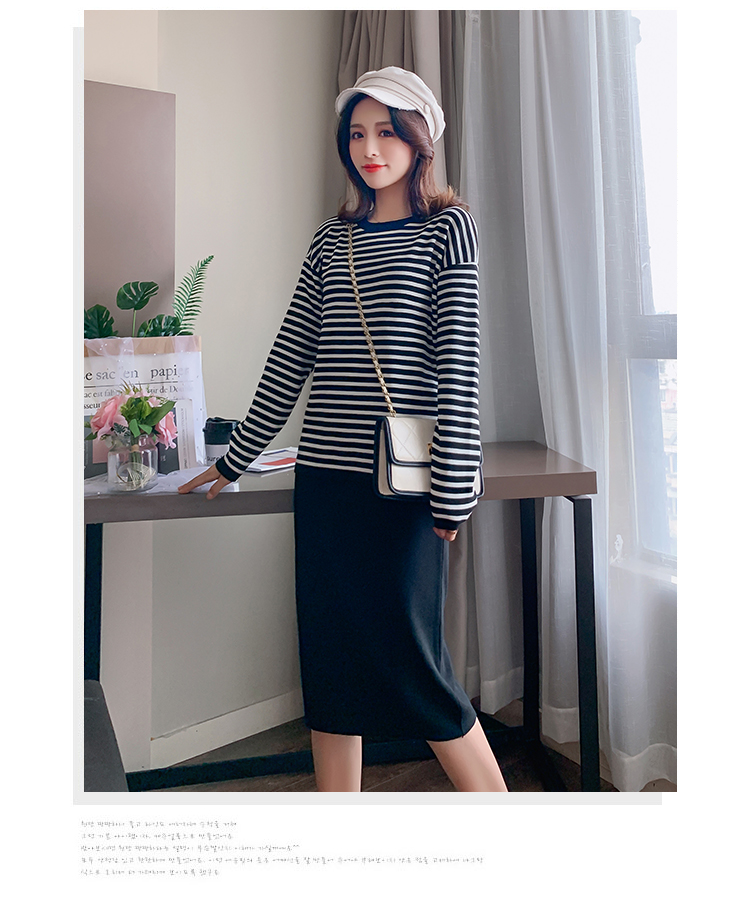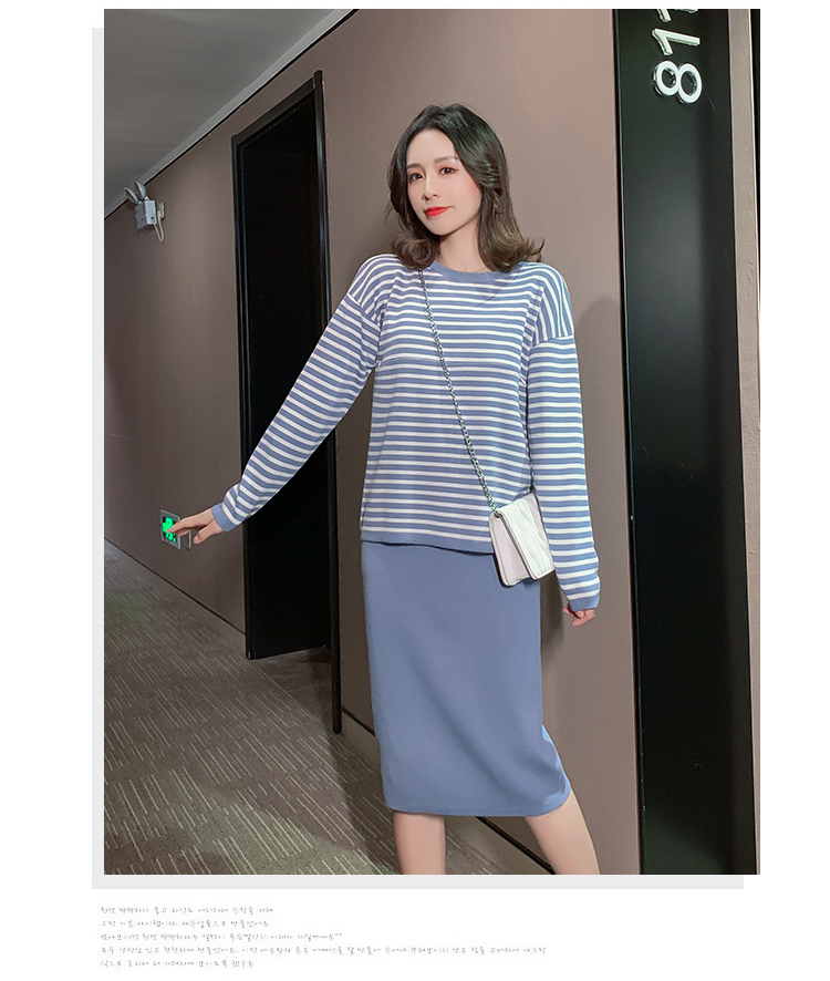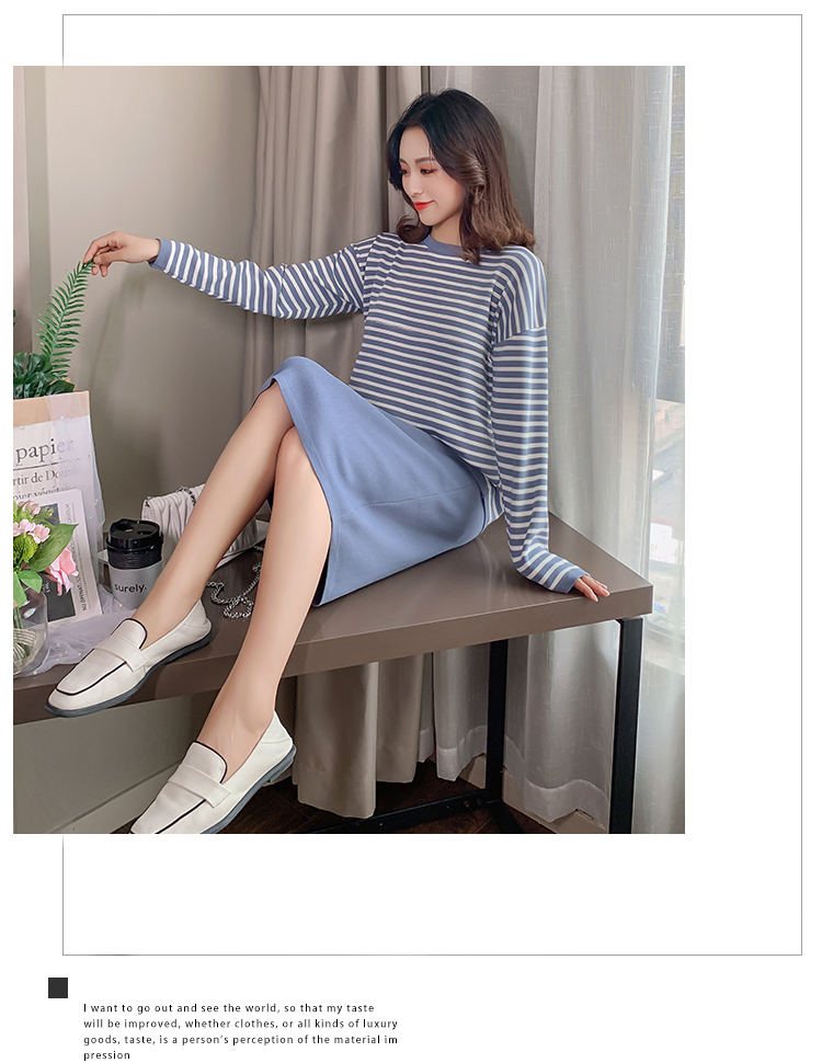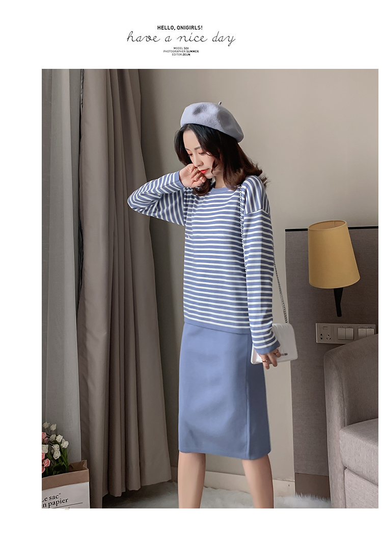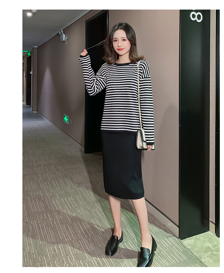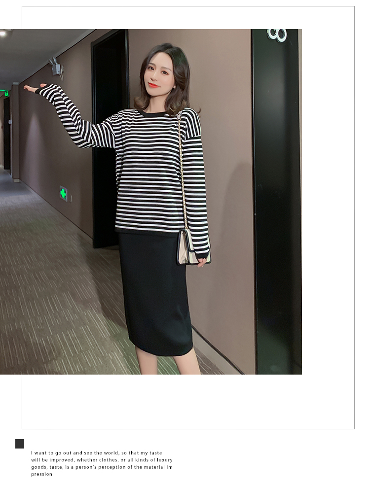 实拍哺乳毛衣套装时尚条纹喂奶针织衫高腰半身裙显瘦两件套