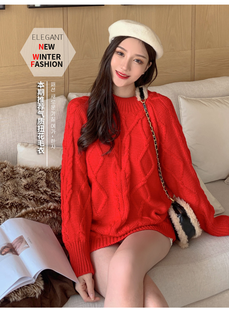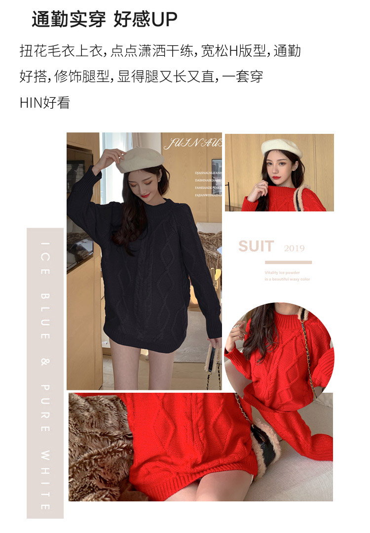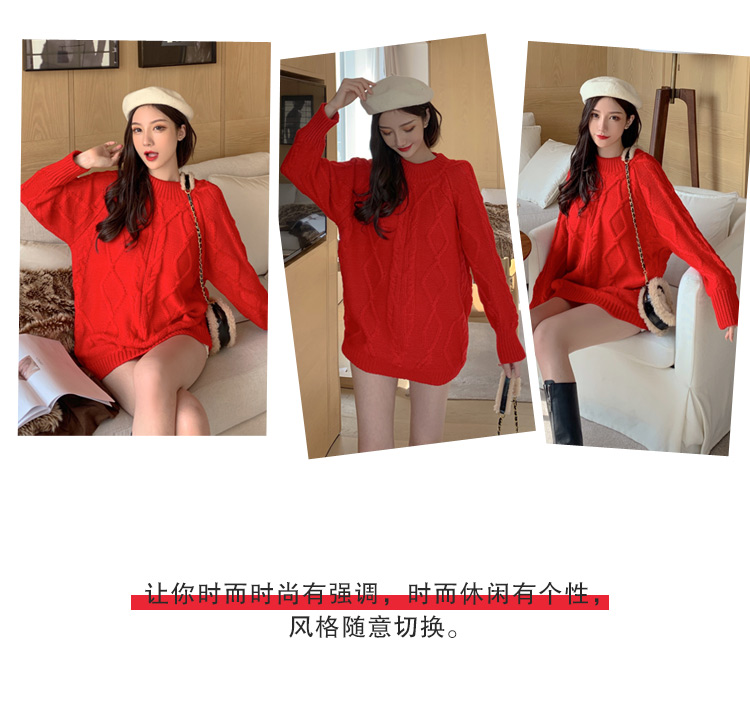 实拍现货2019秋冬潮妈韩版宽松厚中长毛衣打底裤孕妇装二件套加厚
