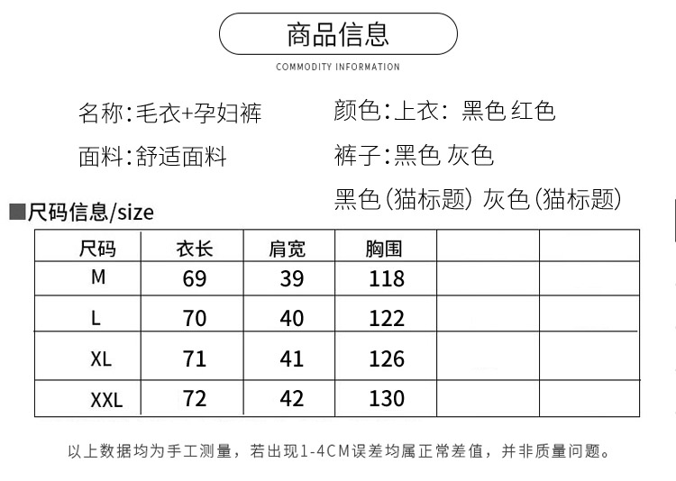 颜色:黑色上衣 红色上衣 灰色托腹裤 黑色托腹裤 灰色猫贴托腹裤 黑色猫贴托腹裤