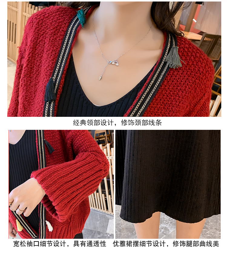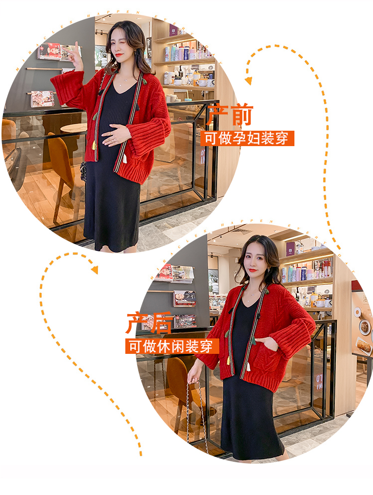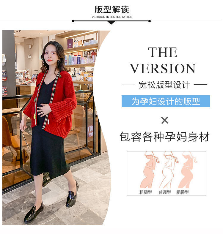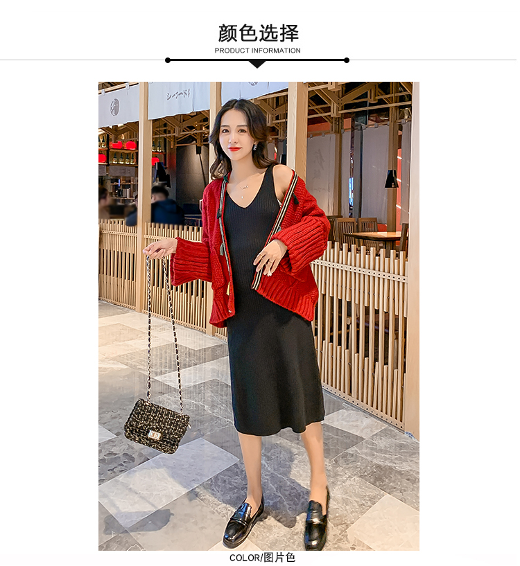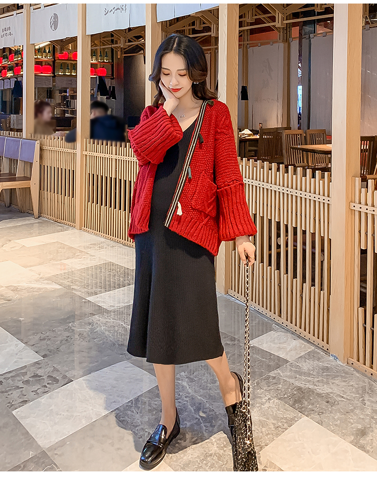 实拍1938#孕妇装秋冬套装复古毛衣开衫外套潮妈针织连衣裙两件套