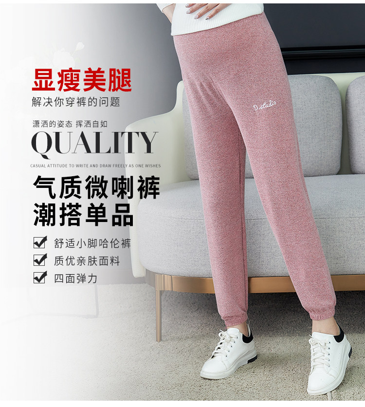 现货实拍2021春夏仙女宅宅裤孕妇薄款睡裤百搭针织托腹束脚长裤
