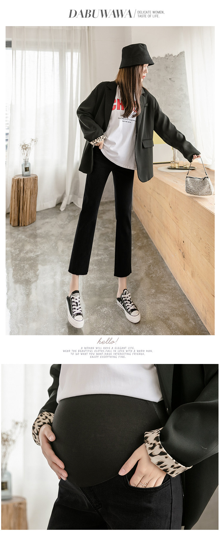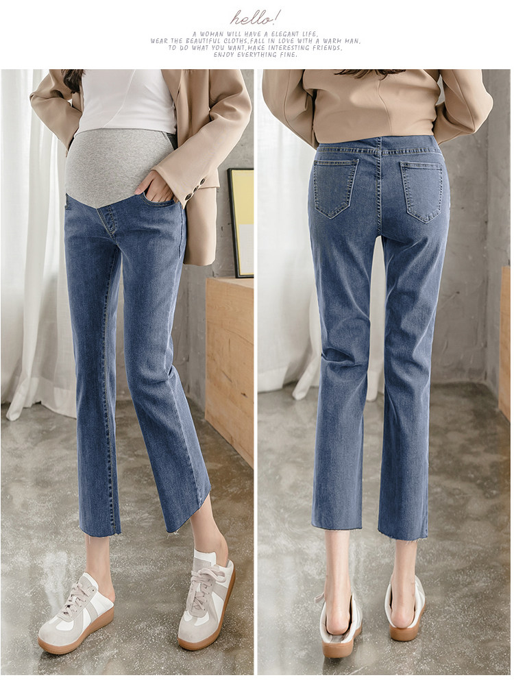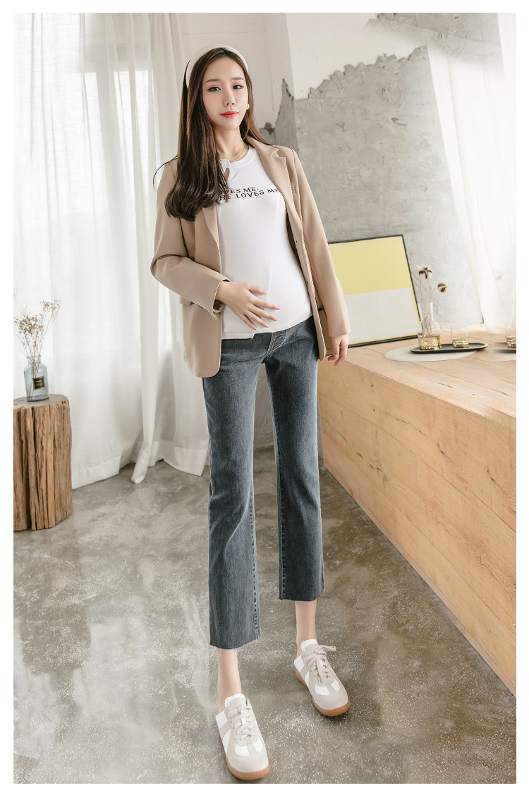 实拍春秋孕妇牛仔裤打底裤孕高腰纯棉托腹直筒裤孕妇装