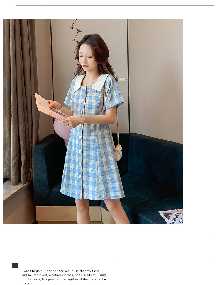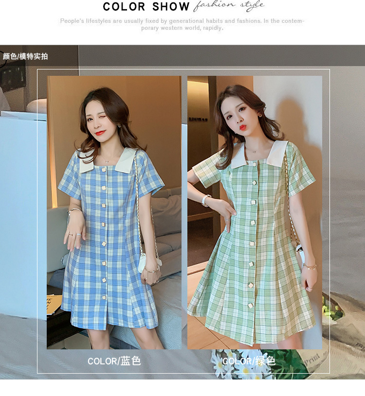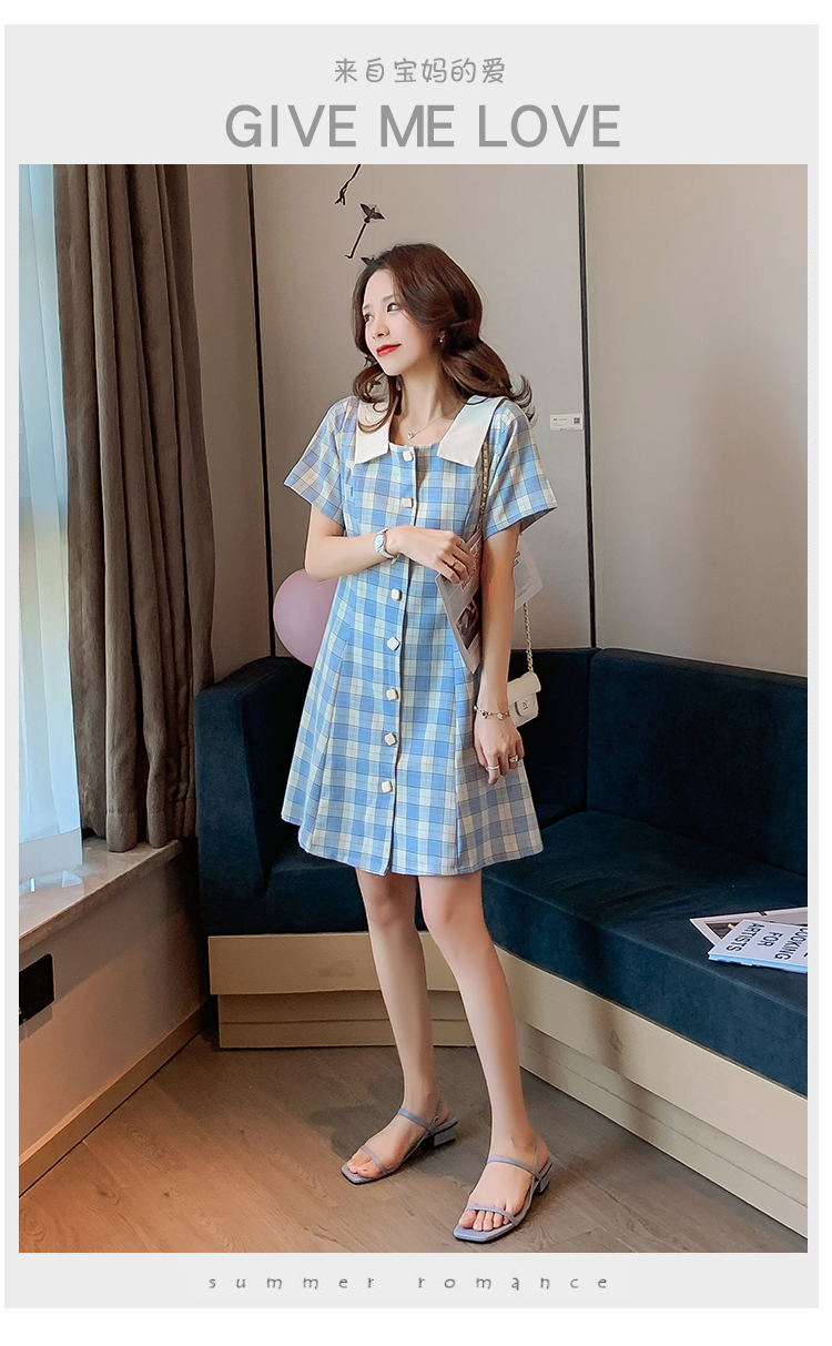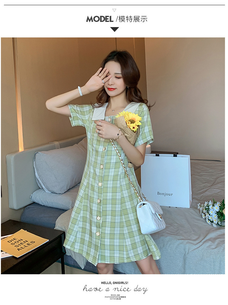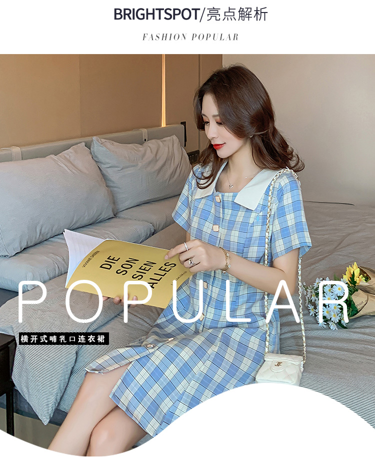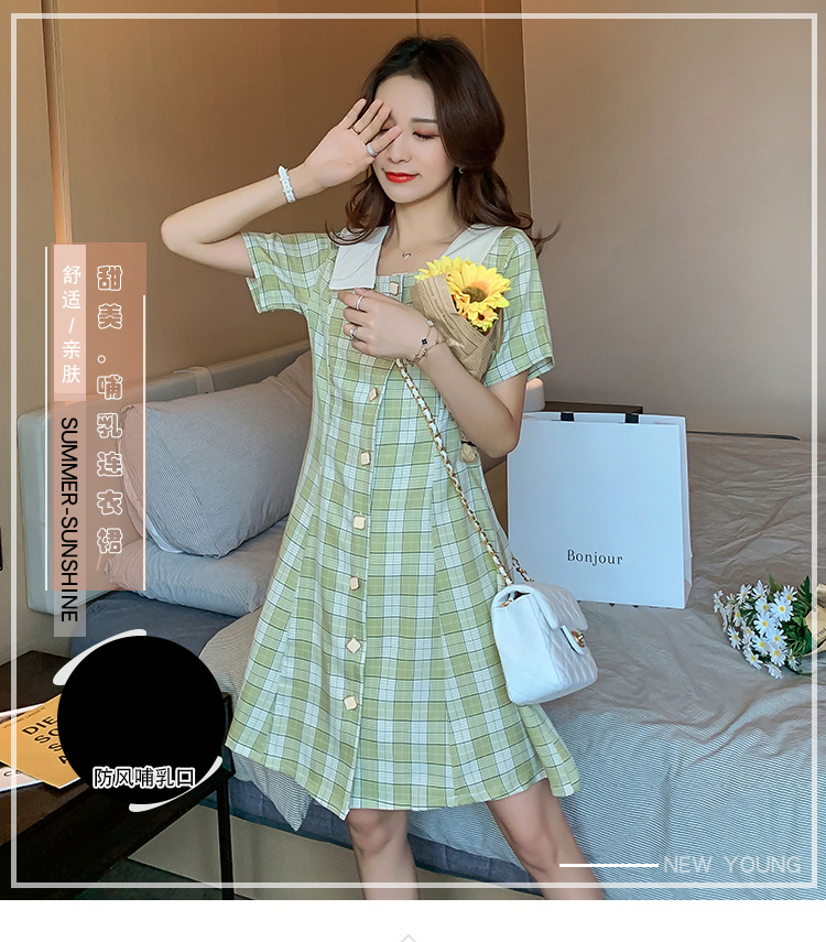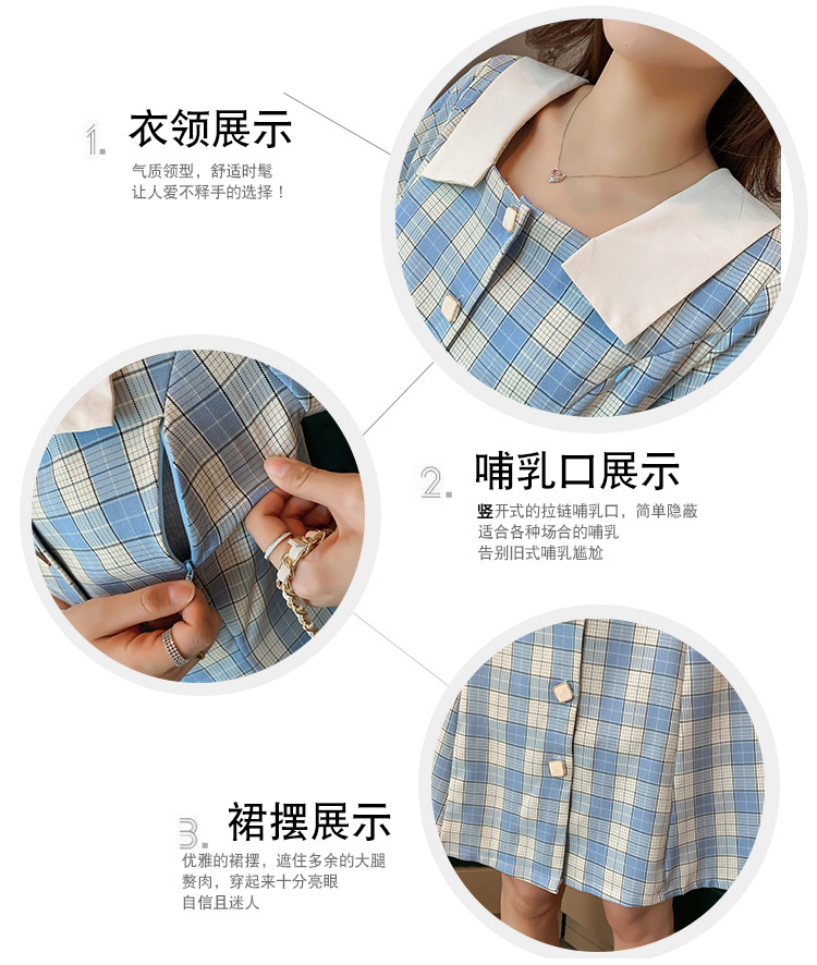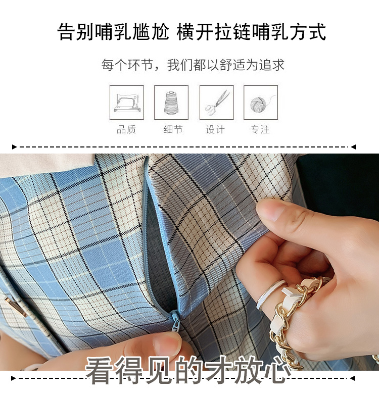 实拍9928#哺乳衣外出复古格子修身显瘦连衣裙产后哺乳期喂奶衣服